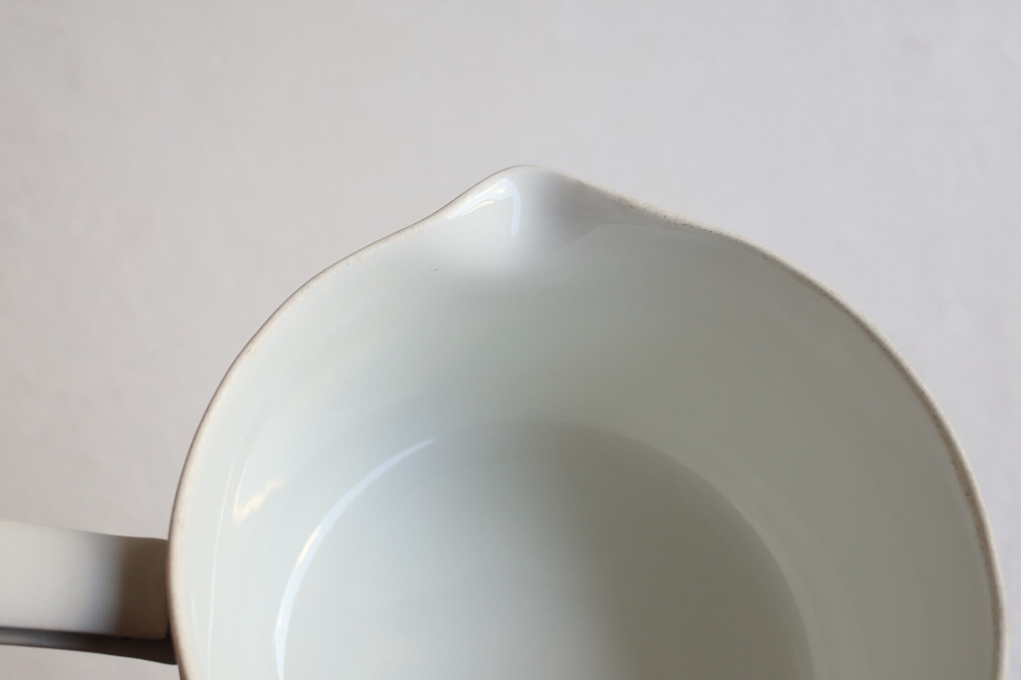 直火にかけられる磁器として1900年前半の開発されましたが、シンプルなデザインと白磁がとても美しい鍋です。