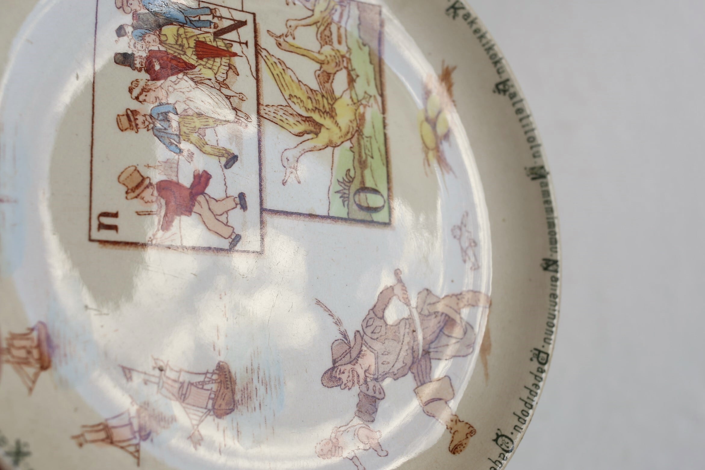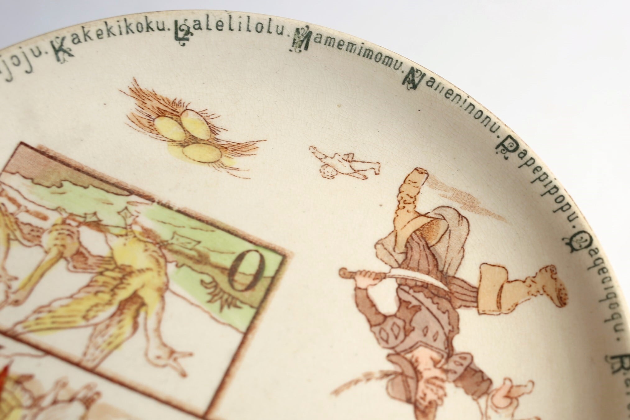 『A.E.I.O.U.』で並ぶローマ字で 縁取られたリムや寓話の挿絵のような絵柄が素敵な一枚です。