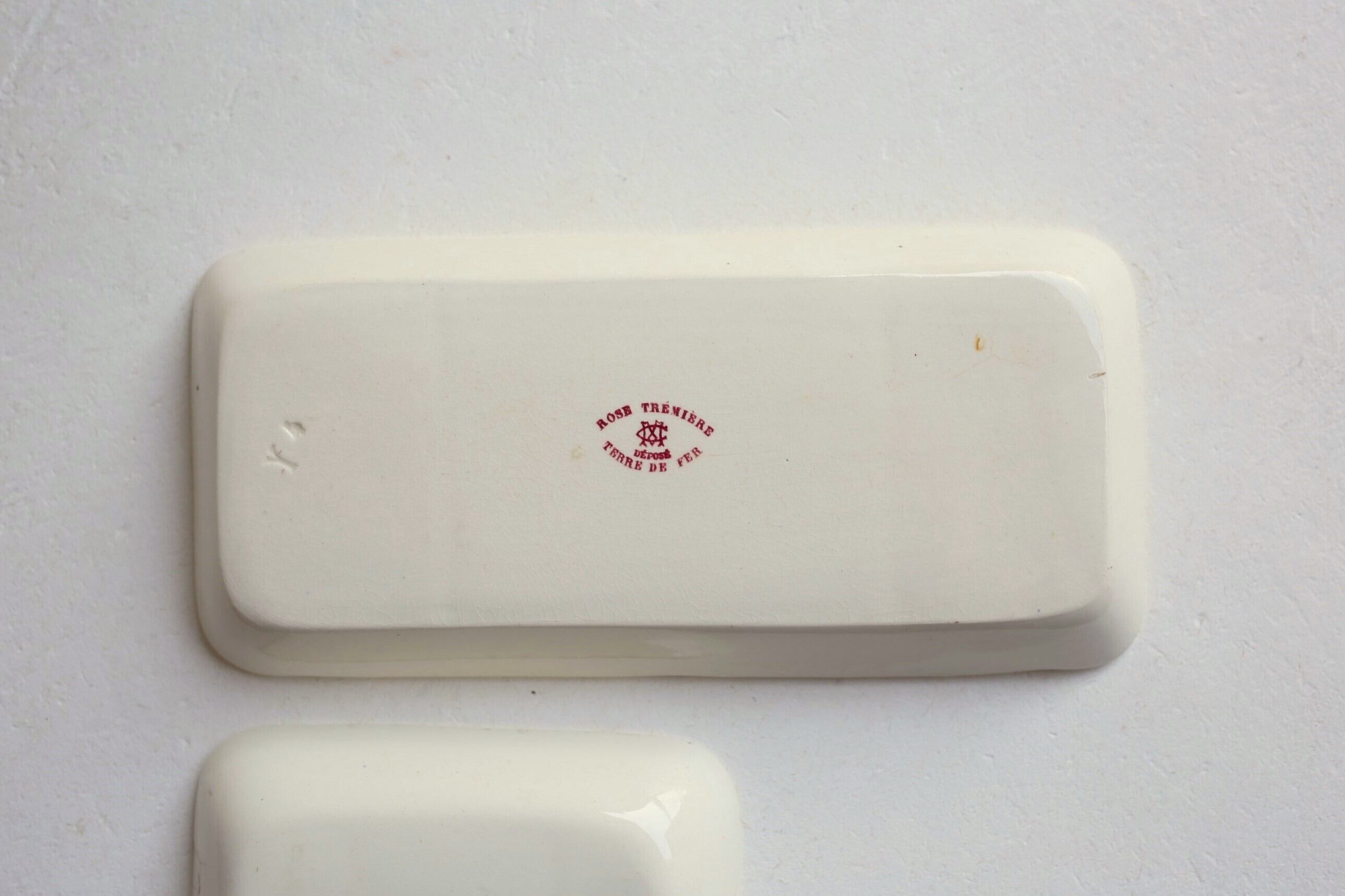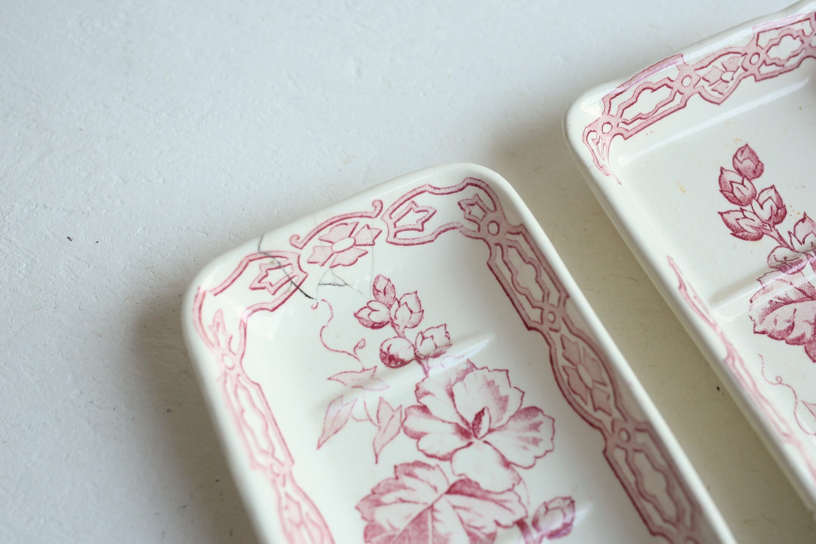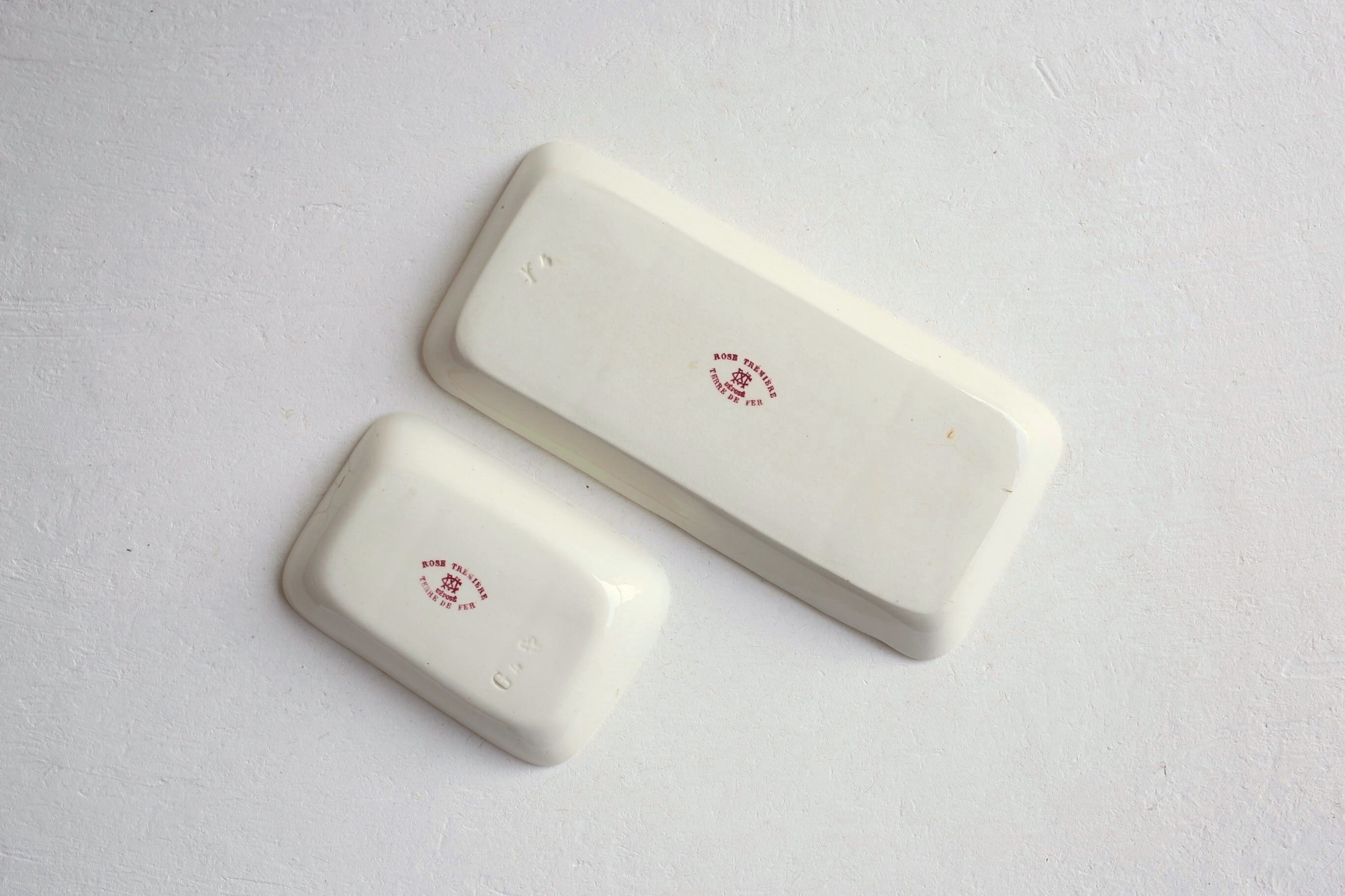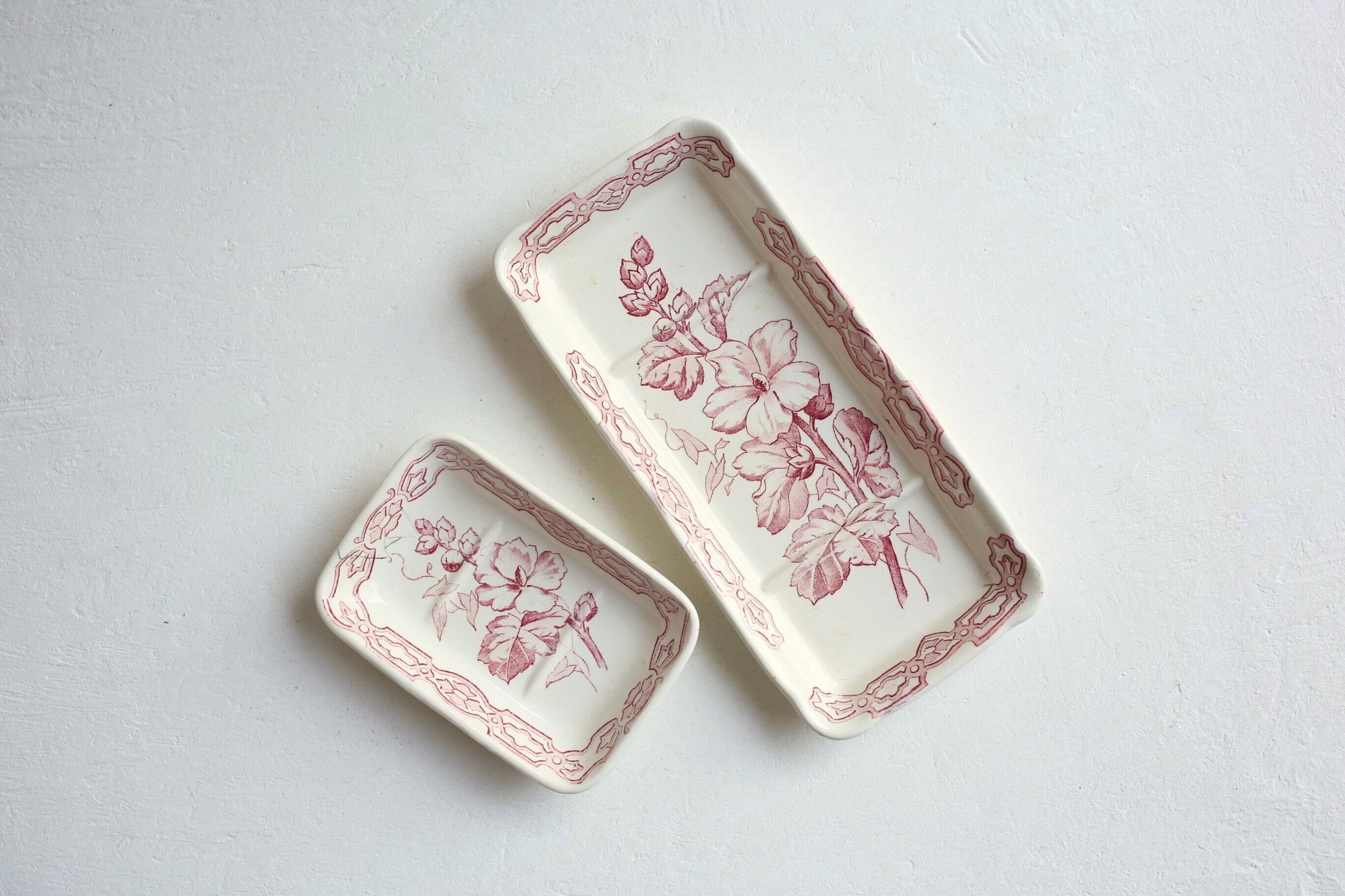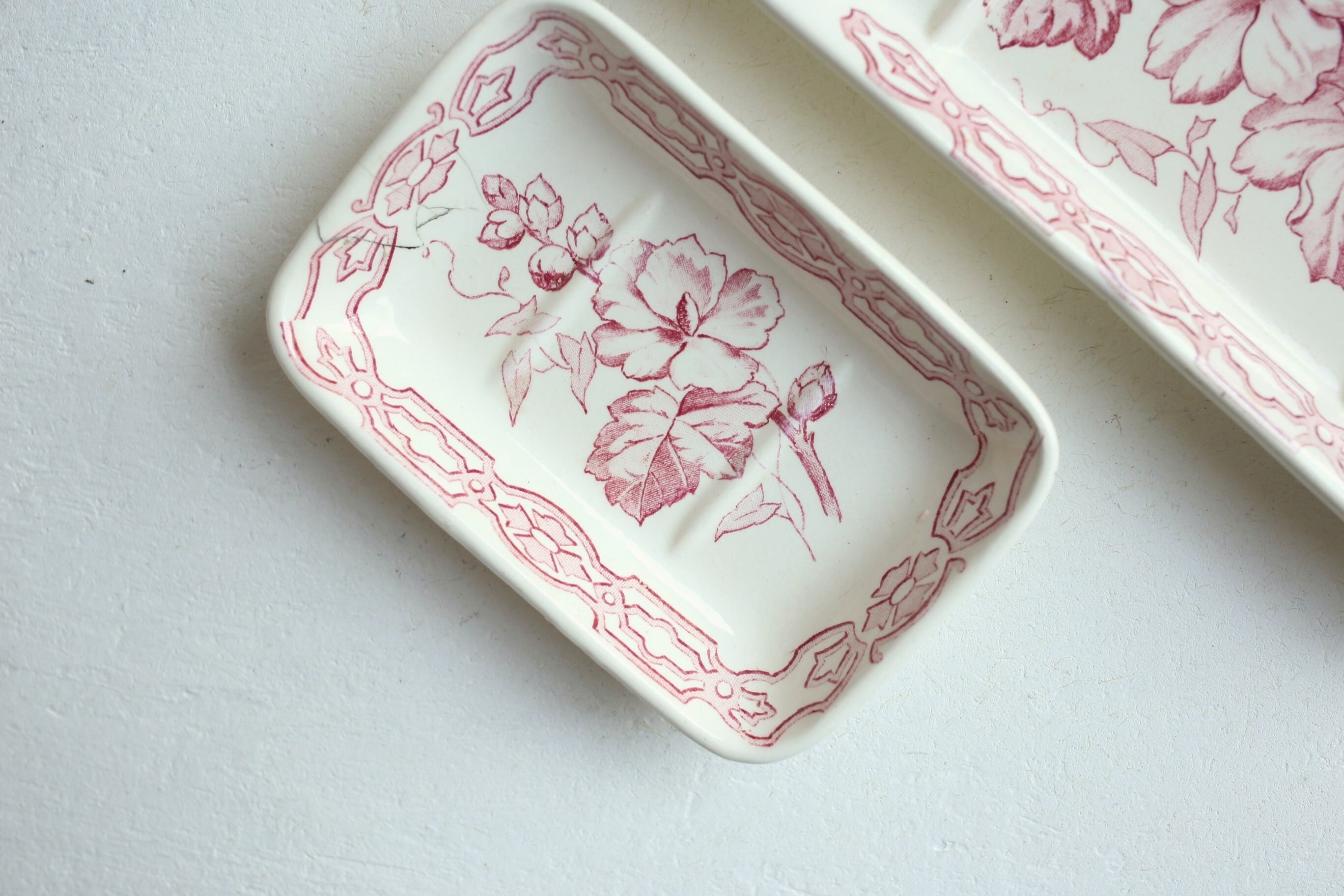フランス アンティーク クレイユモントロー 『ROSE TRÉMIÉRE』 トレイ2点セット(ブラシ置き&石鹸置き) N-04981