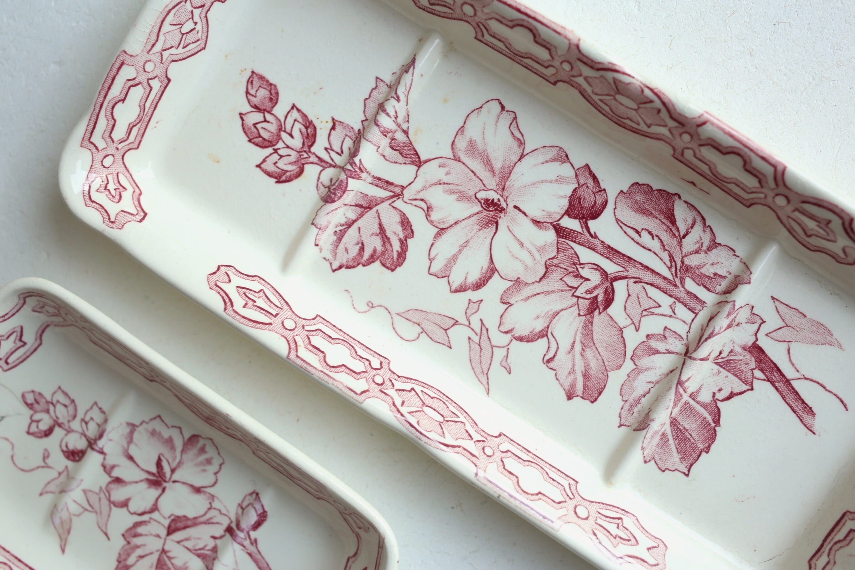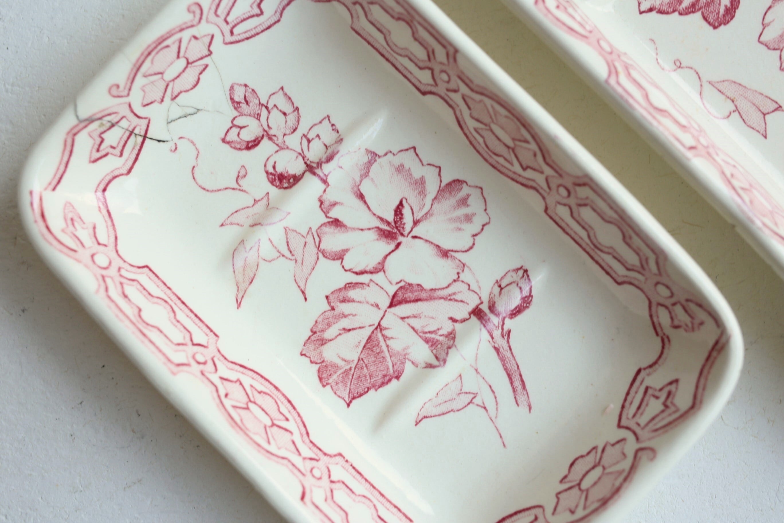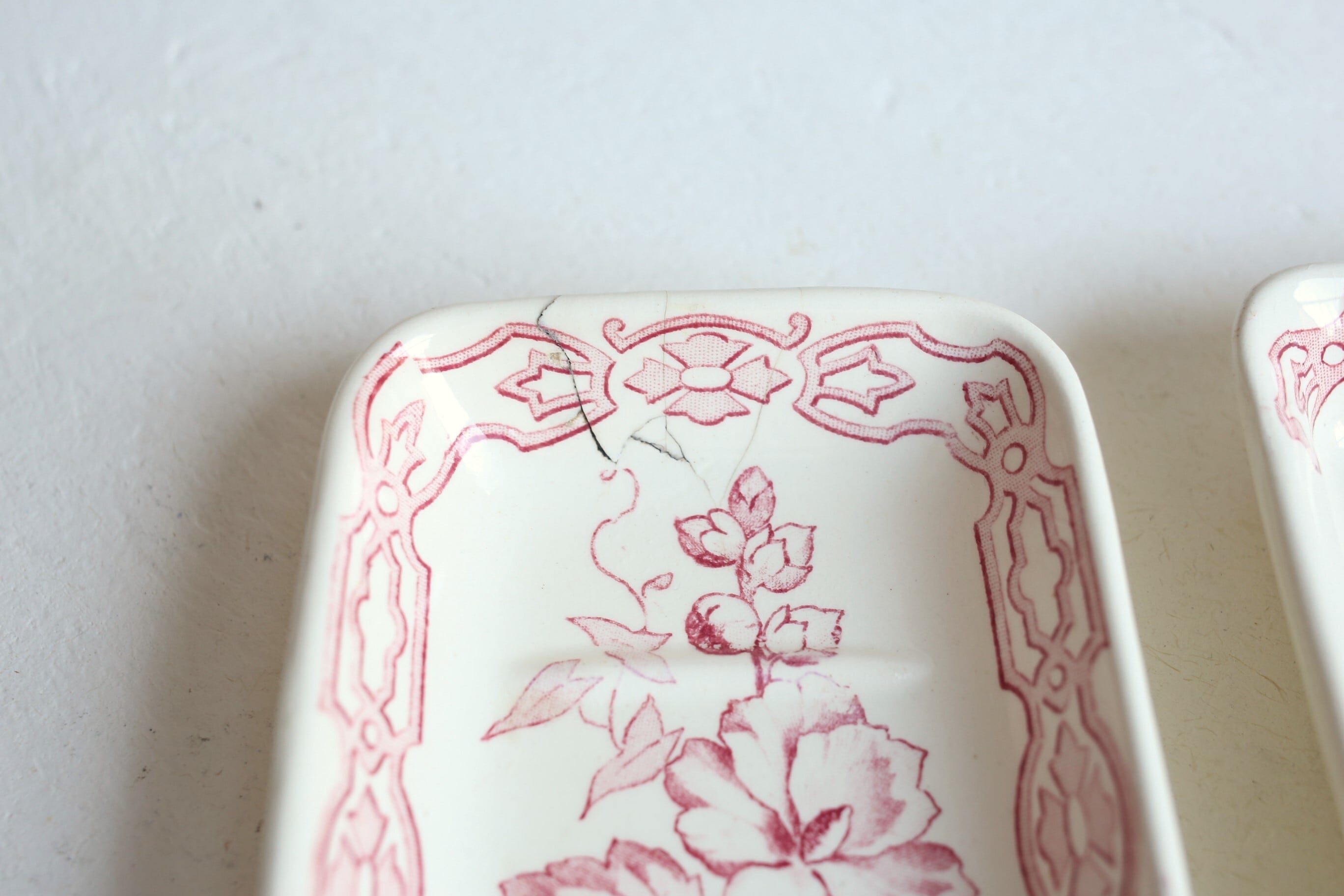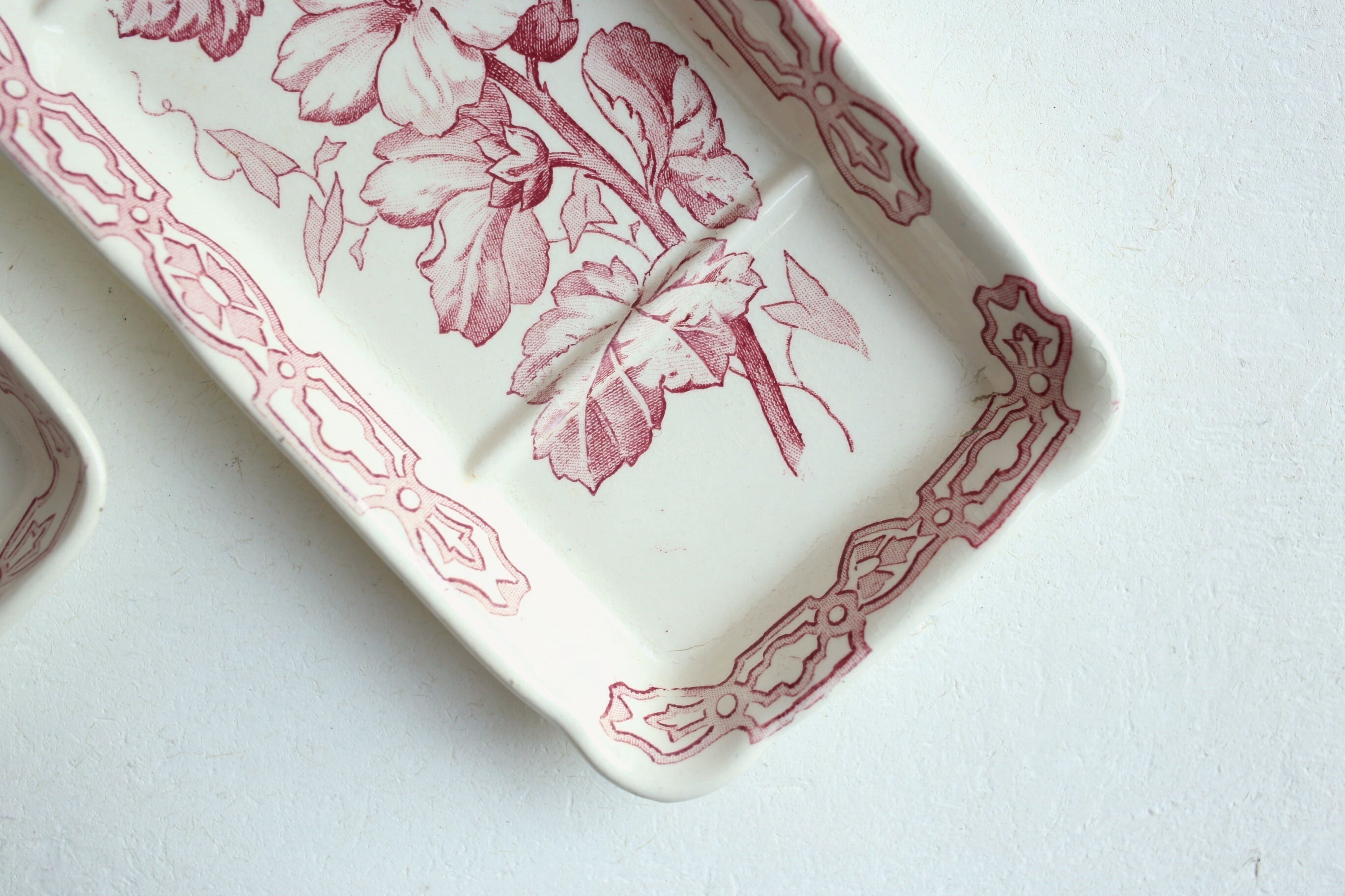 フランス アンティーク クレイユモントロー 『ROSE TRÉMIÉRE』 トレイ2点セット(ブラシ置き&石鹸置き) N-04981