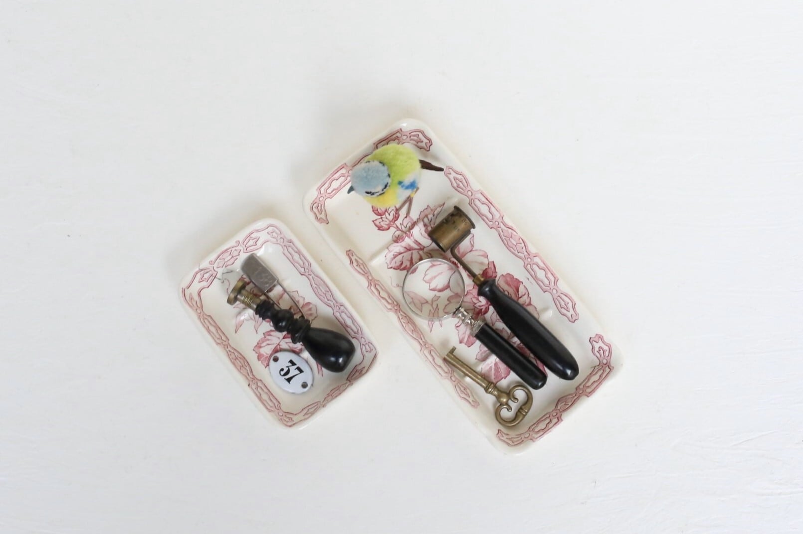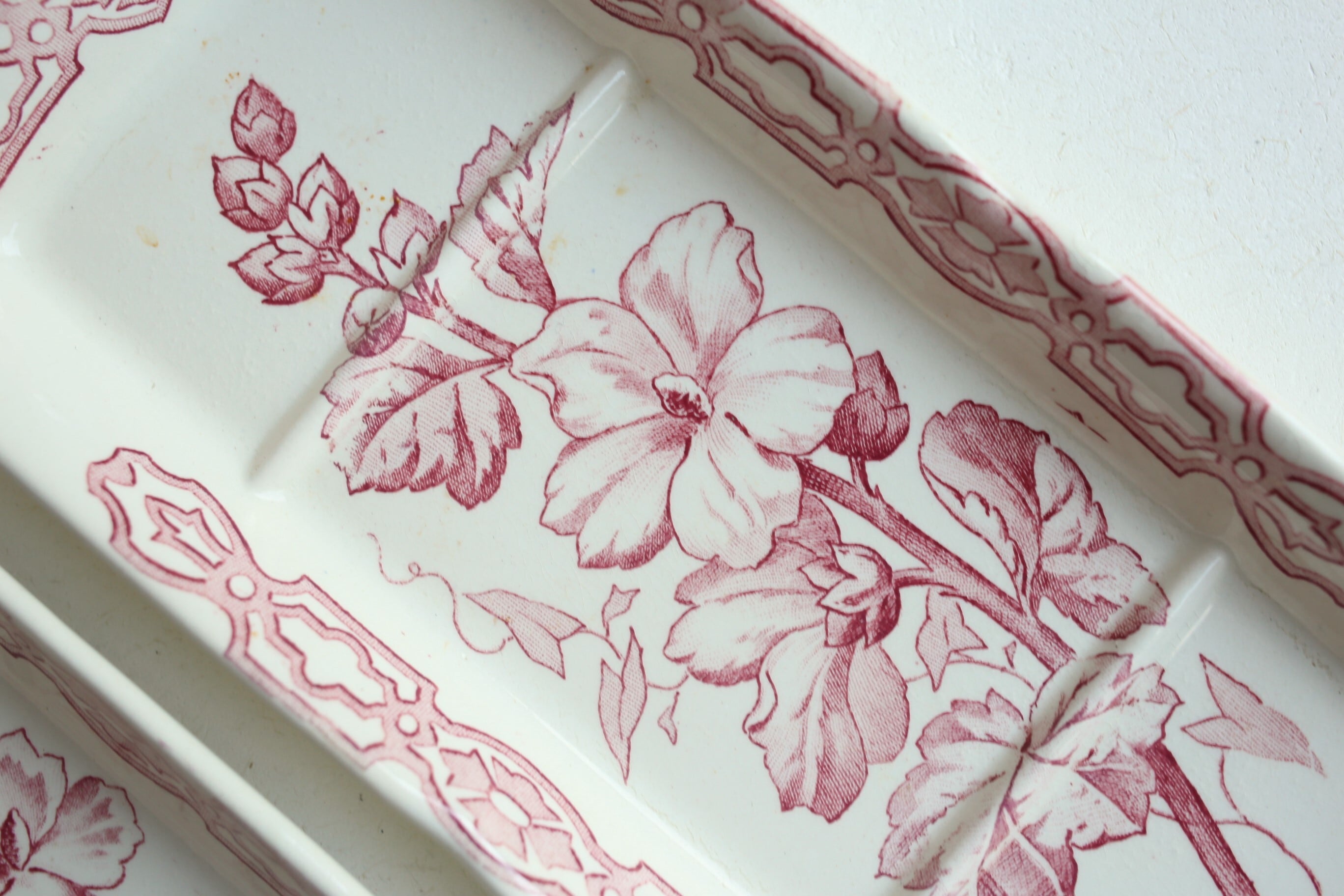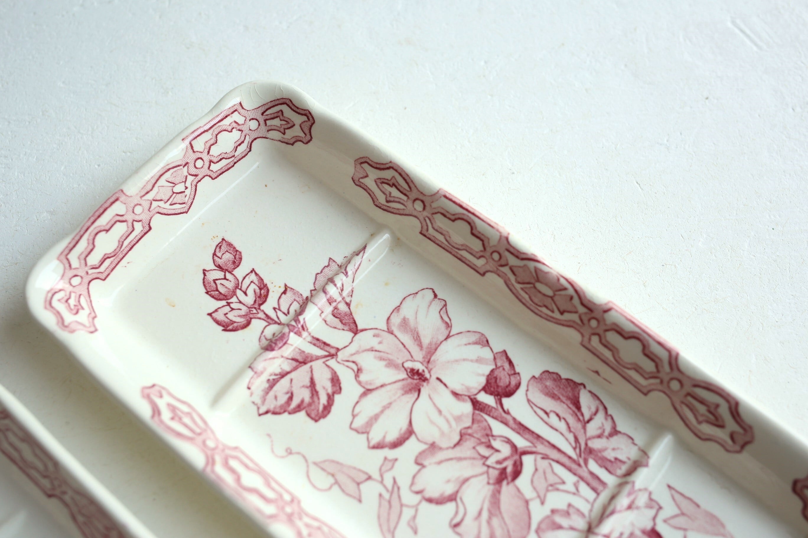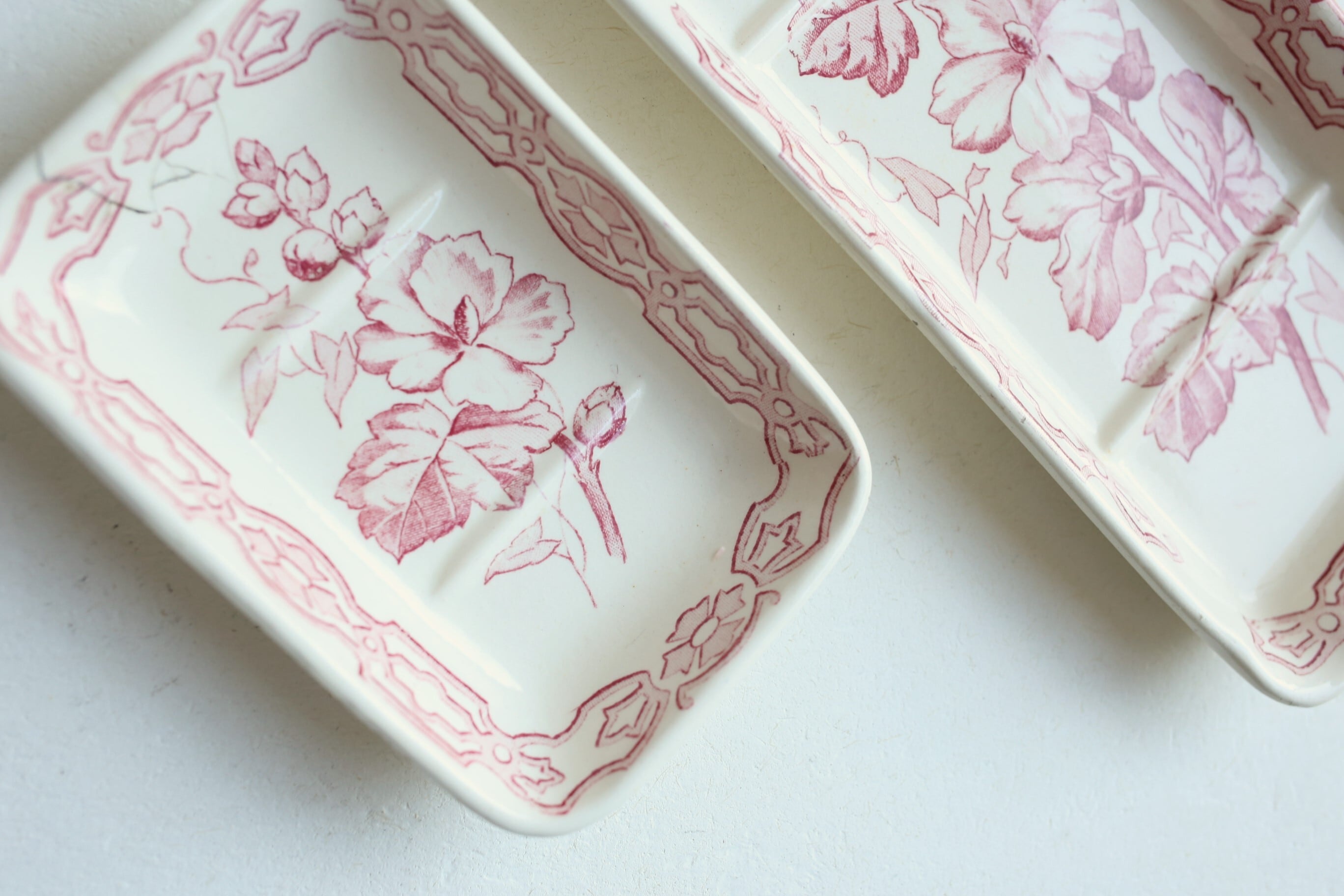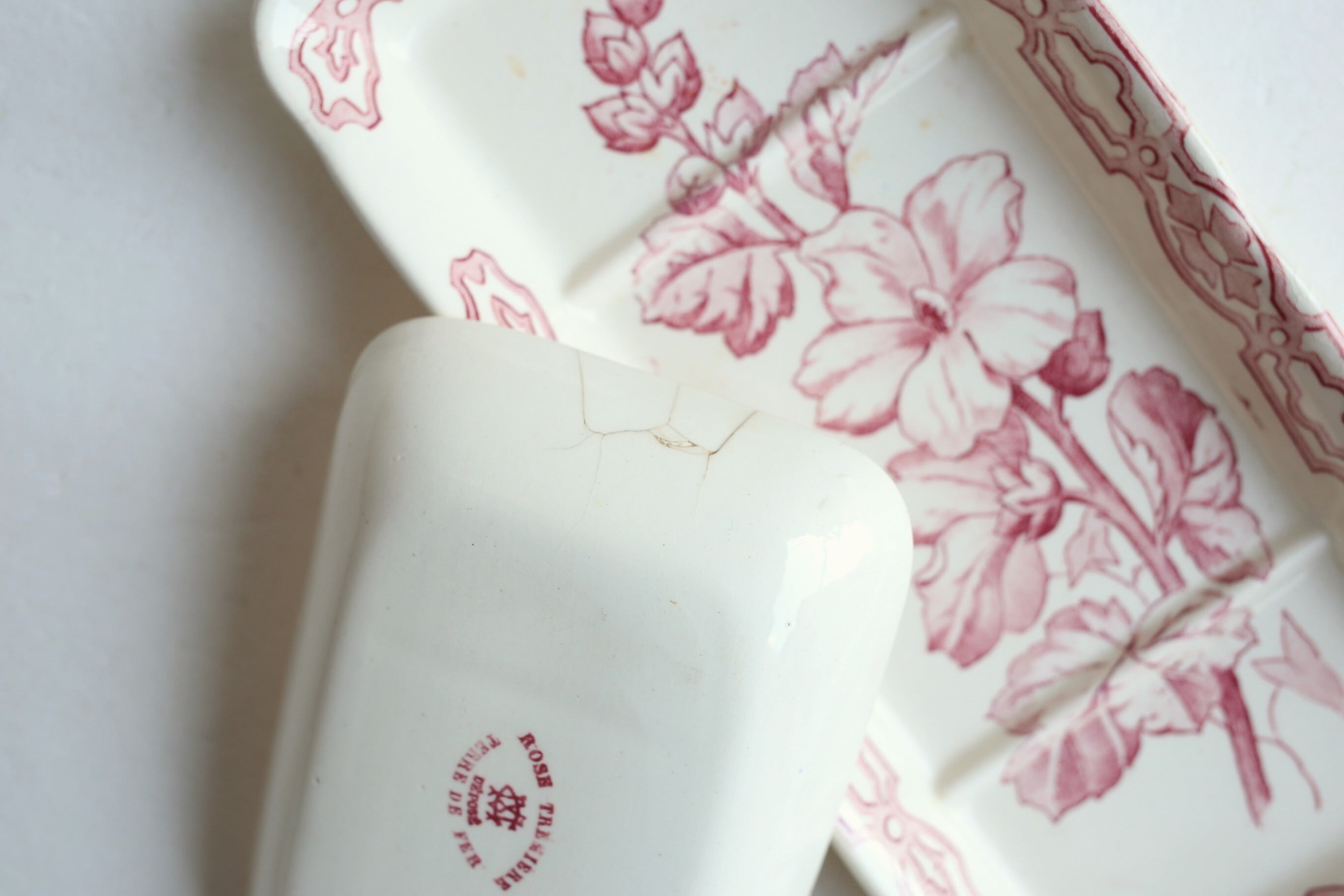 フランス アンティーク クレイユモントロー 『ROSE TRÉMIÉRE』 トレイ2点セット(ブラシ置き&石鹸置き) N-04981