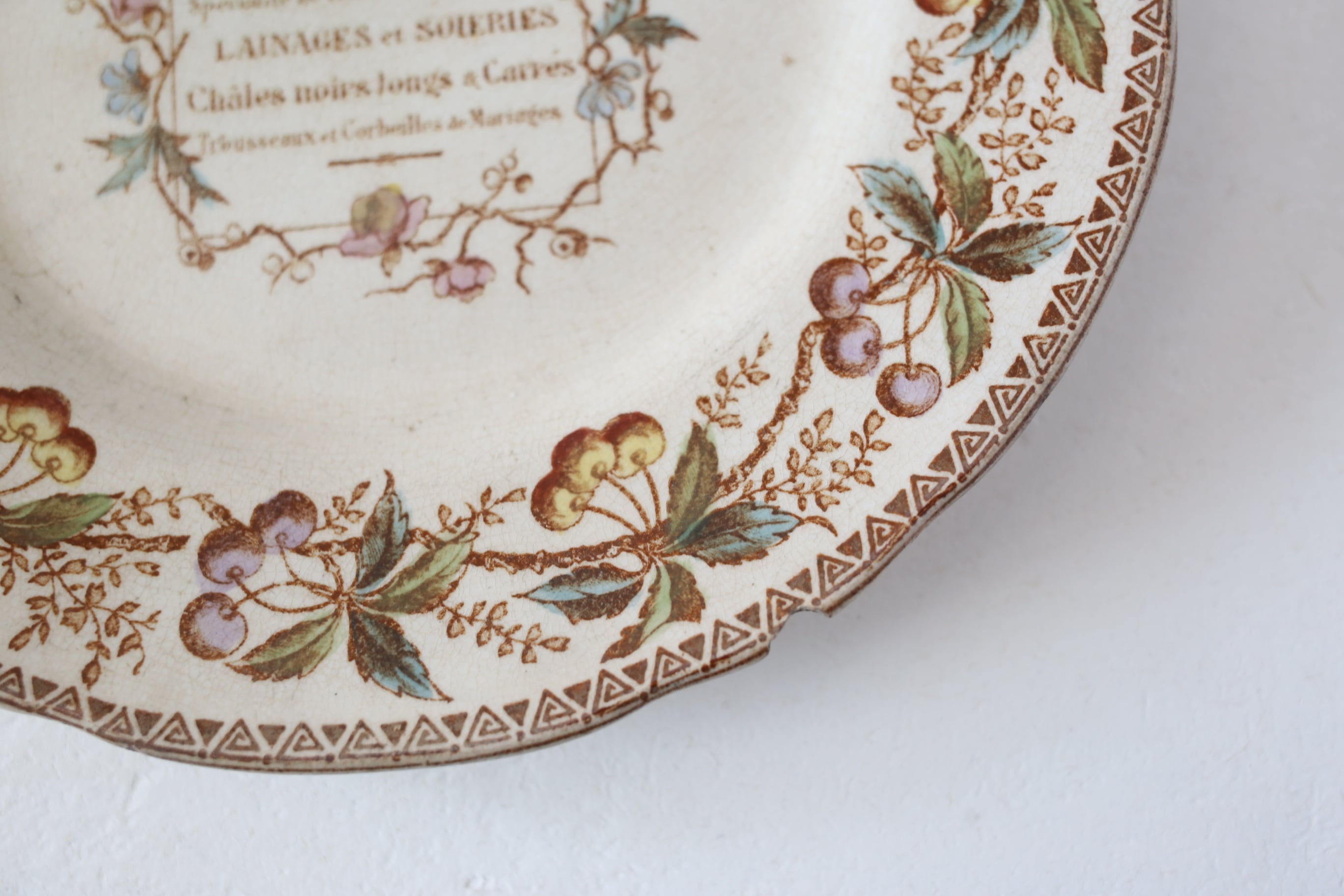 中心にお店の紹介が書かれ、その周りを花やフルーツのガーランドやツバメが美しく取り囲む素敵なプレートです。