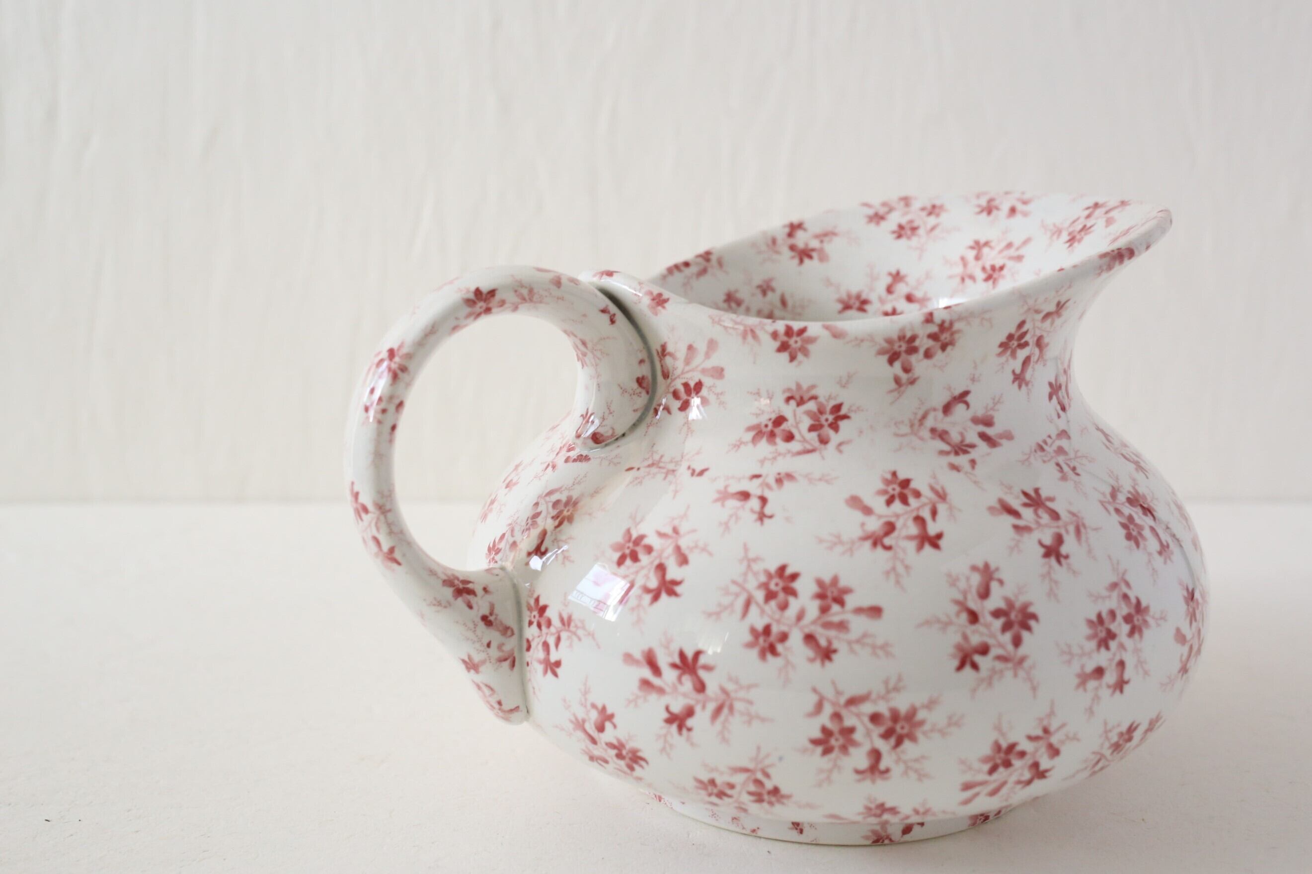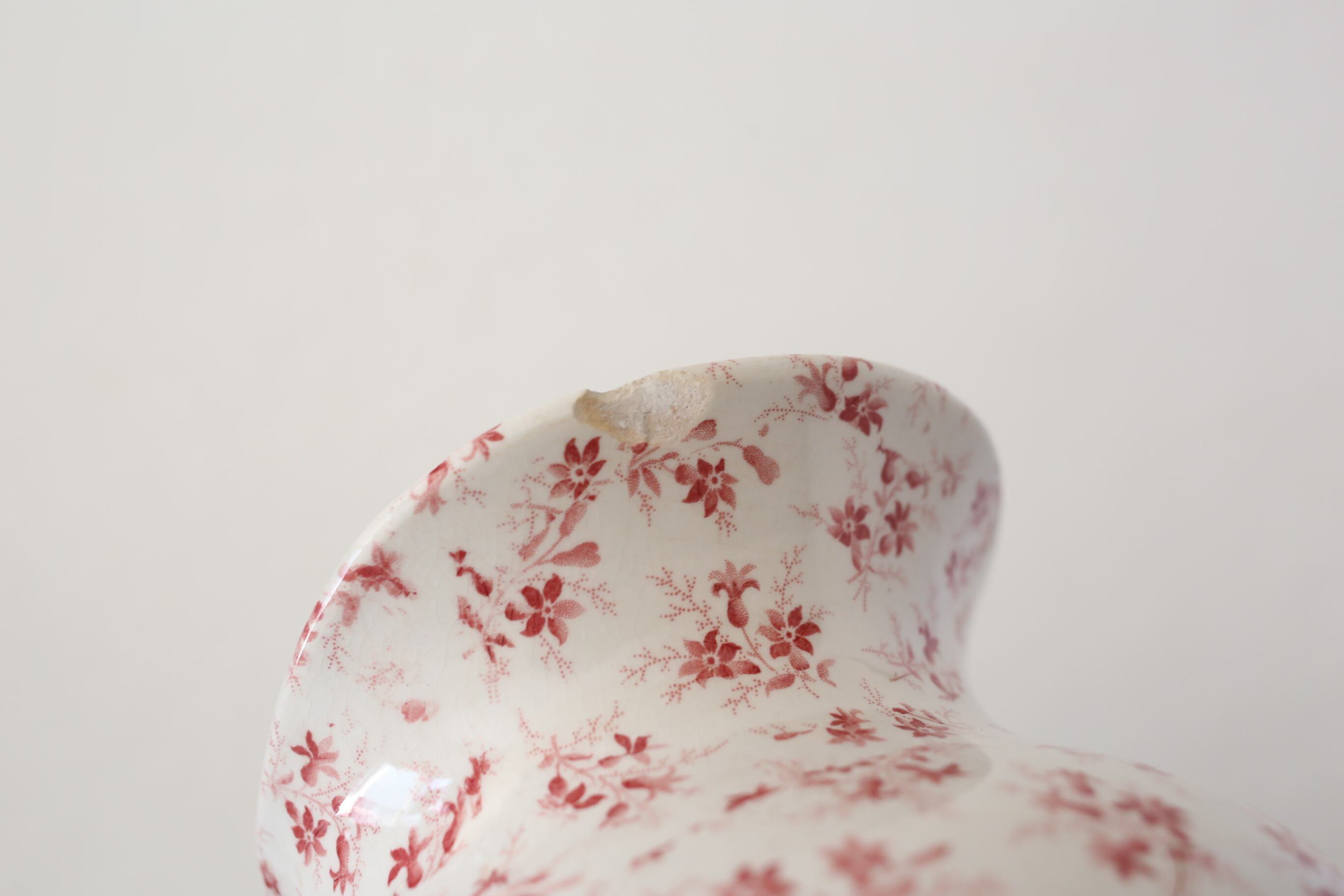 滑らかな曲線のフォルムにローズ系の濃淡の小花が全面に描かれた美しいピシェです。
