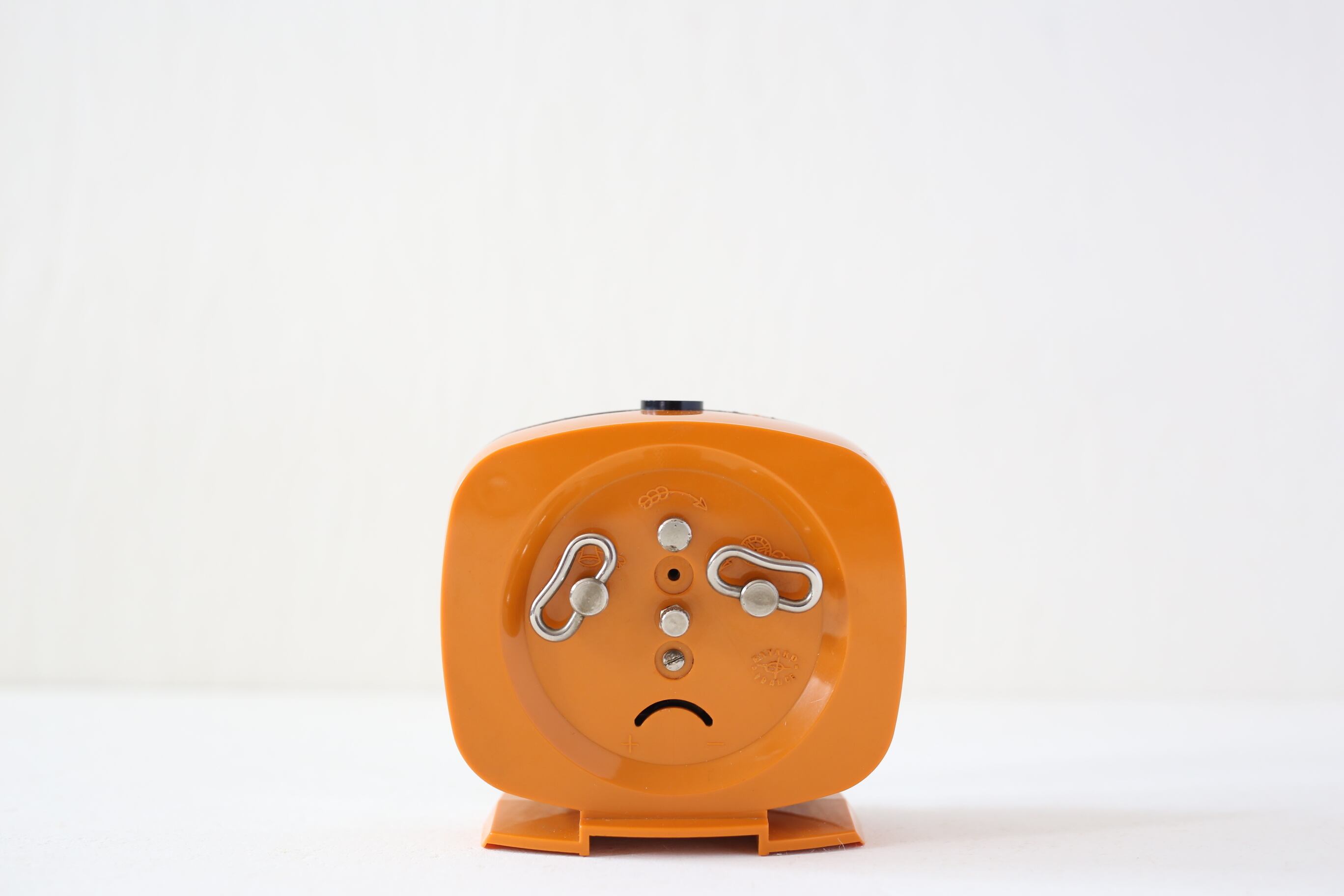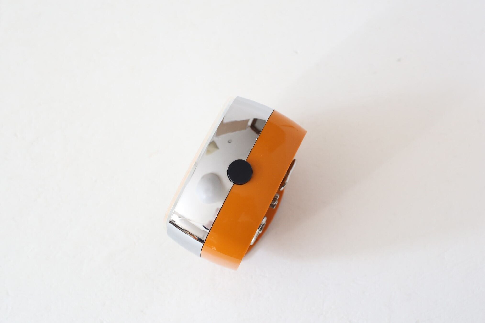 クローム×オレンジのプラスチックのケースがスペースエイジのレトロな雰囲気を醸し出し、白抜きの数字のデザインが素敵な文字盤が目を引きます。
