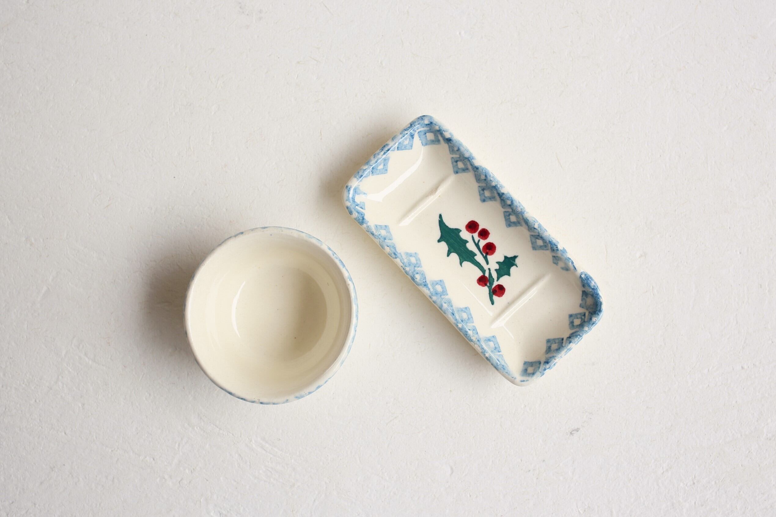 フランス アンティーク 陶器 dinette ままごと用 2点セット ヒイラギ柄 N-05002