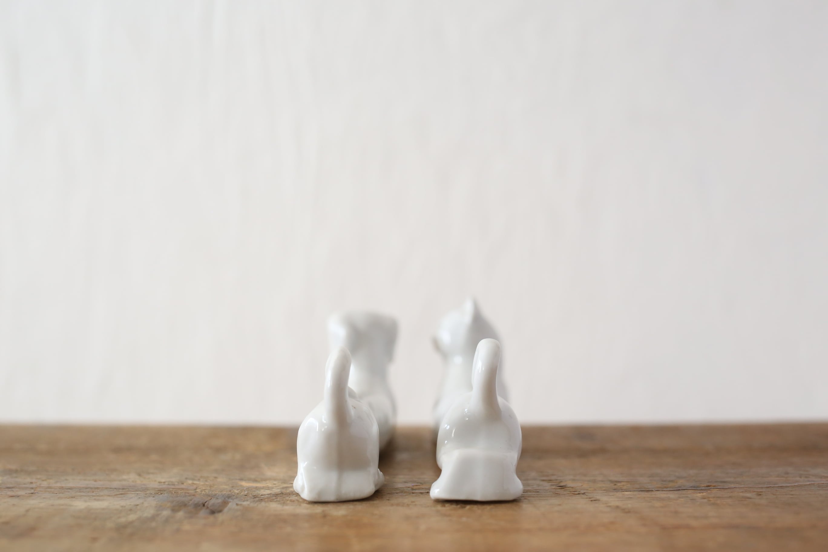 フランス アンティーク 白磁 ネコ&イヌ ナイフレスト カトラリーレスト 2個セット N-04889a