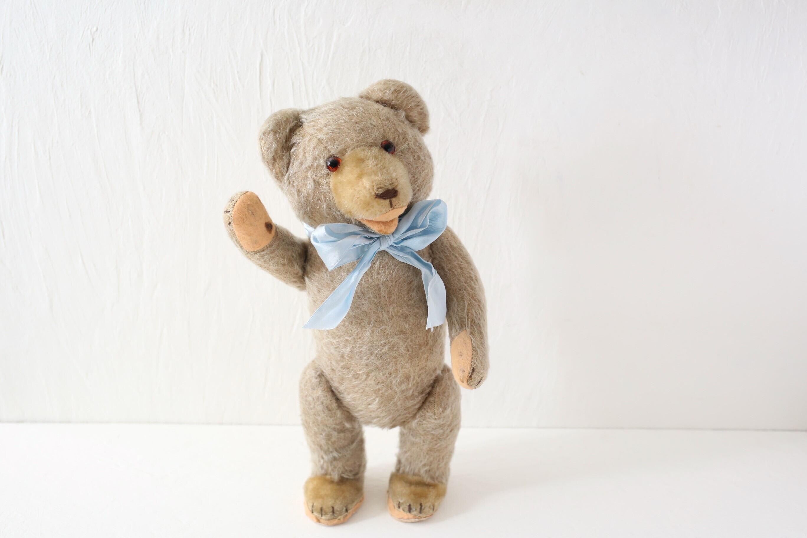 フランス アンティーク ヴィンテージ オープンマウスの自立するテディベア 約38cm N-04950