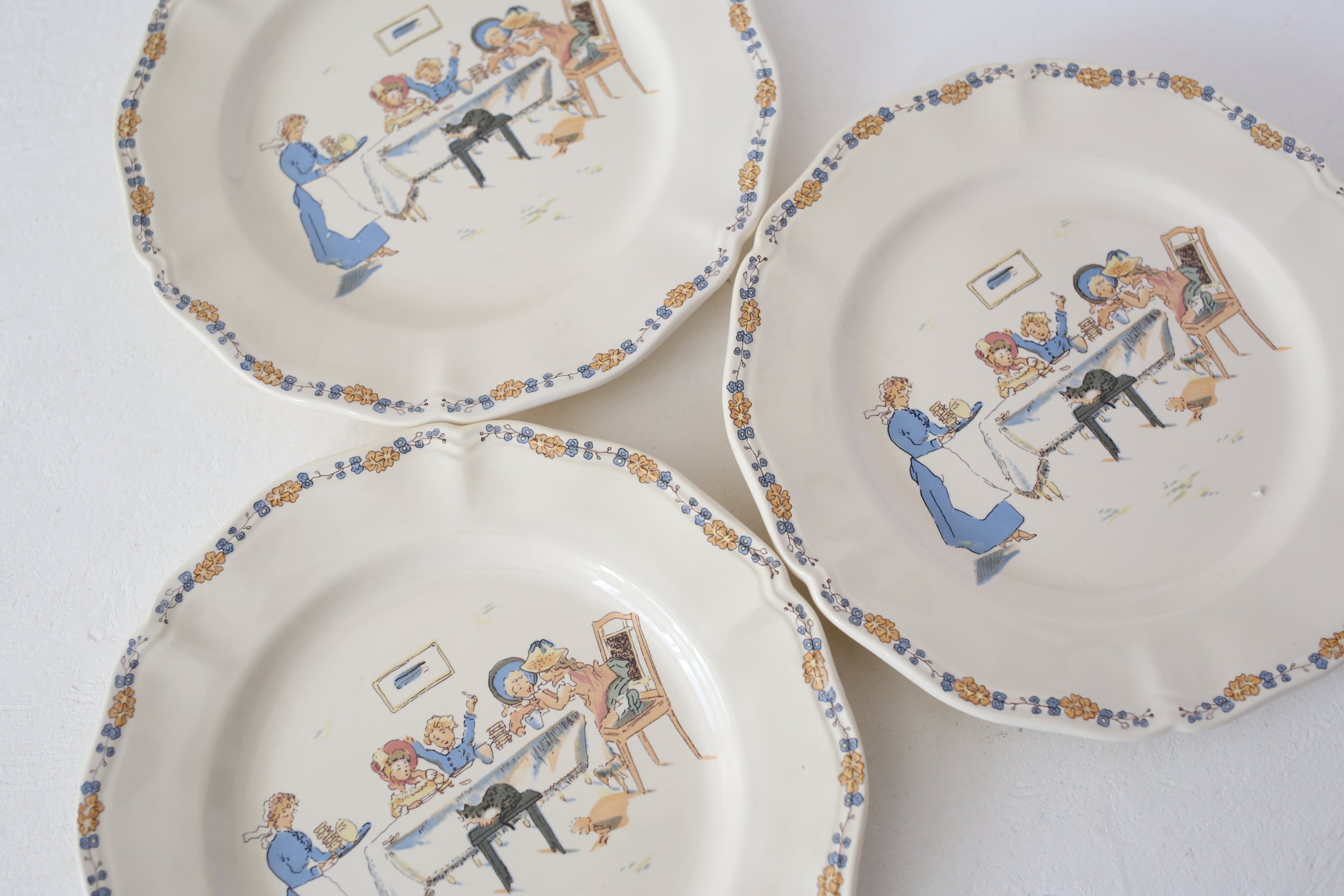 フランス アンティーク ヴィンテージ Sarreguemines サルグミンヌ 『LES ENFANTS RICHAR』 プレート21㎝ N-04869
