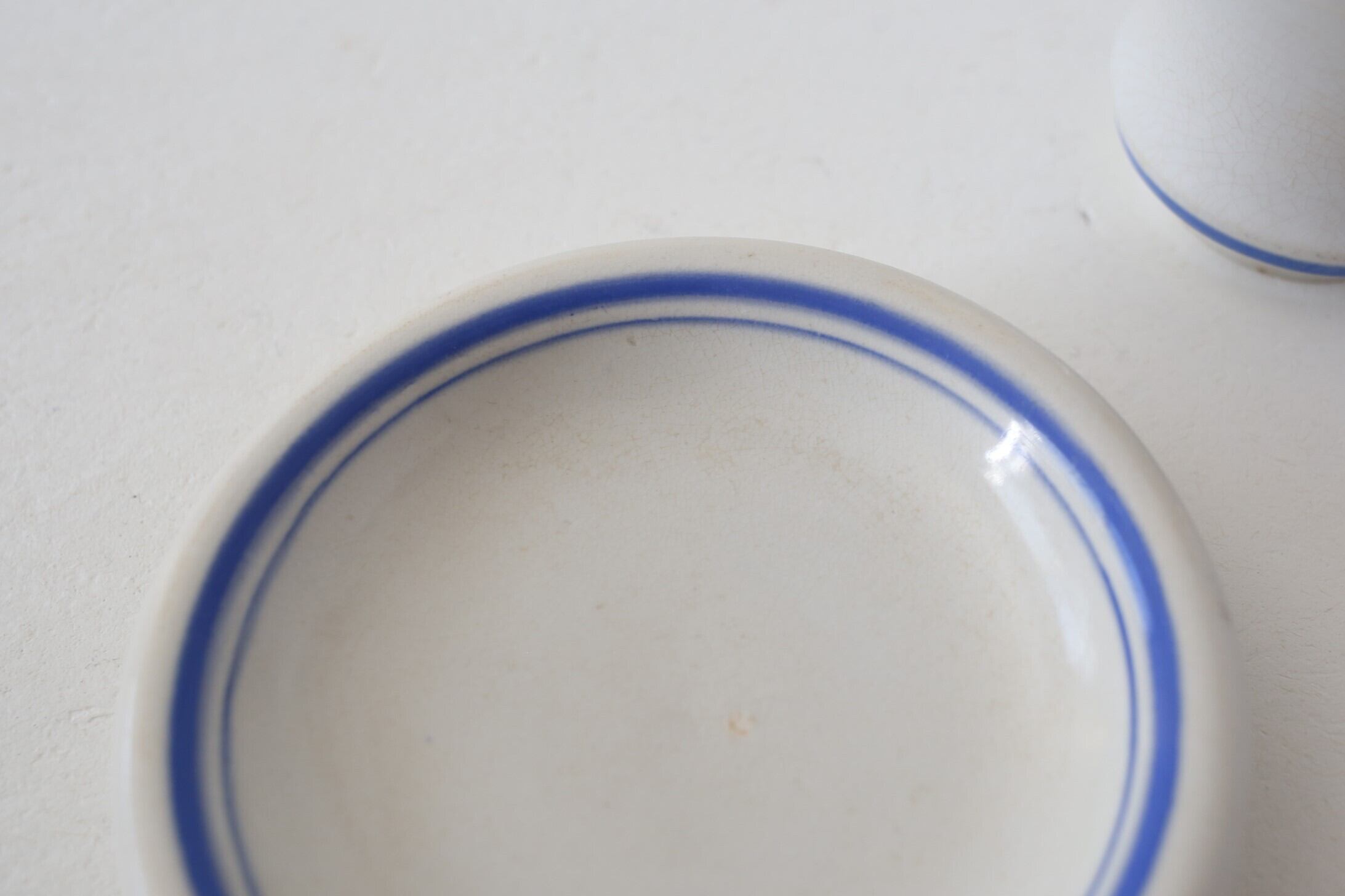 ソーサーの表面に釉薬の抜けた穴や釉薬の薄れと高台にカケがありますが、それ以外はカップの高台の微細なチップ程度で全体的には良い状態です。