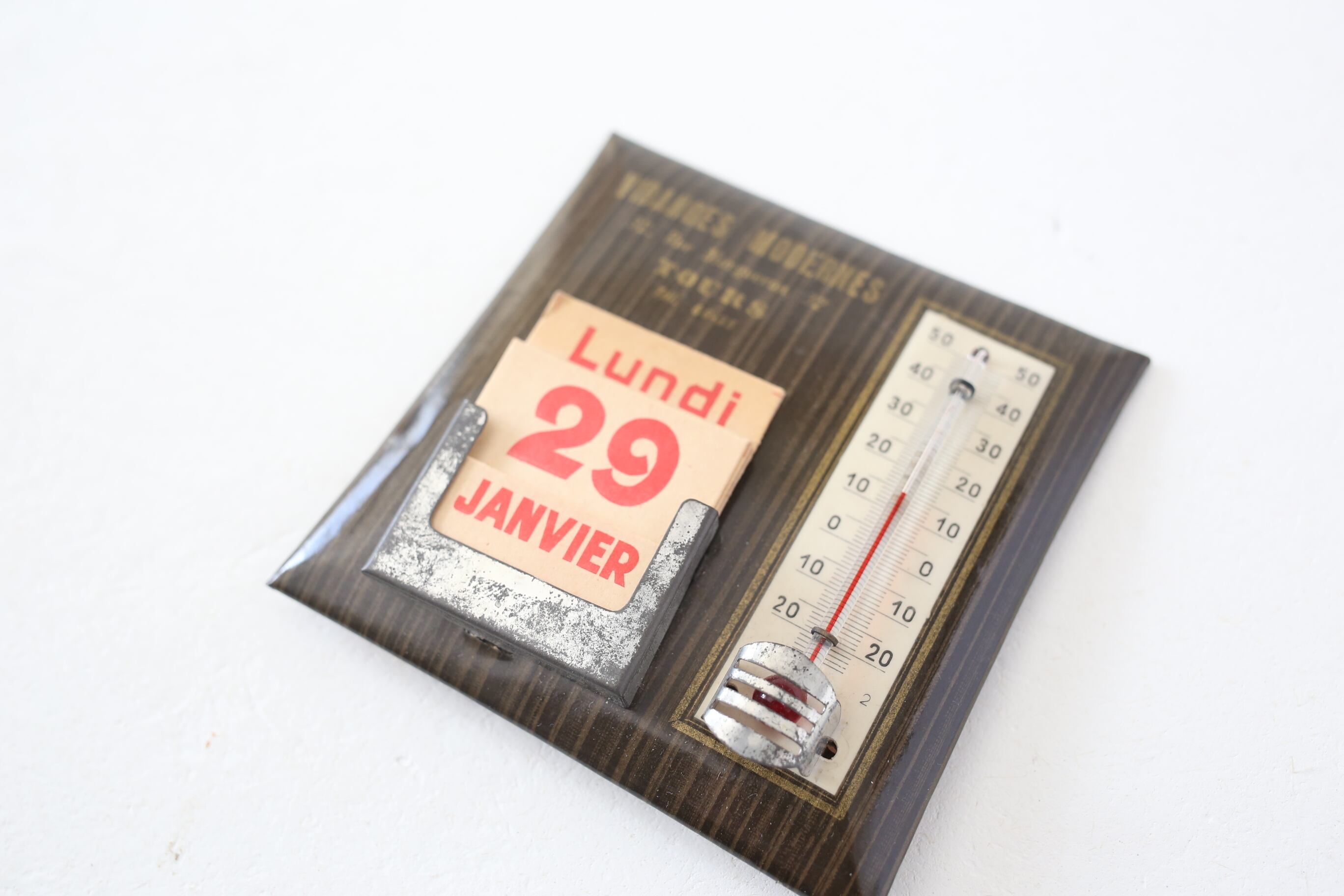 パリ郊外のアンティークフェアで見つけた温度計付きの万年カレンダーです。