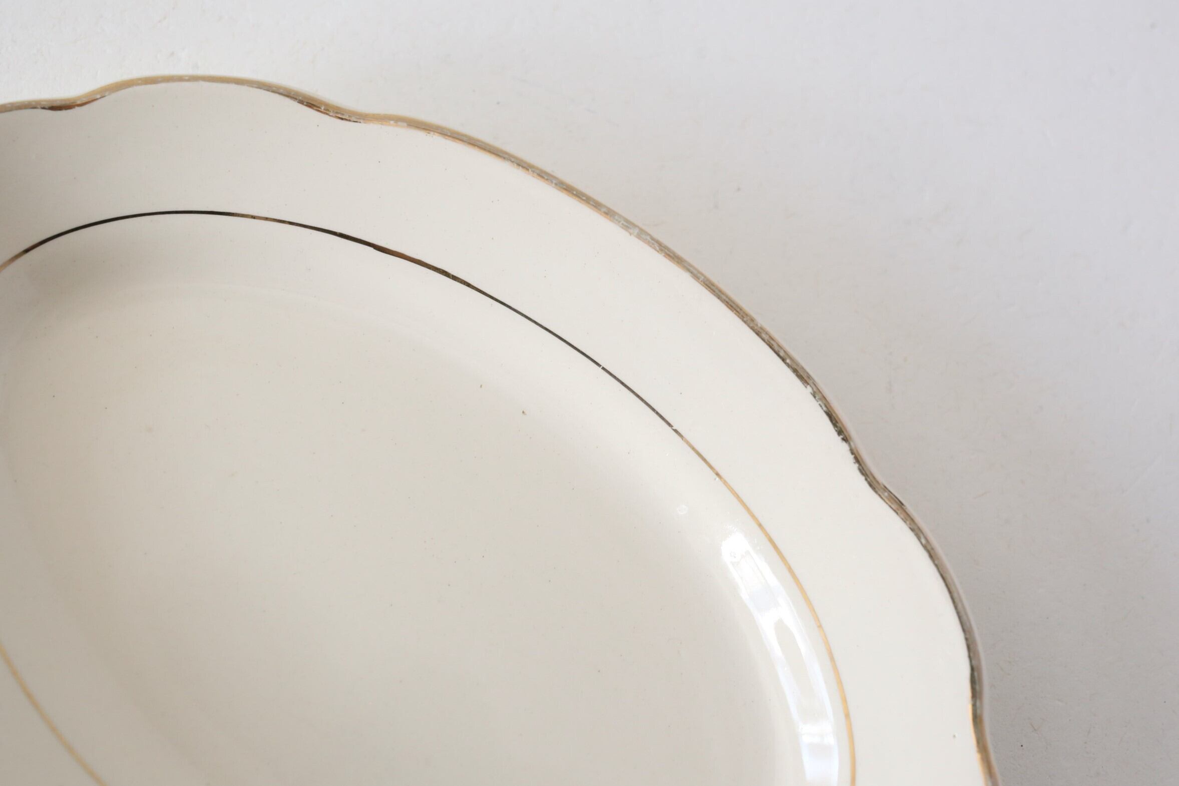 フランス アンティーク ヴィンテージ Digoin Sarreguemines サルグミンヌ オーバル皿 無地 金彩 N-05010