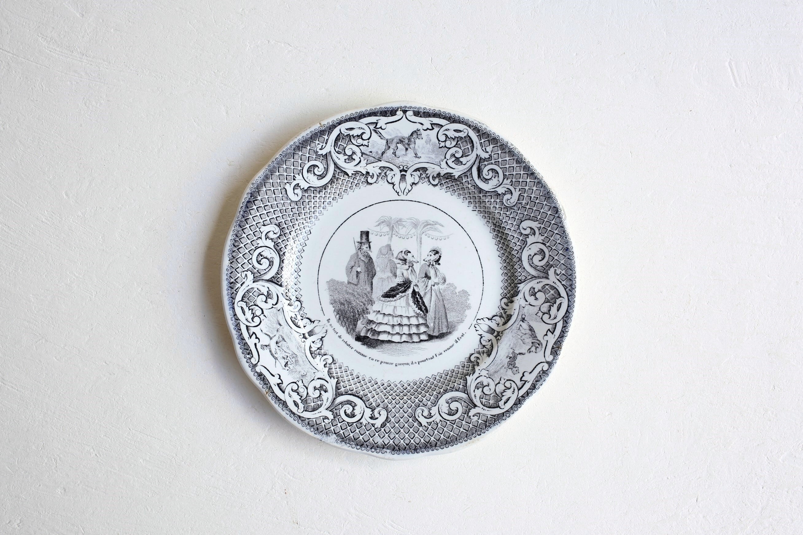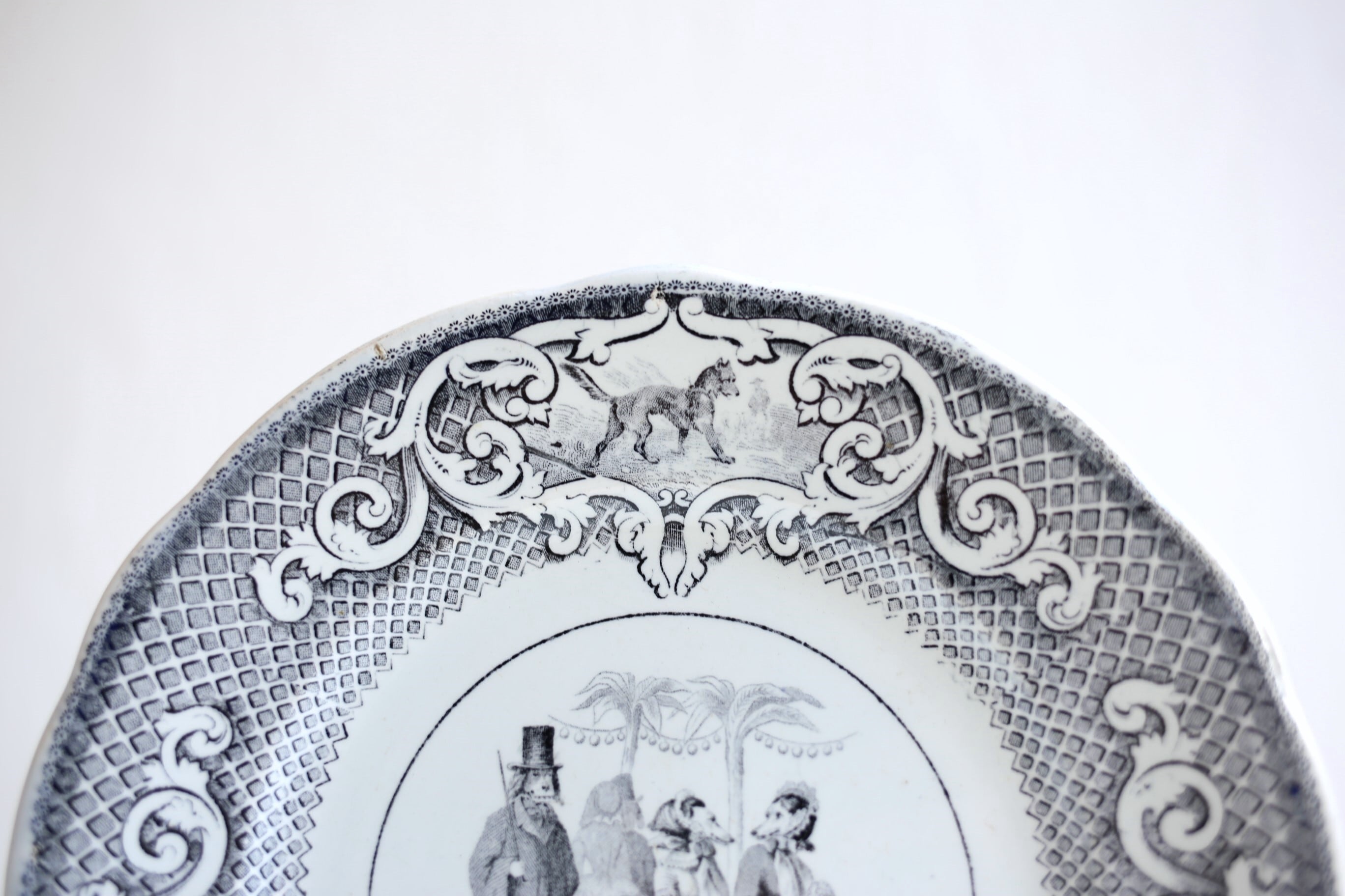 フランス アンティーク クレイユモントロー 『擬人化されたイヌ』 グリザイユプレート N-04639