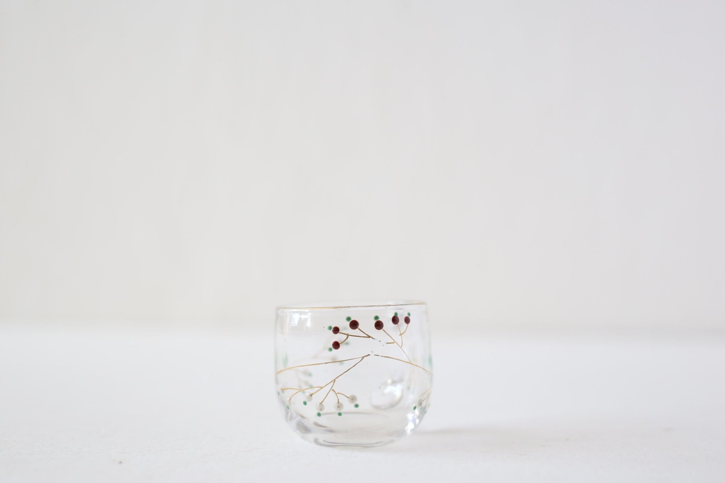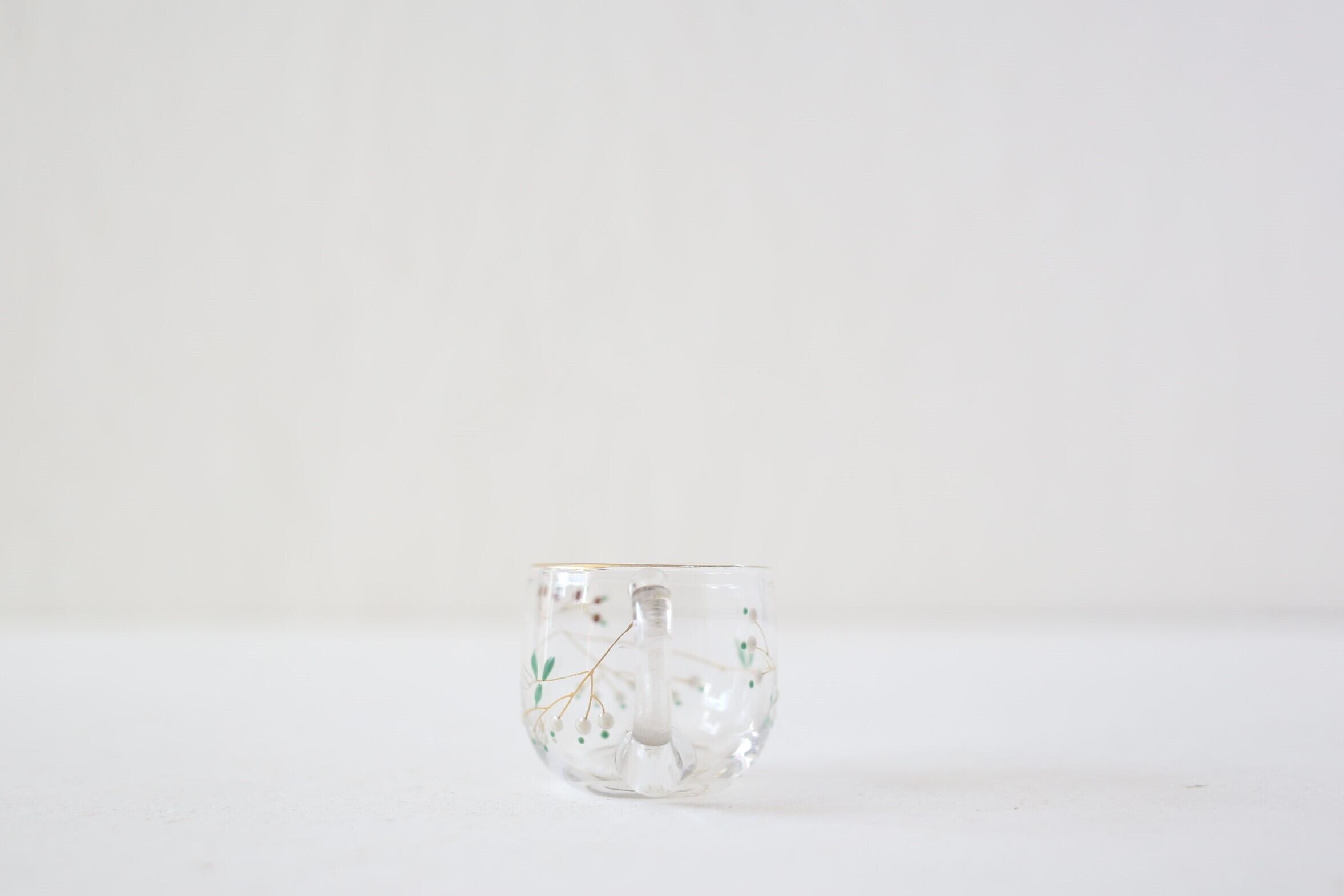 おままごと用(dinette)か薬酒などを一口飲むためのものなのか定かではありませんが、口径約3.8㎝の小さなガラスカップに繊細なエナメル彩と金彩が施された素敵な一品です。