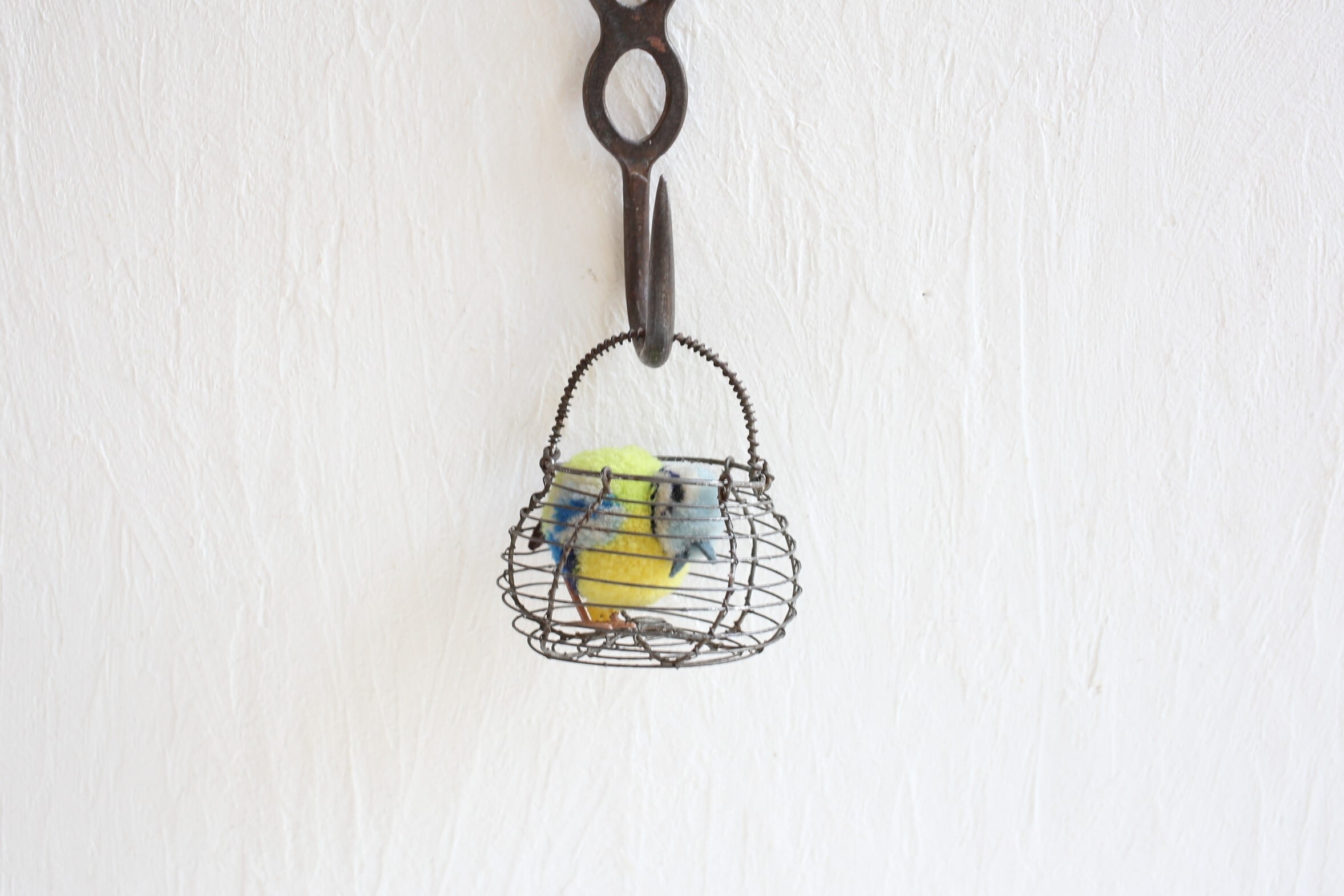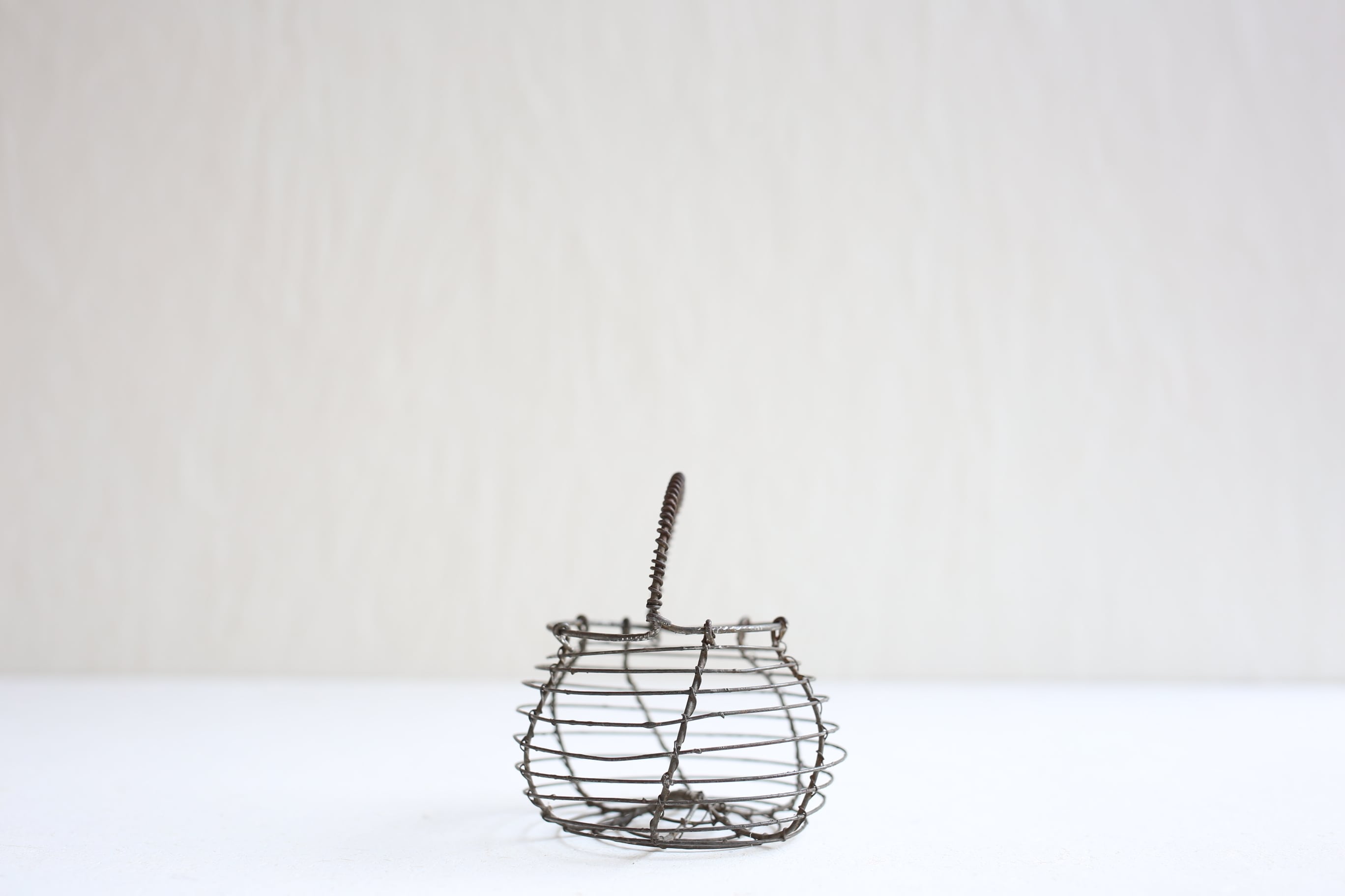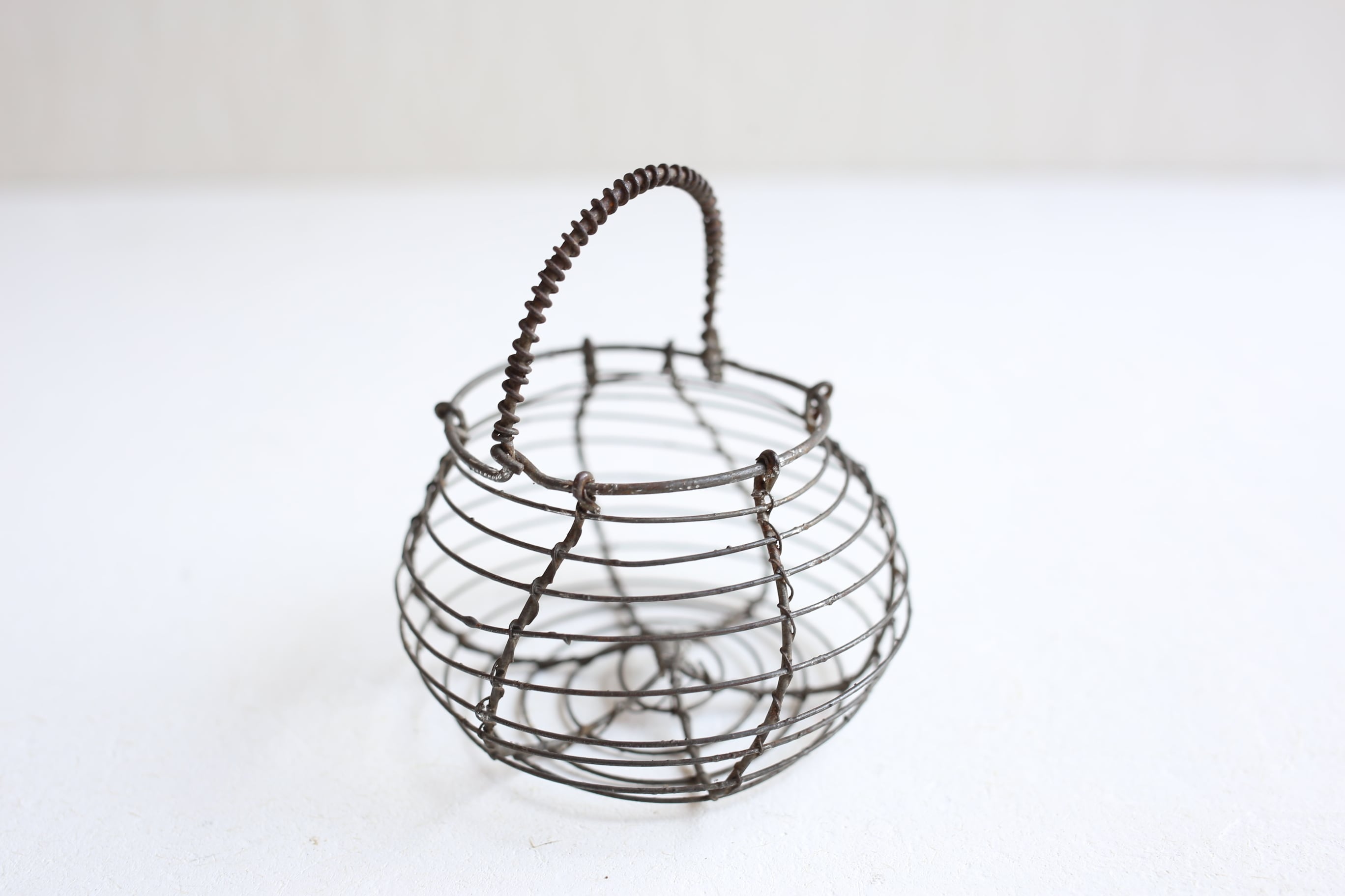 卵や野菜などを入れておくワイヤーパニエのミニチュアですが、ドライフラワーやお気に入りのものを入れてディスプレイしたり、キッチンに掛けてニンニク入れにしたりと色々と活用して頂けるアイテムです。