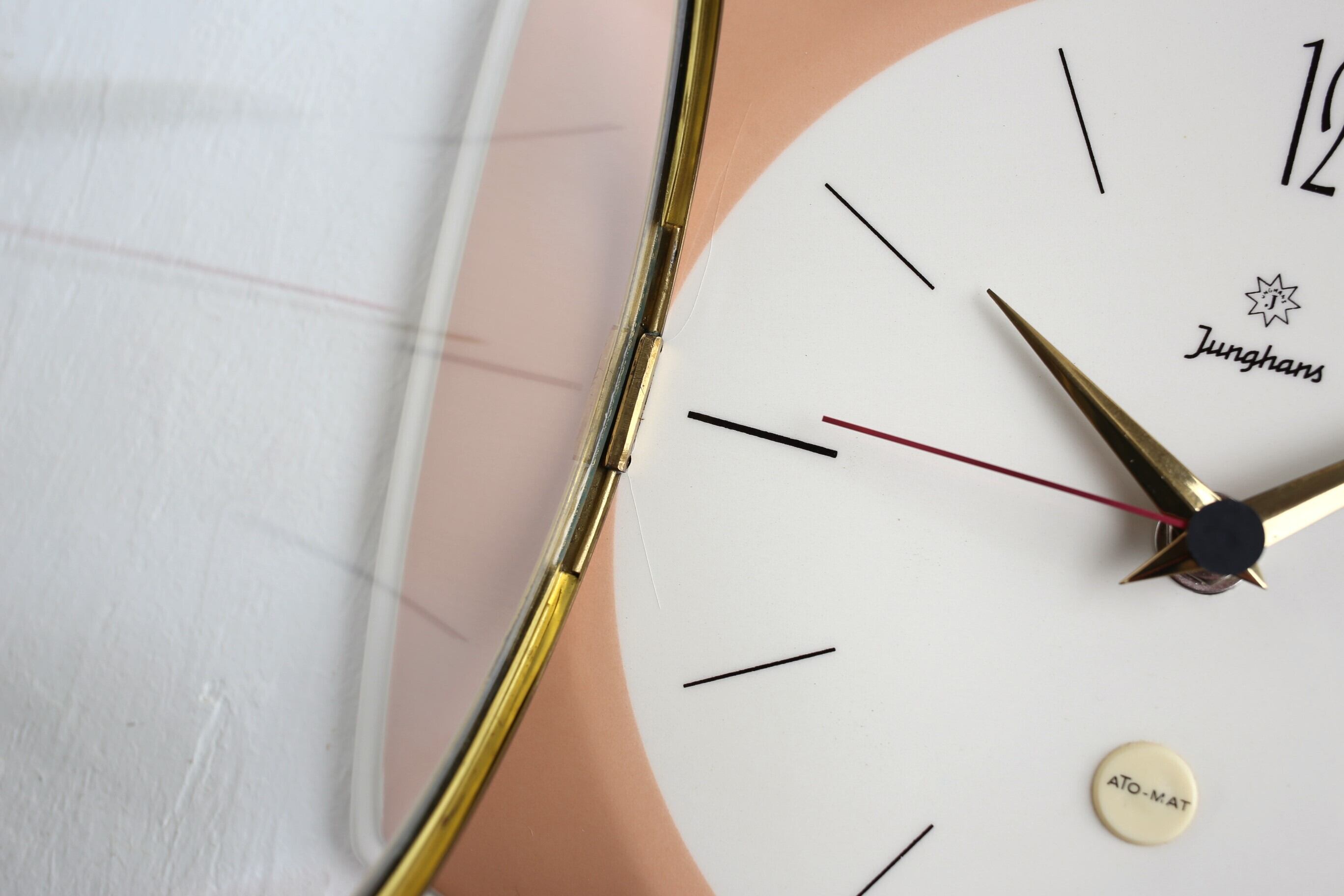 ドイツ アンティーク ヴィンテージ Junghans ユンハンス 陶器 掛時計 サーモンピンク 秒針付き(単3電池式クォーツ)N-04799