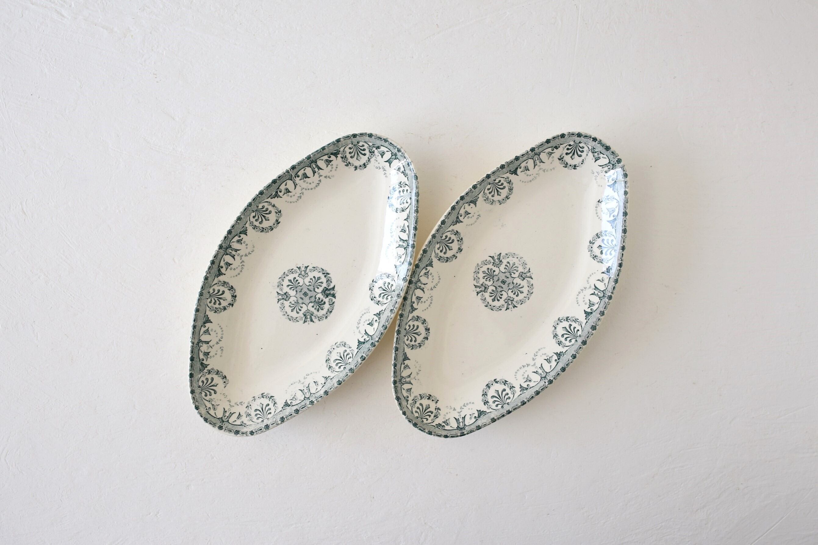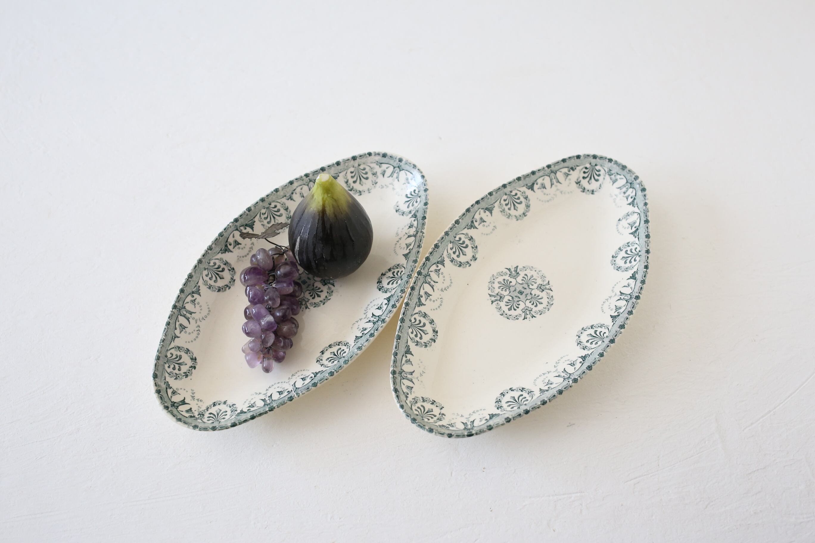 フランス アンティーク Choisy le Roi ショワジールロワ ラヴィエ グリーン アラベスク模様 N-04862