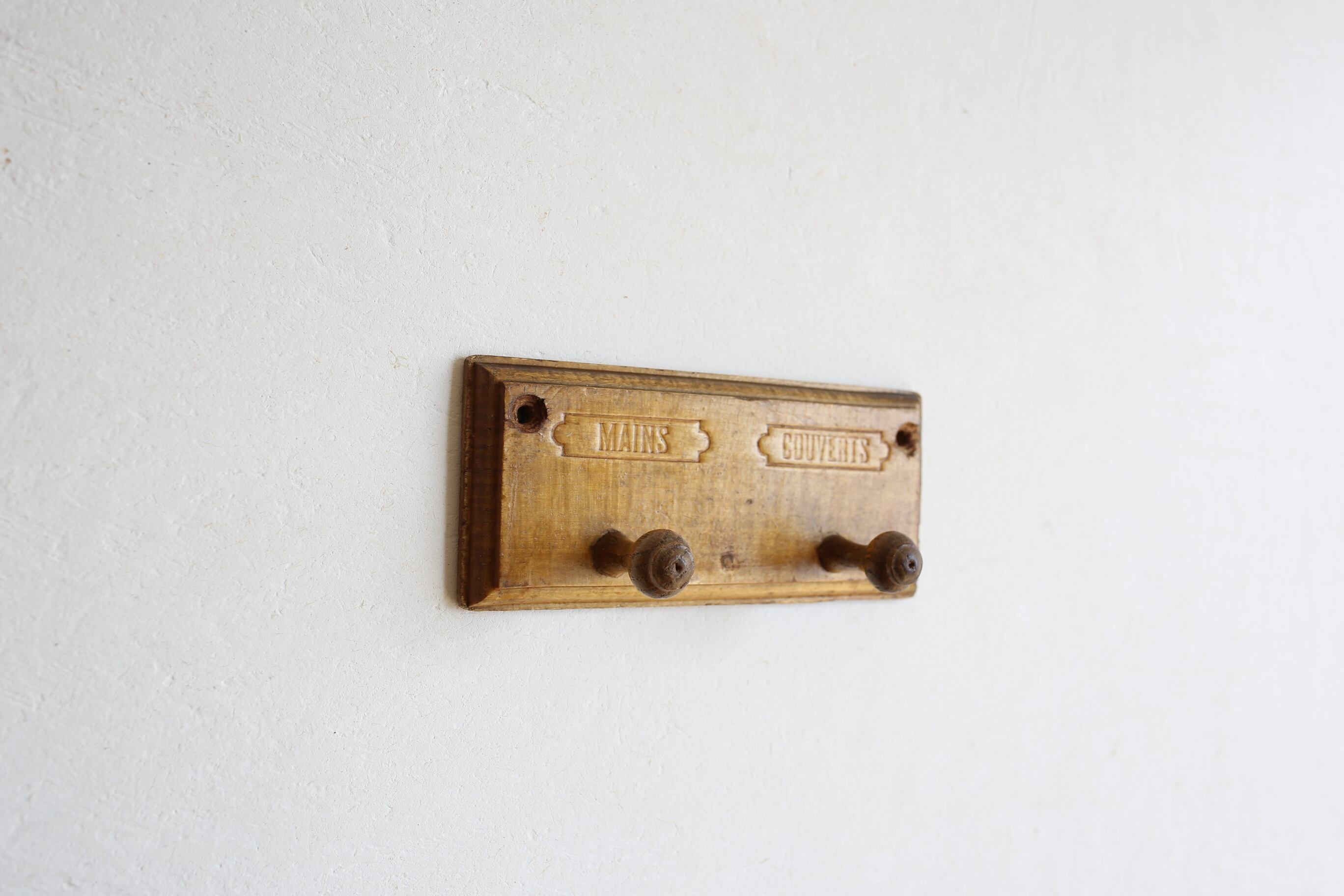 フランス アンティーク ヴィンテージ 木製 2連 トーションフック N-05442