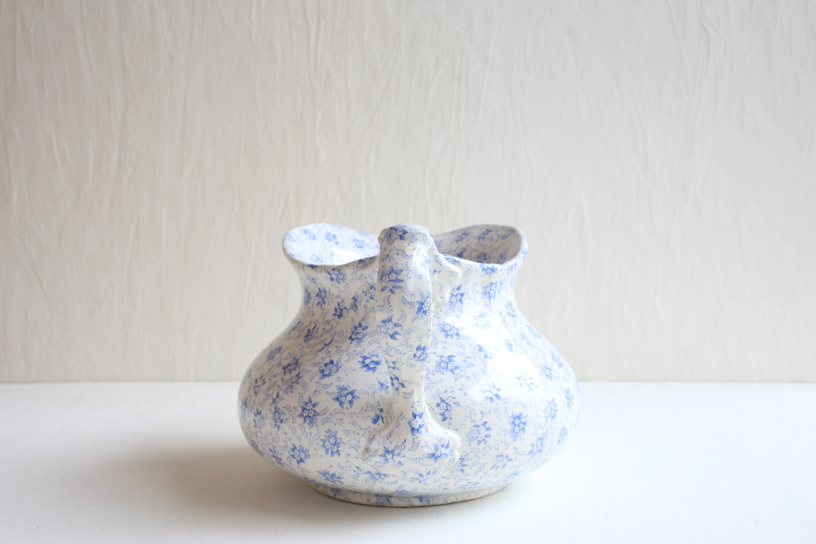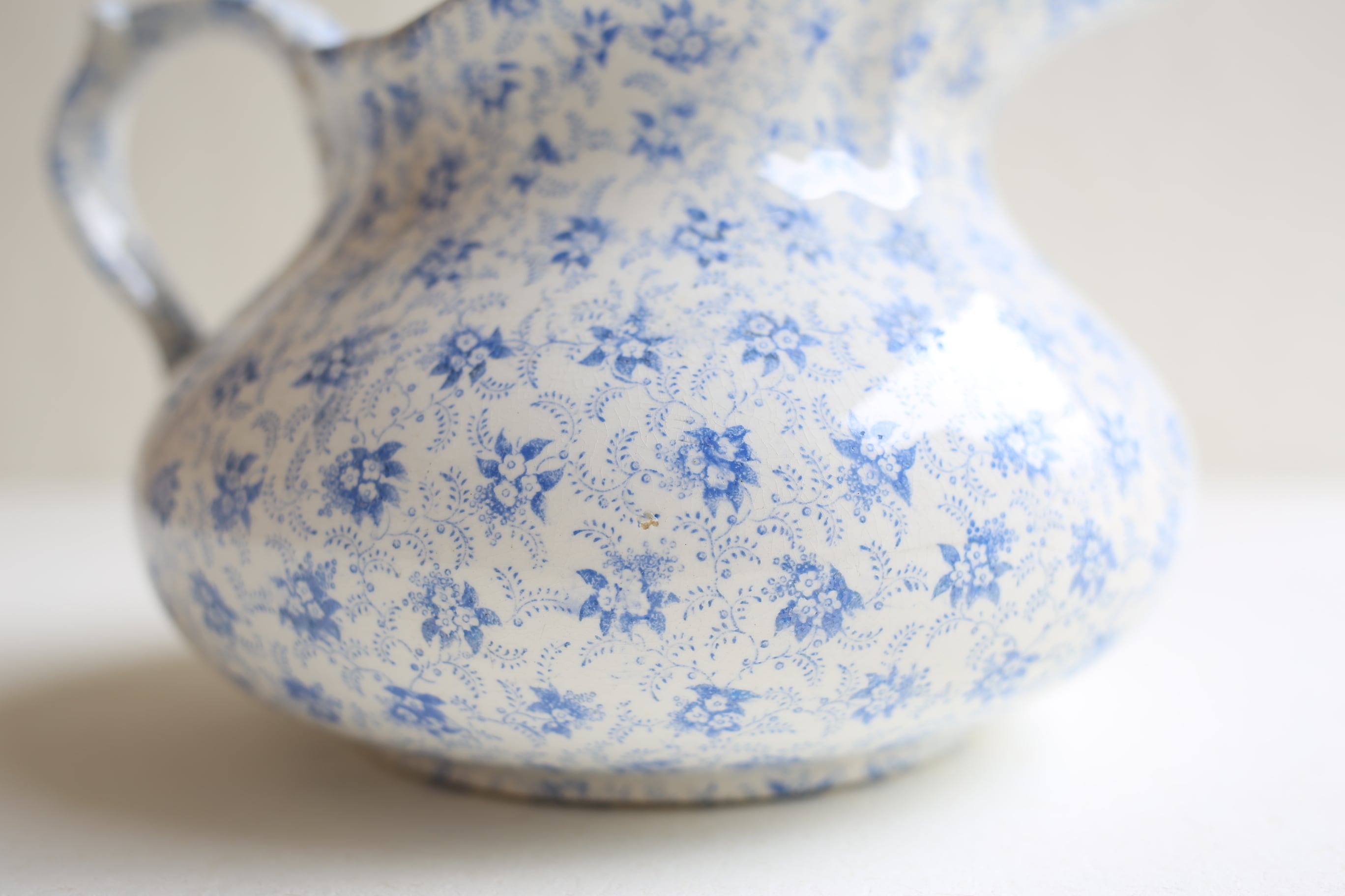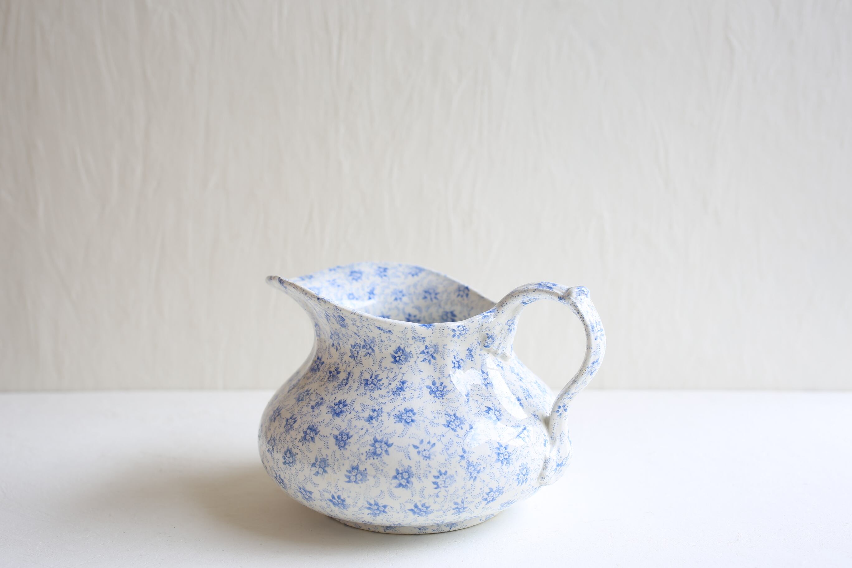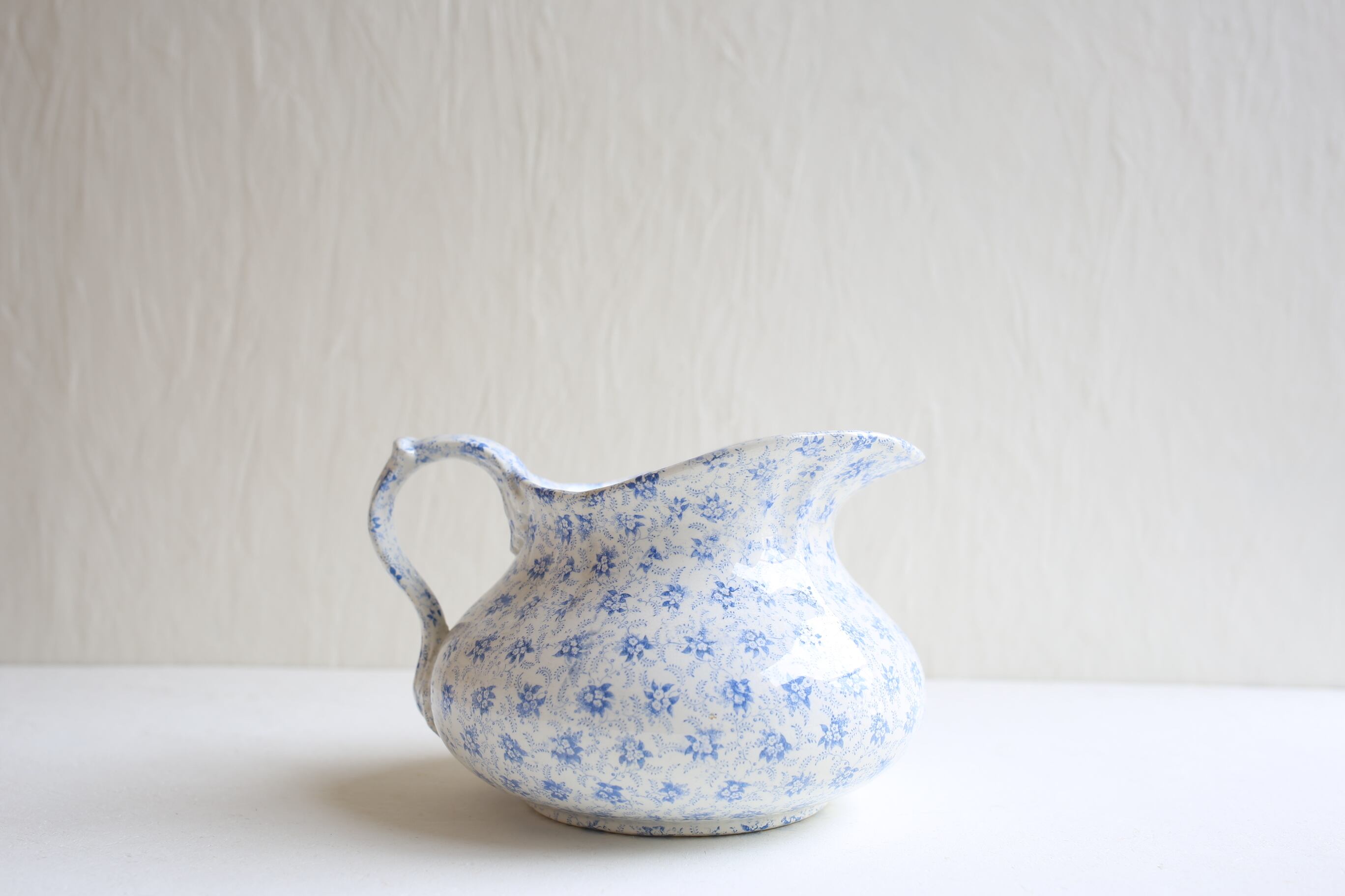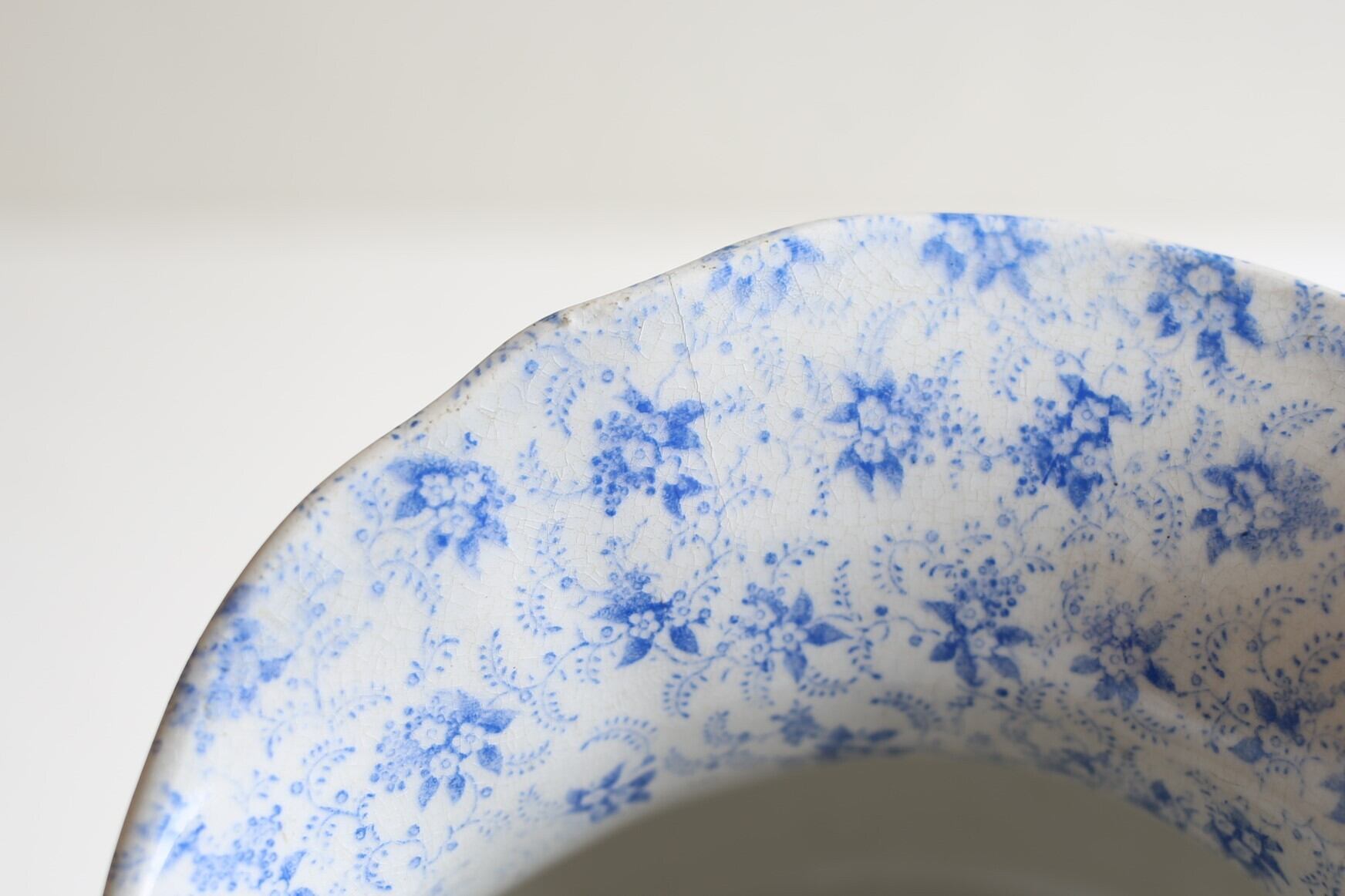 ピシェの口にヘアラインが一本とボウルの表面の釉薬に薄れは見られますが、それ以外は微細なスレやキズ、製造時のムラ程度で、100年以上経過したこのサイズの日用品の陶器としてはとても良い状態です。