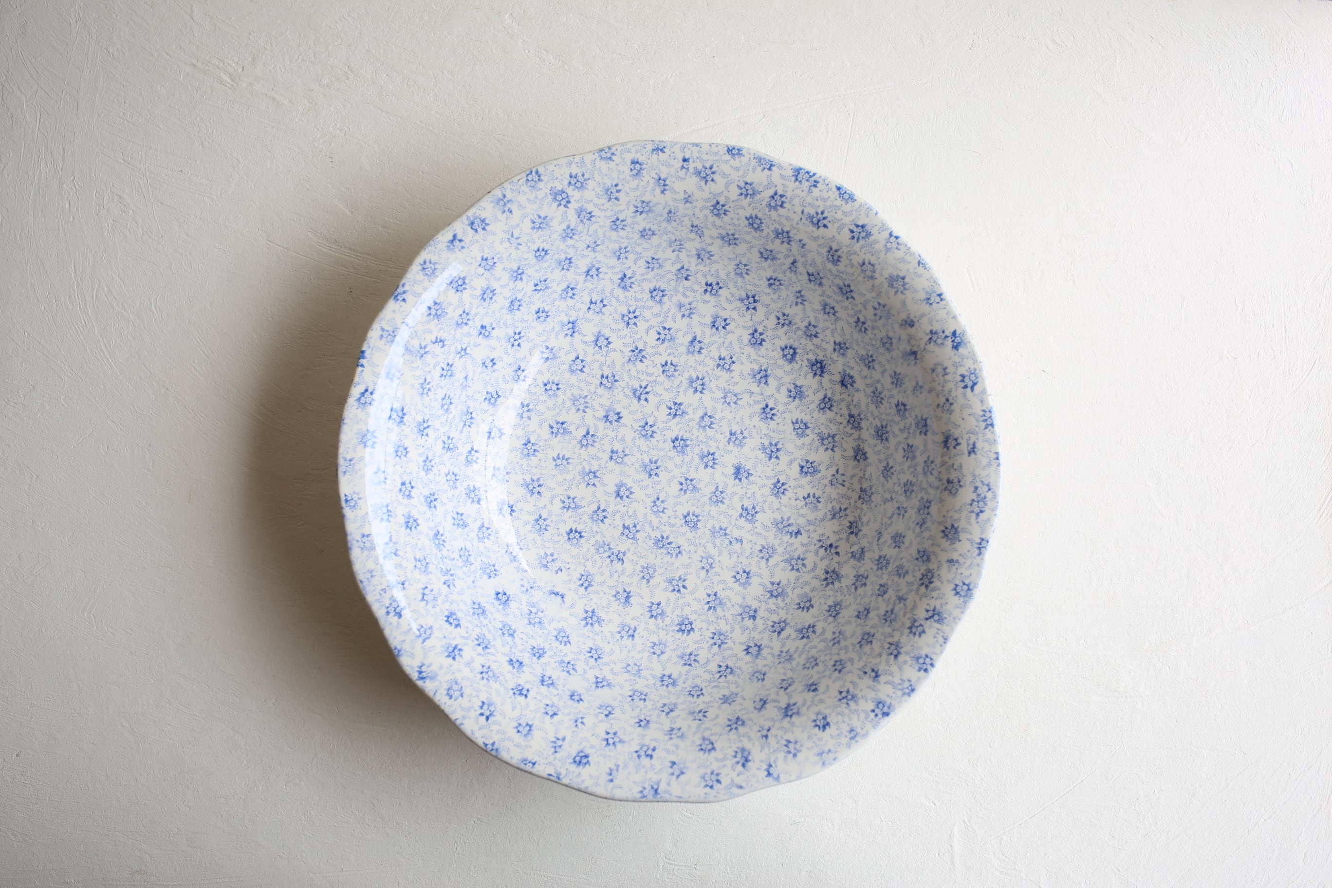 手に吸い付くような滑らかな陶器には、サルグミンヌのPERSEシリーズに似た人気の小花模様が優しいブルーで転写されています。
