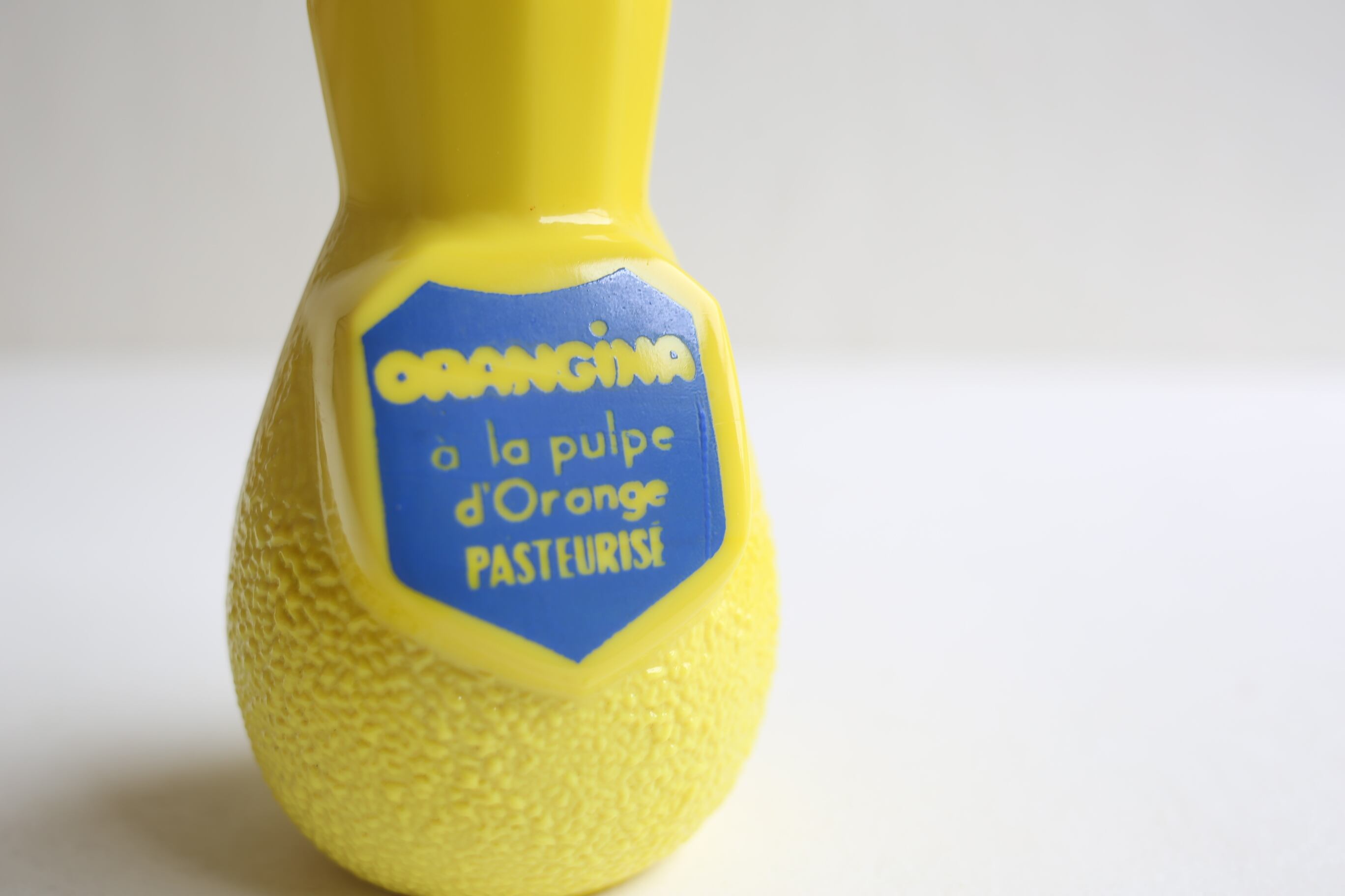明るい黄色にロゴのブルーが映えるオランジーナらしい素敵なデザインです。