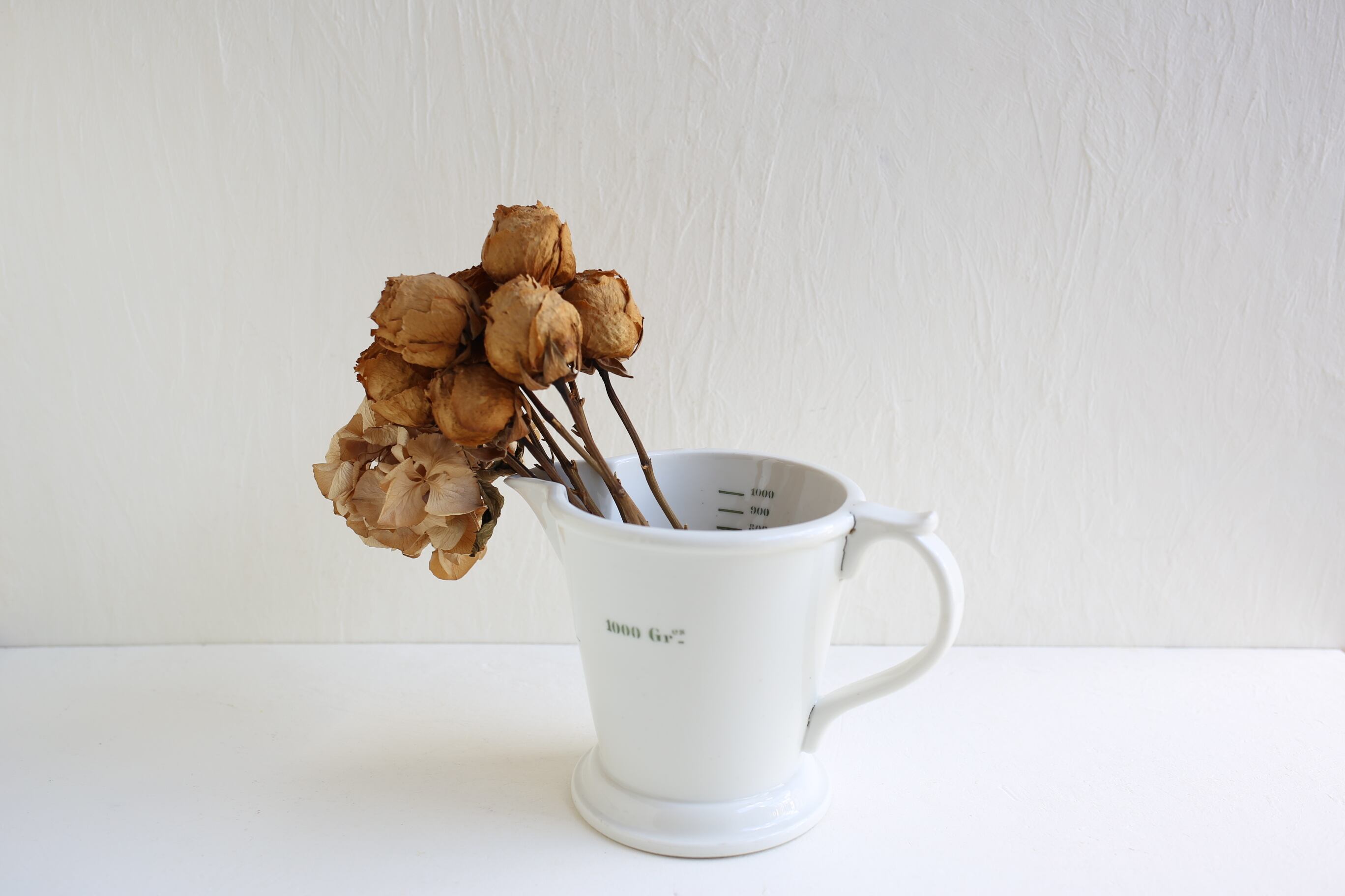 このサイズの磁器のメジャーカップは珍しいですが、ツール立てや花器などにもお使い頂けそうです。
