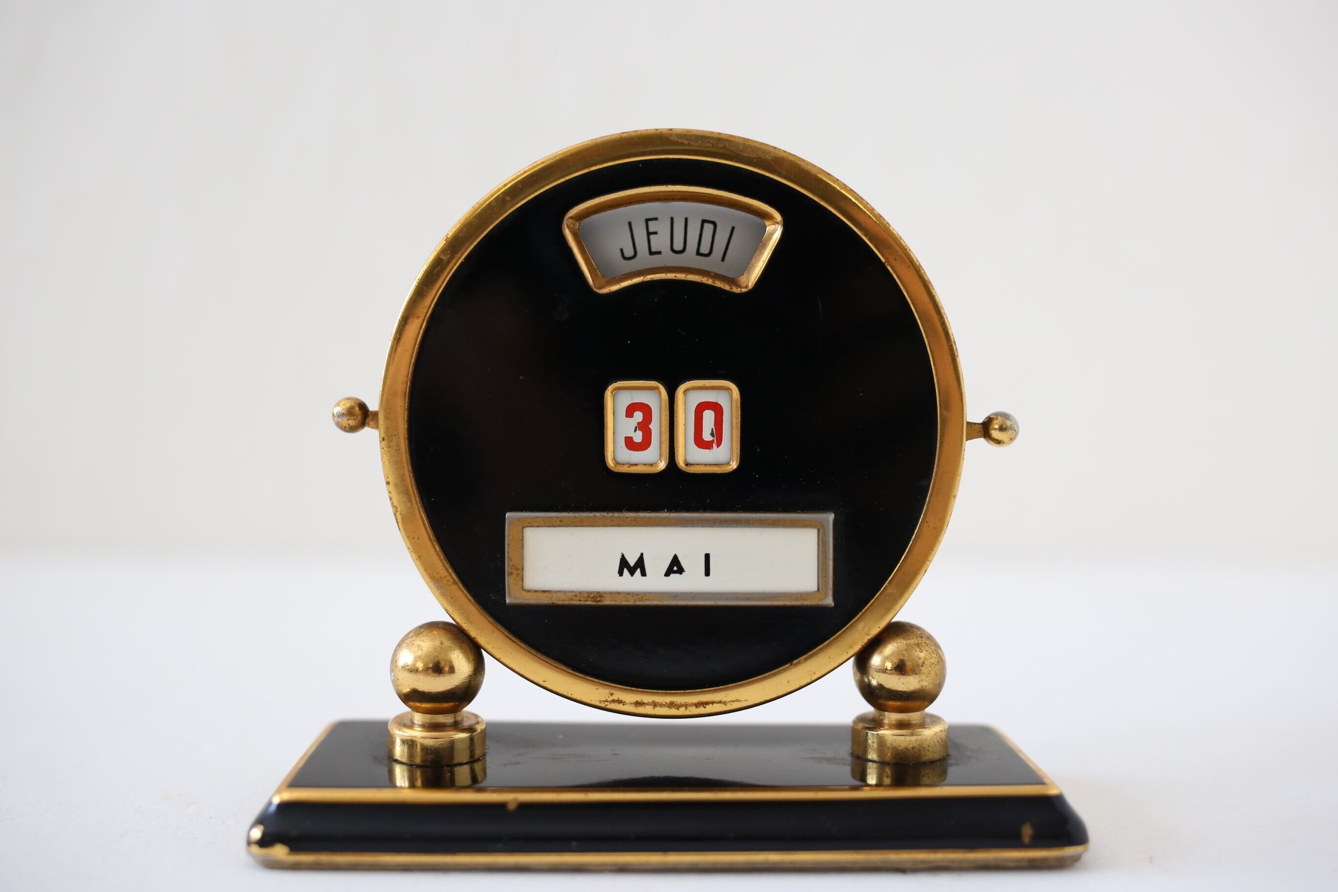 フランス アンティーク ヴィンテージ MISTRAL 万年卓上カレンダー ブラック×ゴールド N-05247