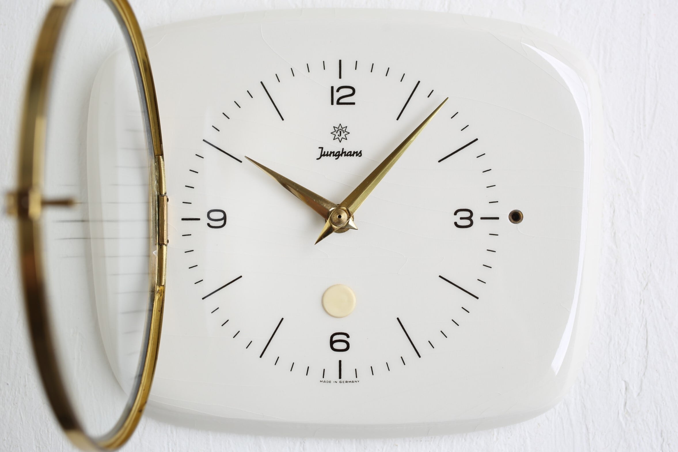 ドイツ アンティーク ヴィンテージ Junghans ユンハンス 陶器 掛時計 小 (単3電池式クォーツ)N-05180