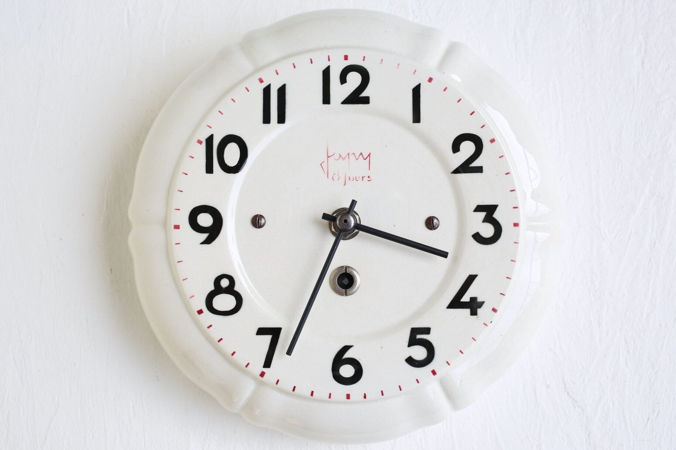 フランス アンティーク ヴィンテージ JAPY 陶器 掛時計 アイボリー (単3電池式クォーツ) N-05287