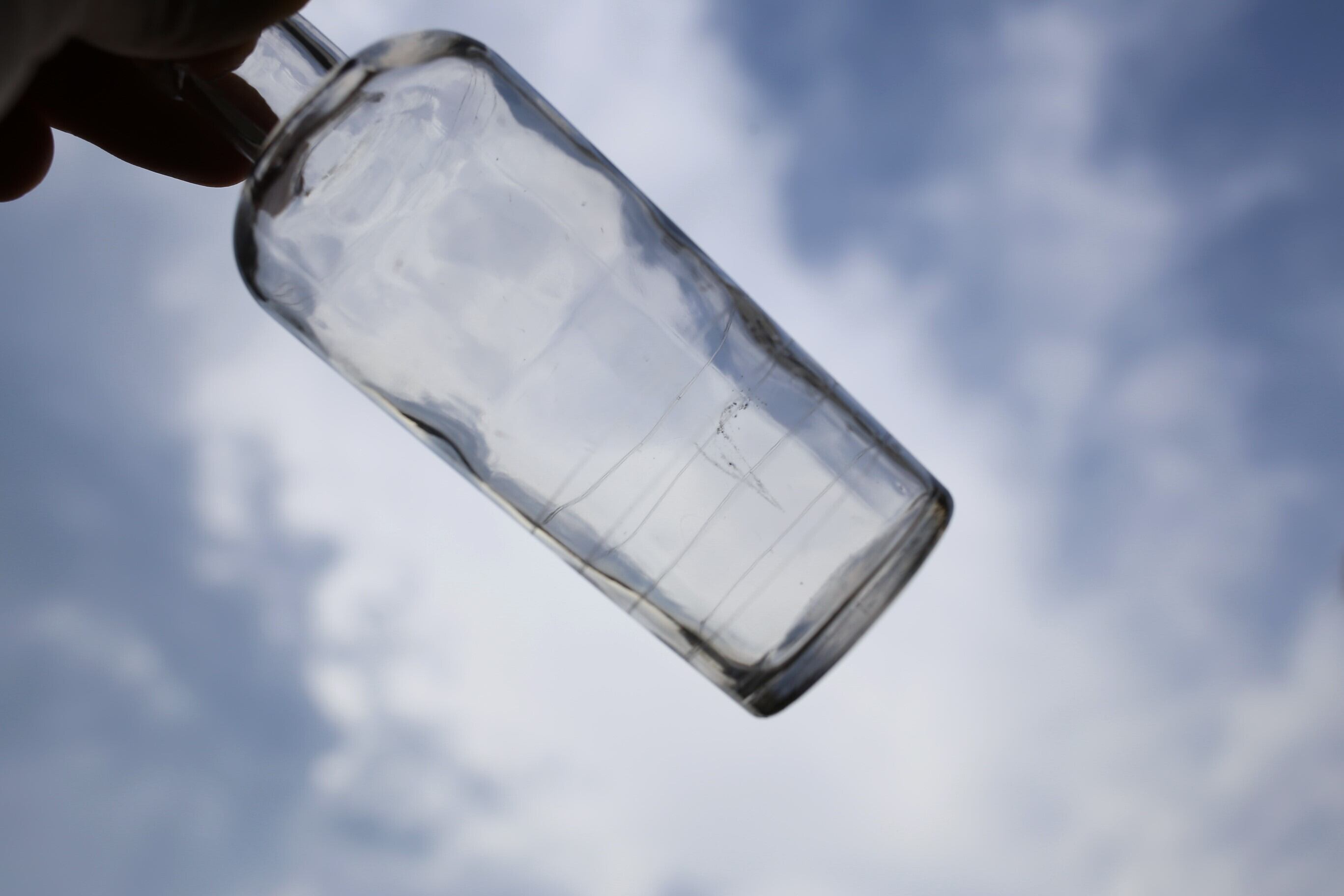フランス アンティーク ヴィンテージ メモリ付きボトル ガラス瓶 高さ約12.7cm N-04984