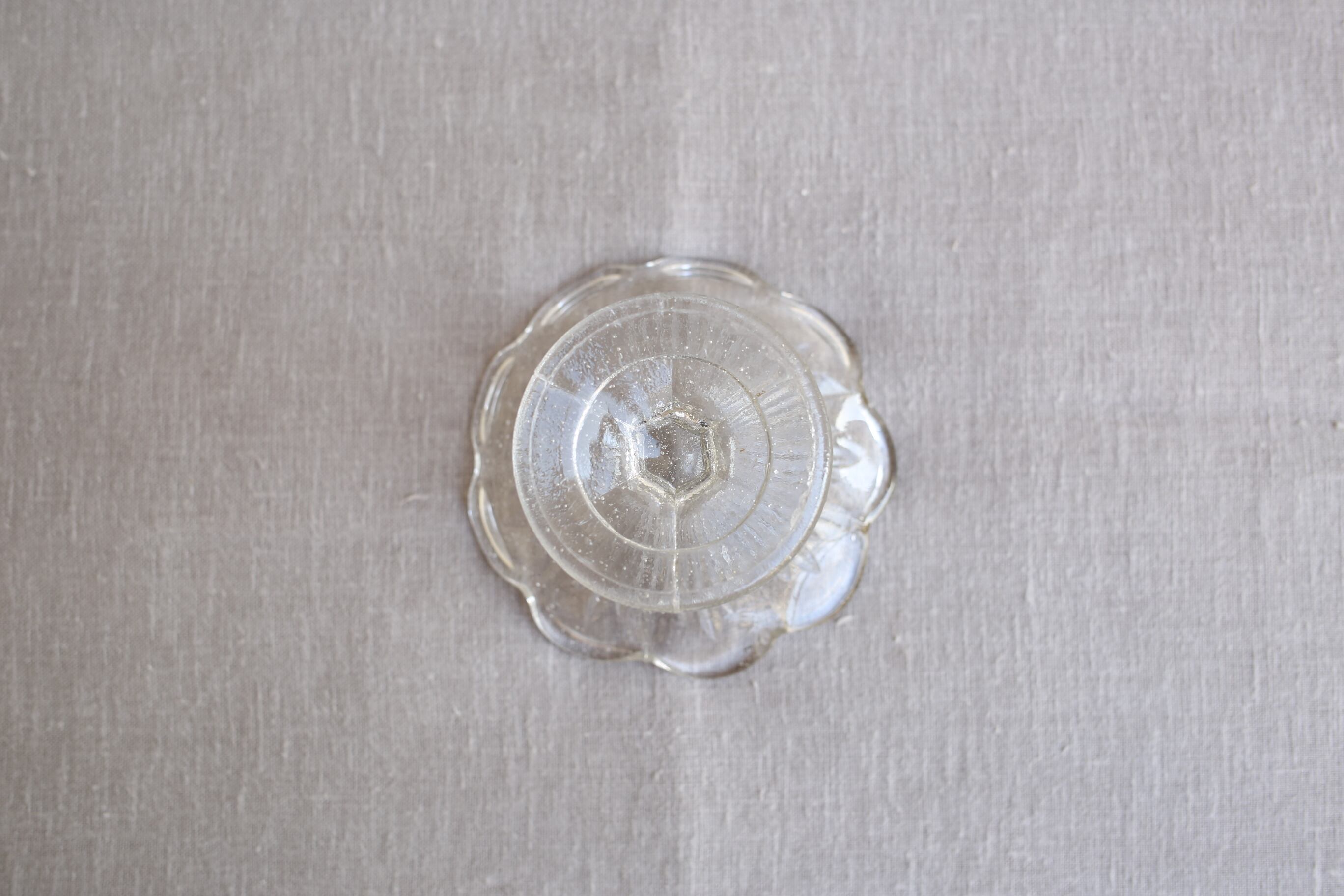 フランス アンティーク ヴィンテージ 小さなガラスのコンポティエ 直径約10.8cm N-05497