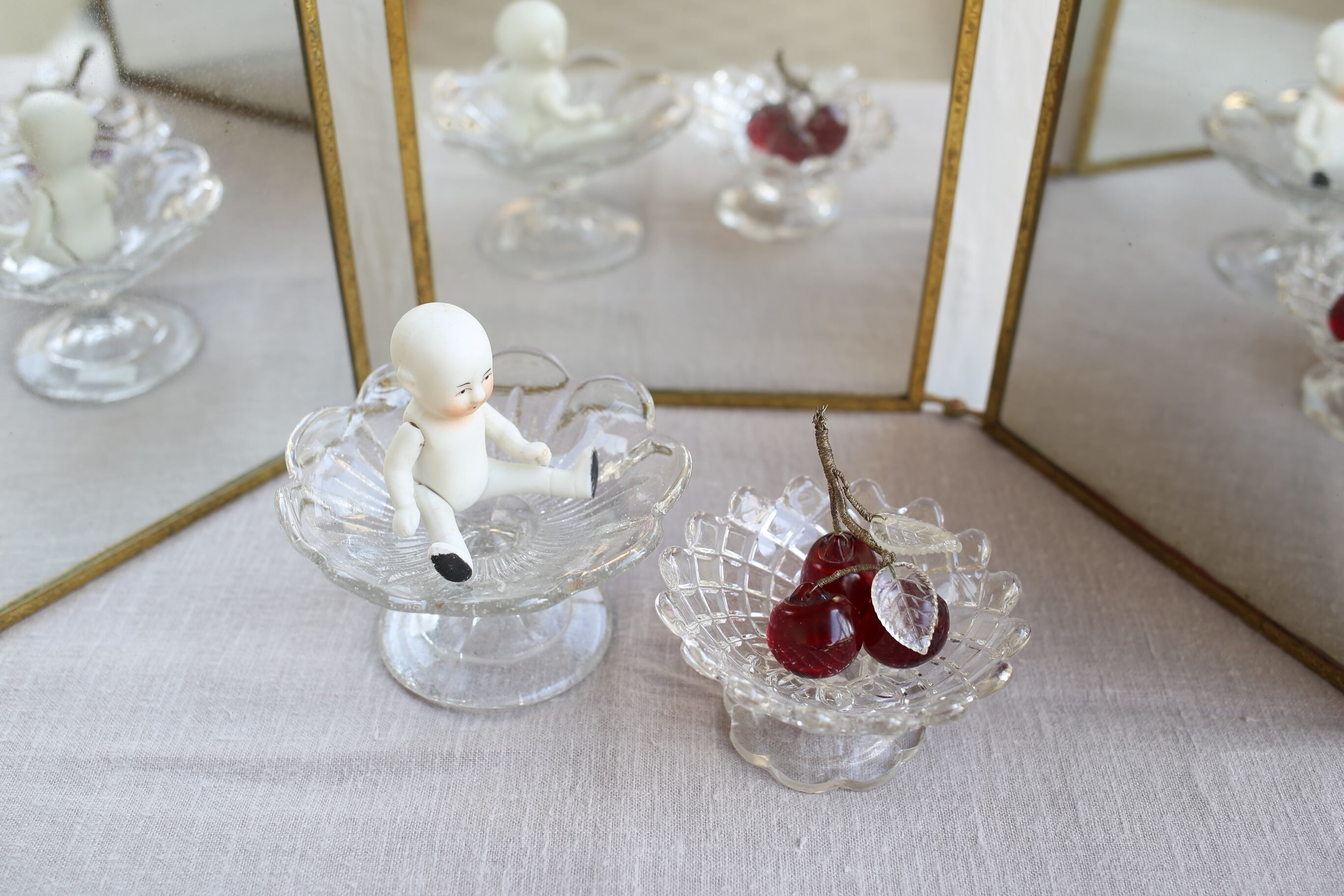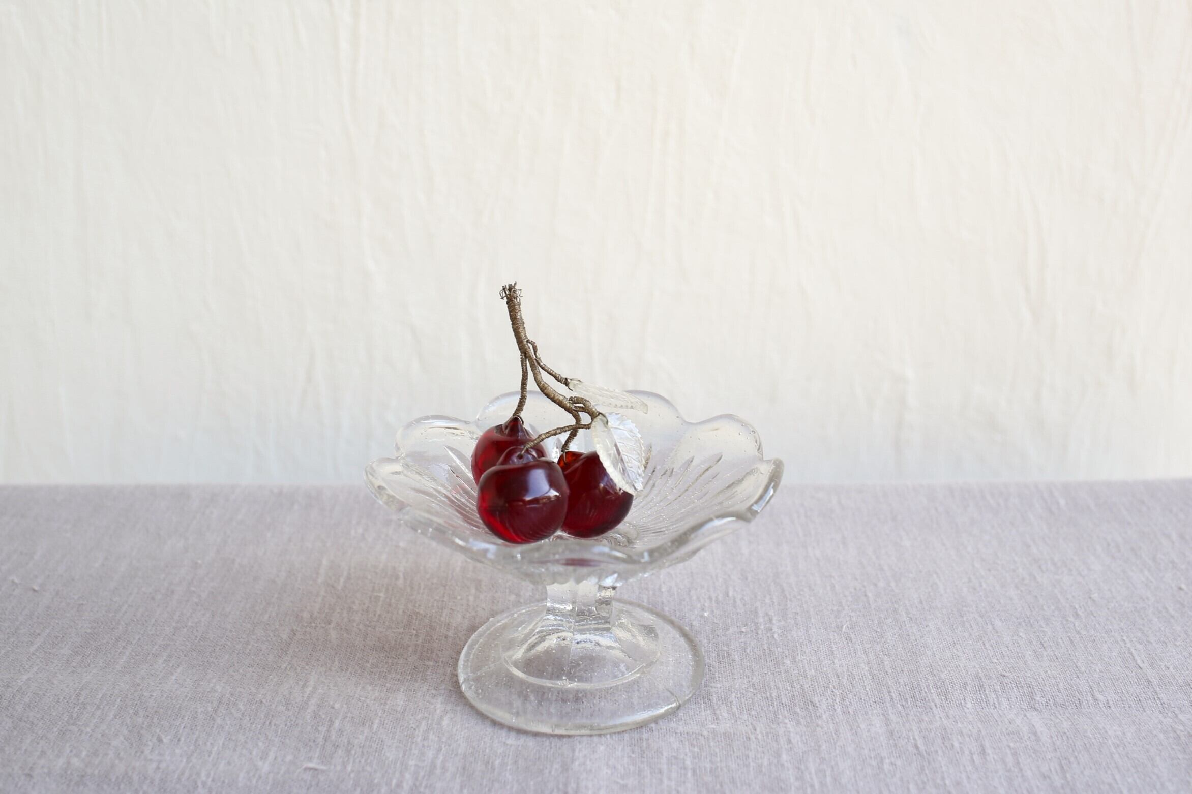 パリ郊外のアンティークショップで見つけた小さなガラスのコンポティエです。