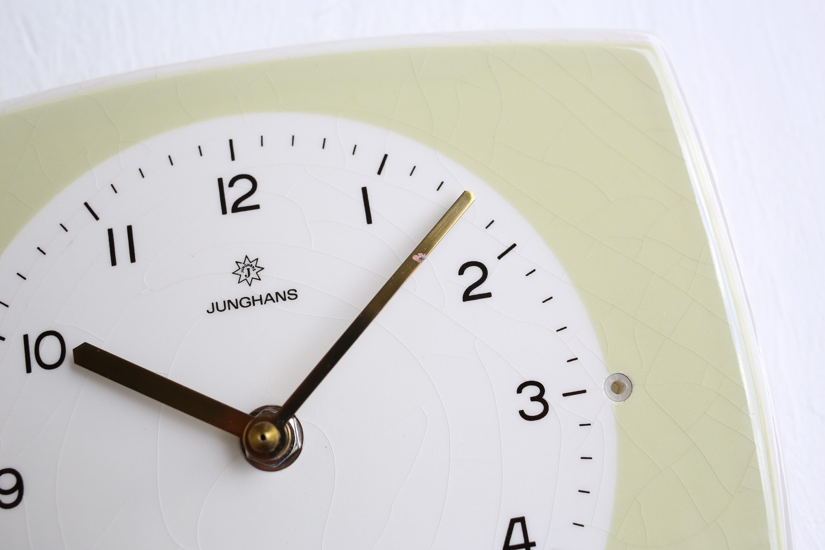 ドイツ アンティーク ヴィンテージ Junghans ユンハンス 陶器 掛時計 薄い黄色(単3電池式クォーツ)N-05404