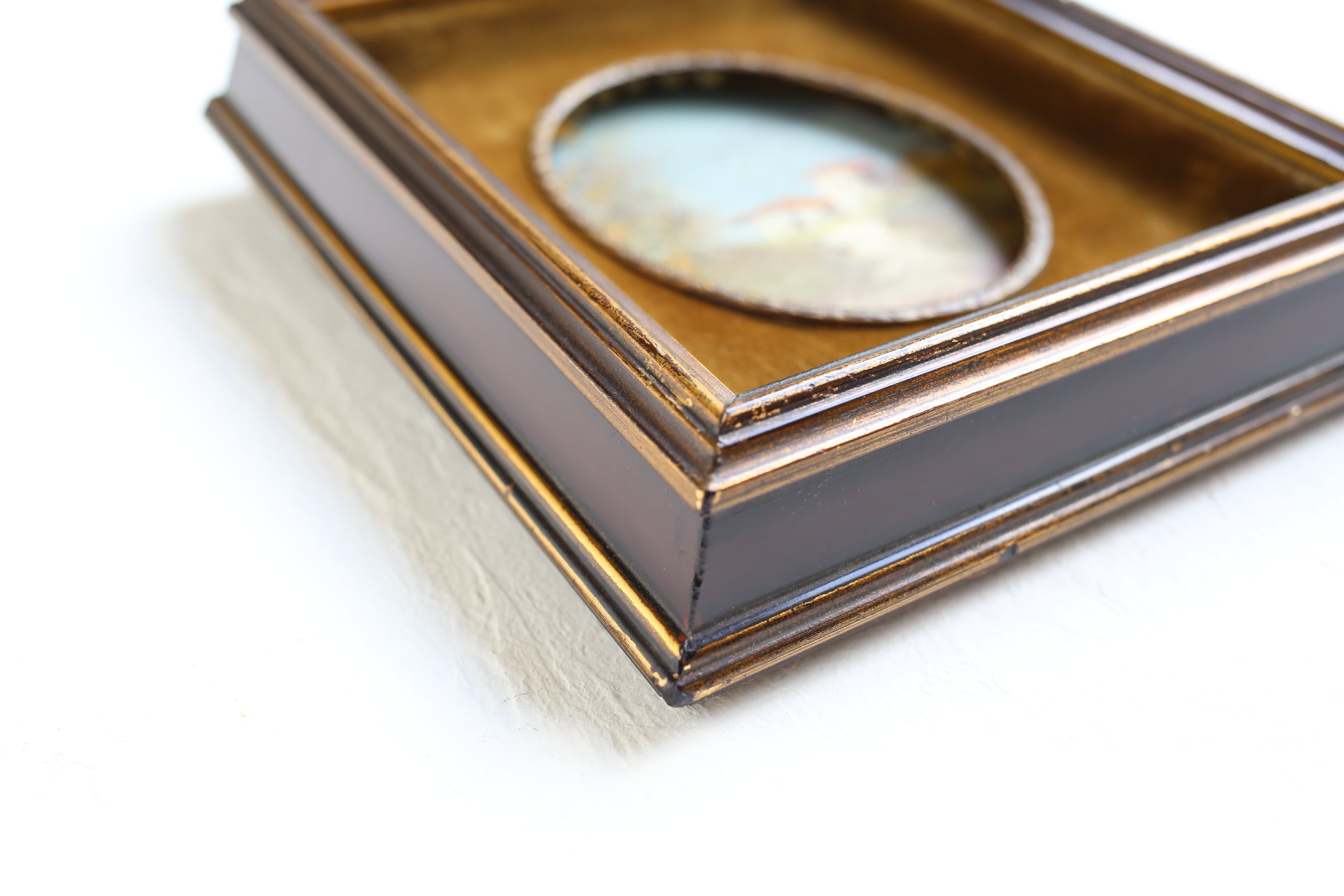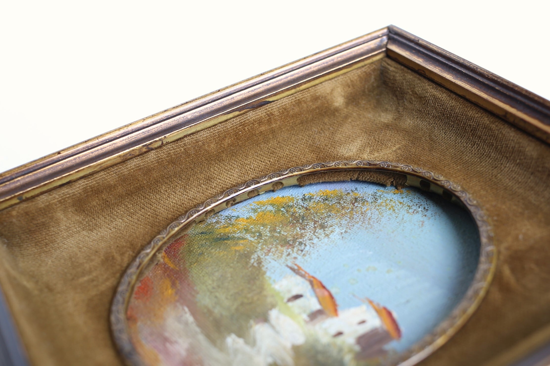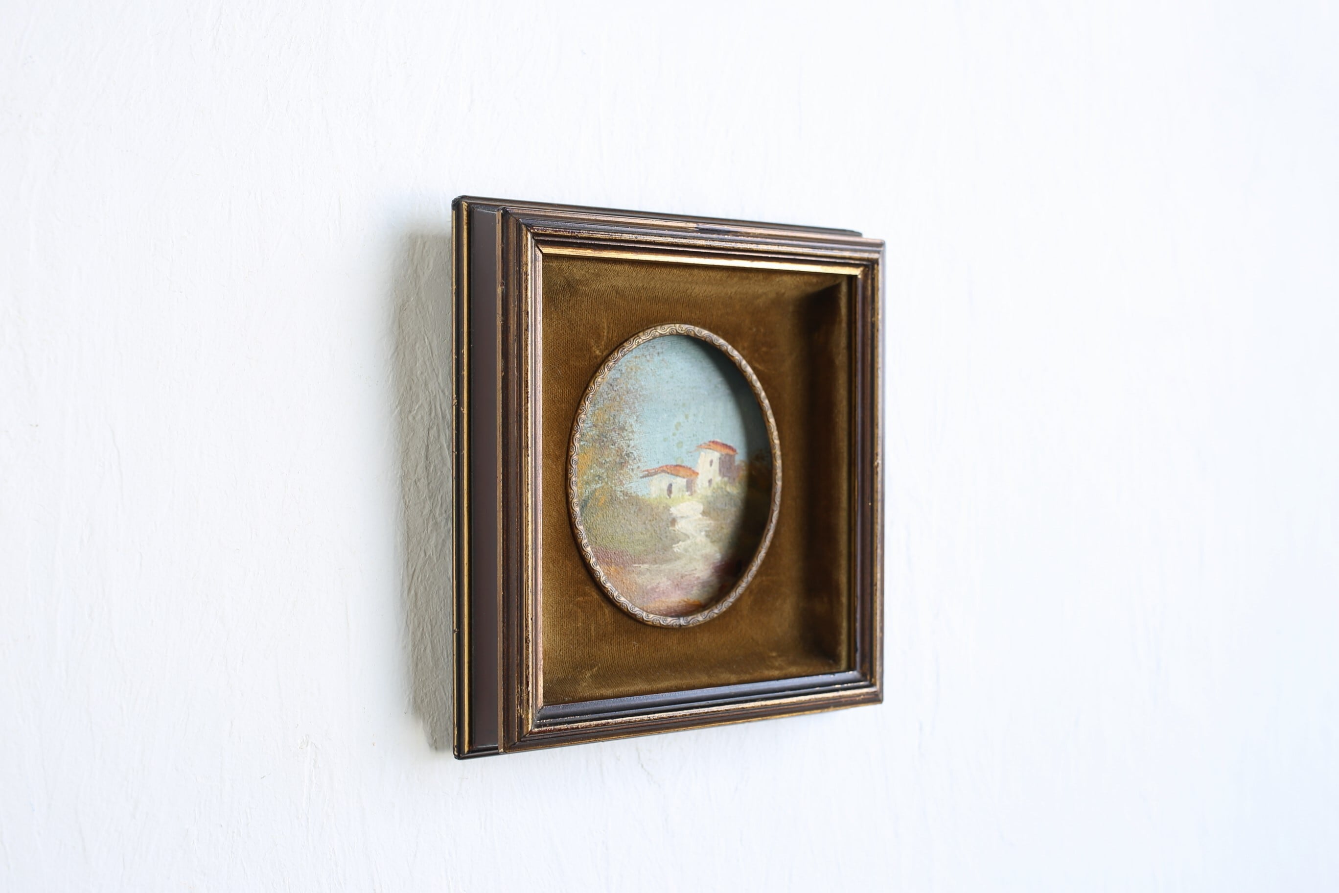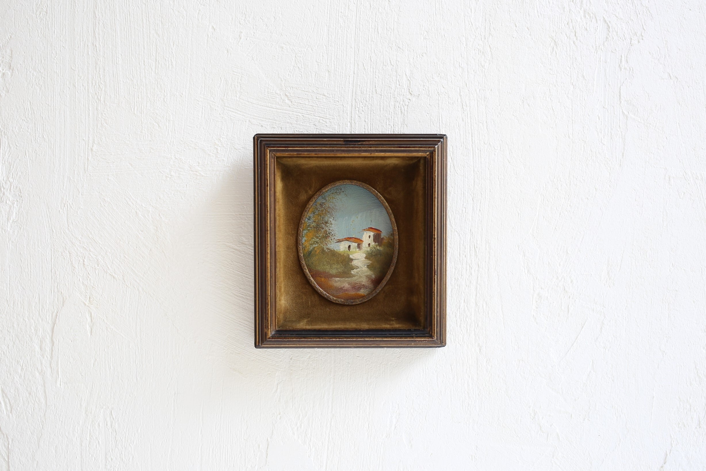 フランス アンティーク ヴィンテージ 小さな額絵 油絵 ベルベットのマット N-01672