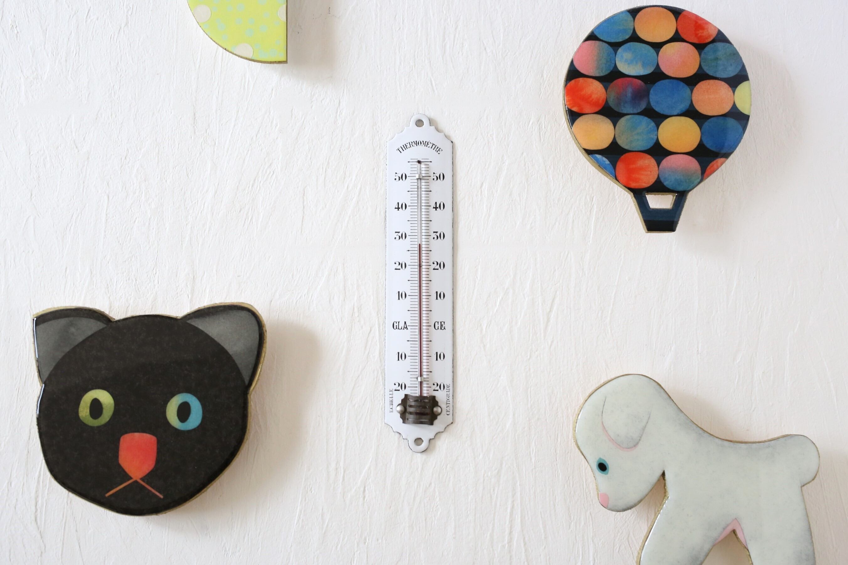 パリの蚤の市で見つけたホーロー製の温度計です。