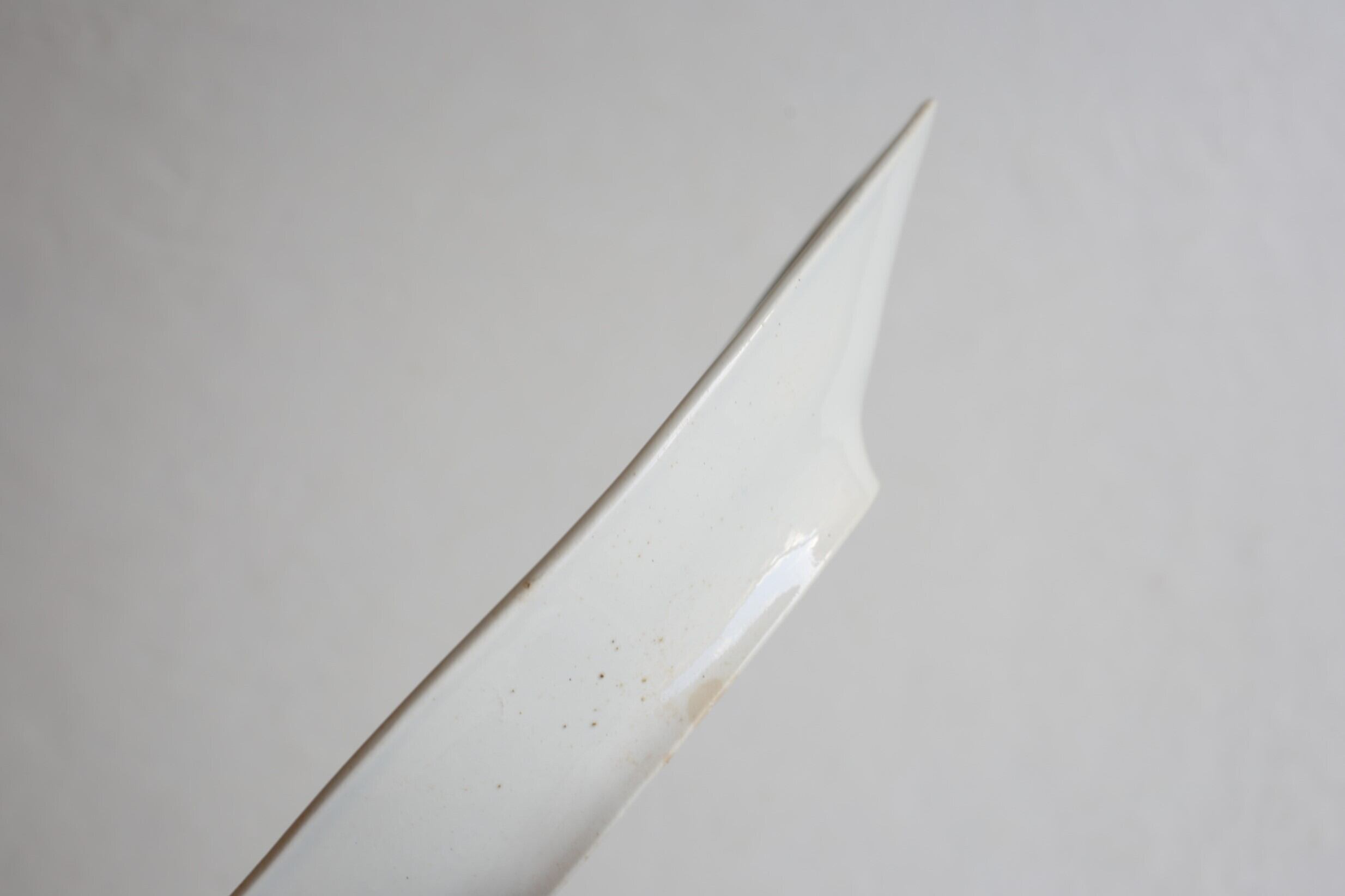 高台の縁に小さなチップがありますが、それ以外は縁のスレや若干のシミ、裏の底のシミやカトラリー跡、製造時のムラ程度で、全体的にはカケやヒビなど目立つダメージもなく良い状態です。