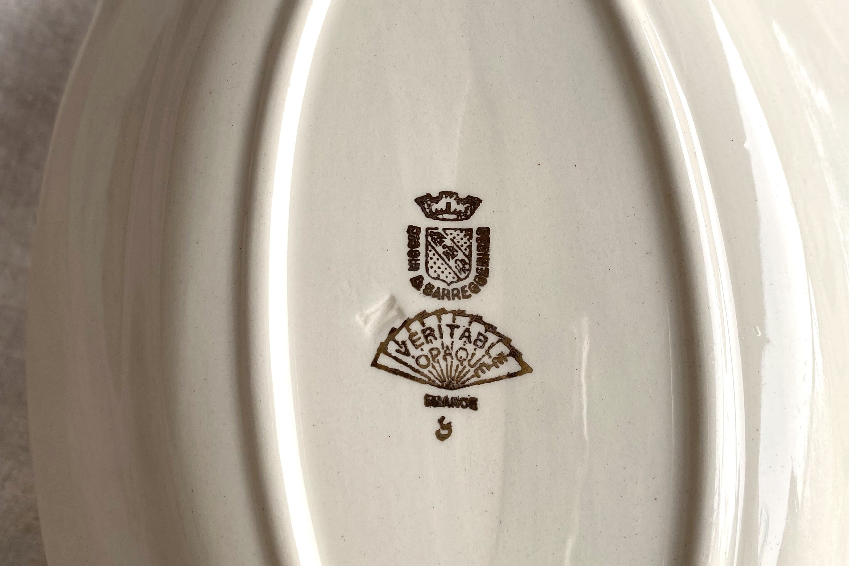 フランス アンティーク ヴィンテージ Digoin Sarreguemines サルグミンヌ オーバル皿 無地 金彩 N-05010