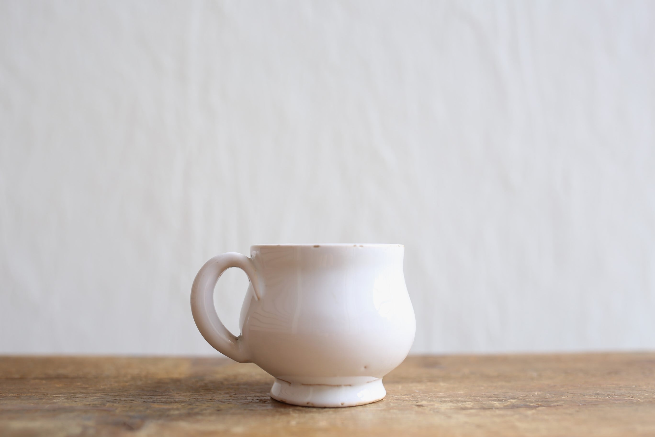 フランス アンティーク ムスティエ 二重の持ち手が美しい小さな白釉のカップ N-05554