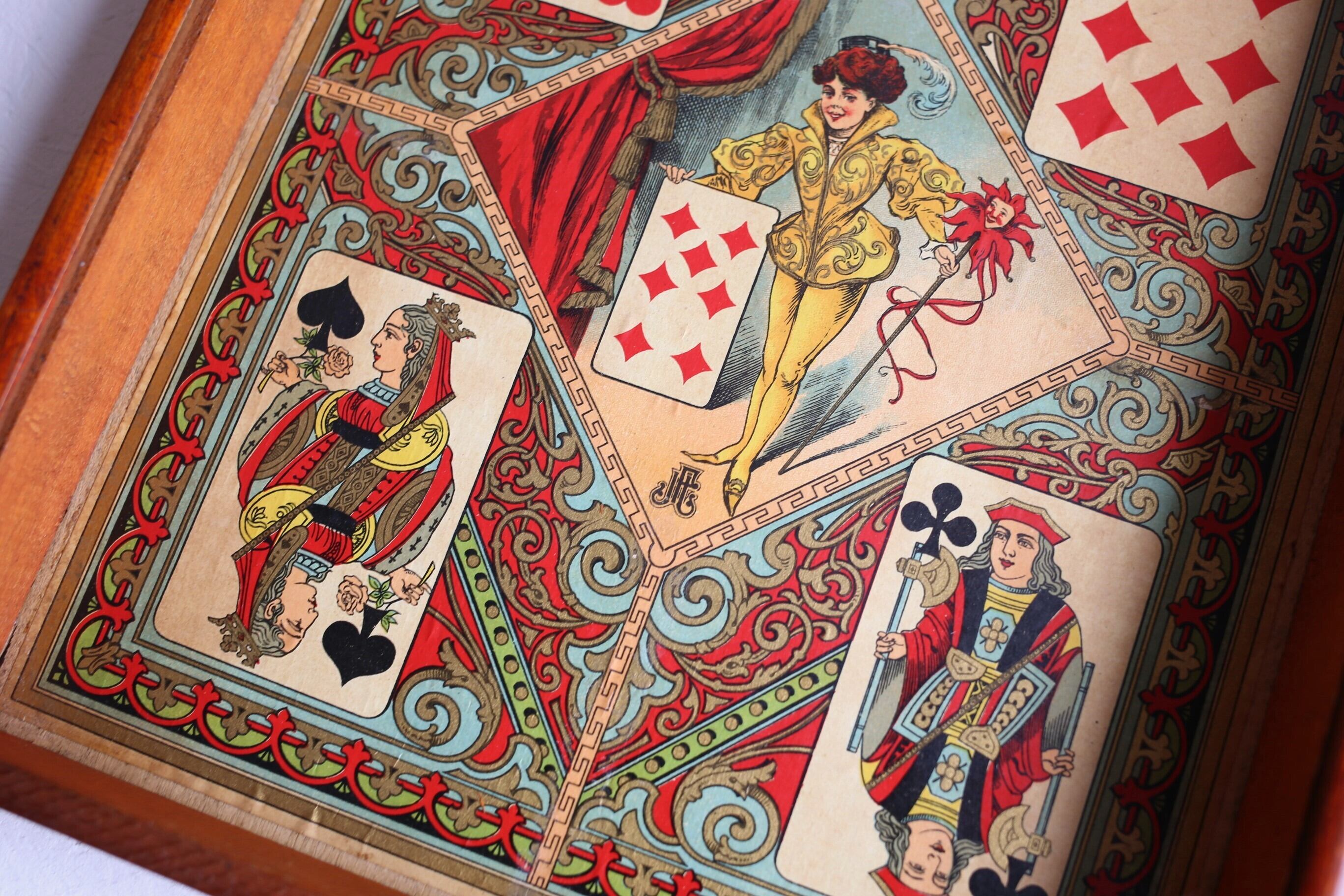 フランスで古くから一般的に行われていた『JEU DU NAIN-JAUNE』というカードゲームの木箱です。