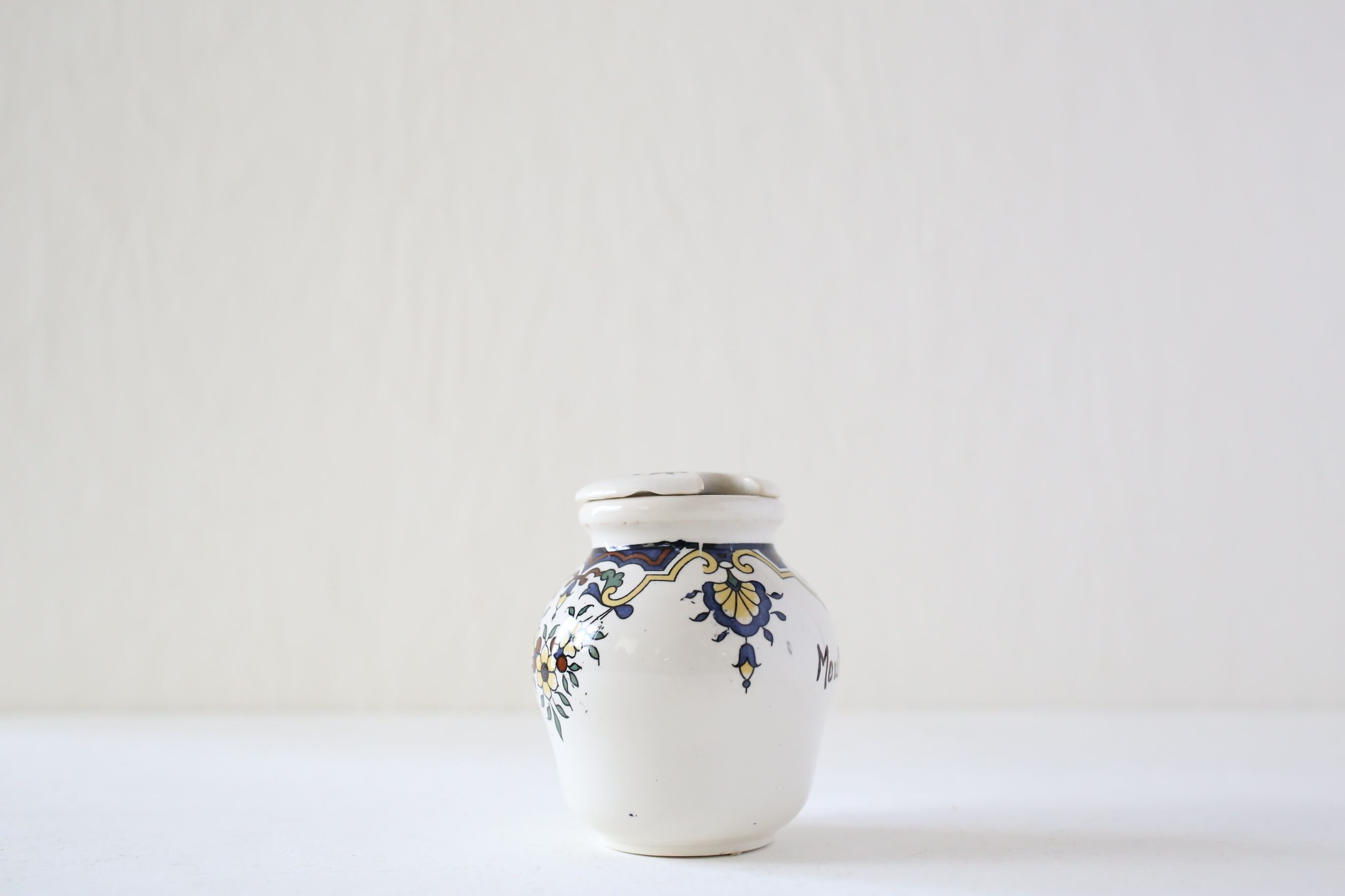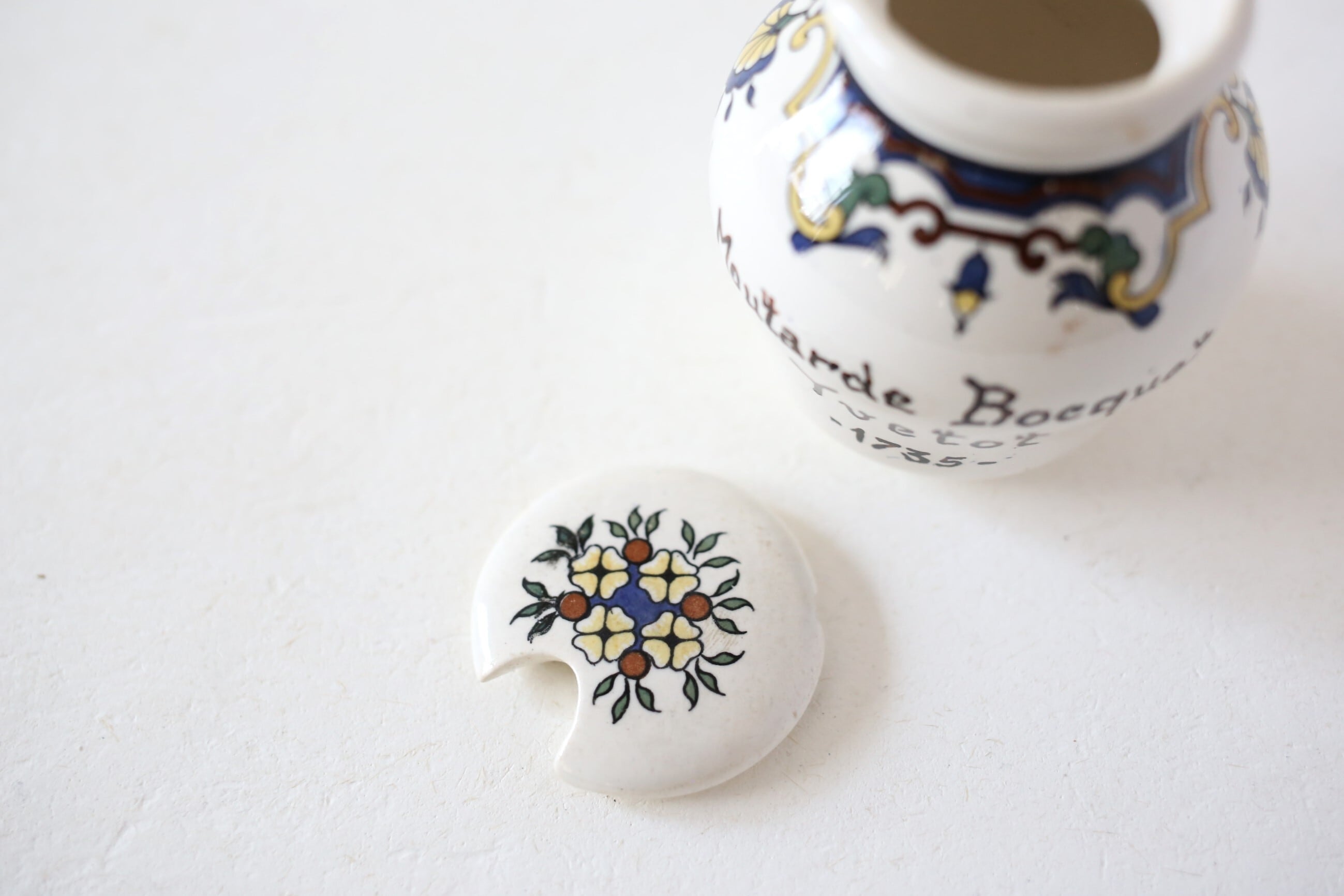 フランス アンティーク ヴィンテージ DIGOIN SARREGUEMINES サルグミンヌ マスタードポット 『Bocquet』 N-03399