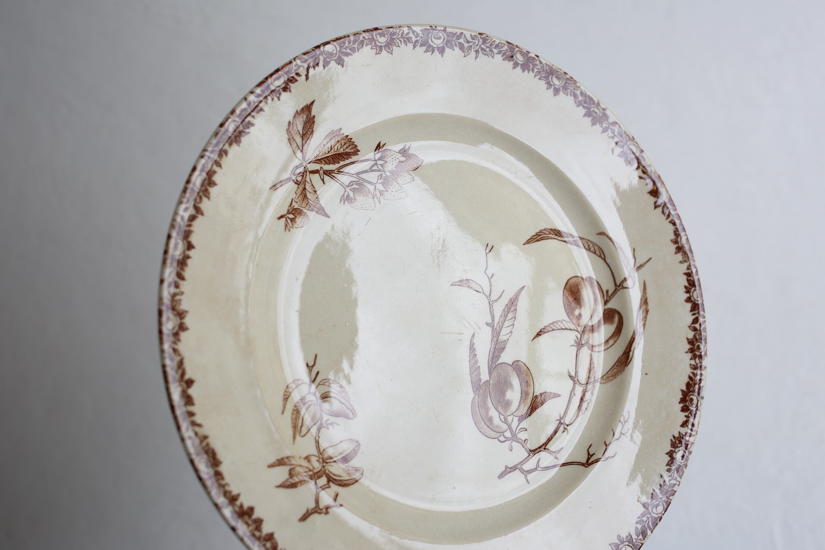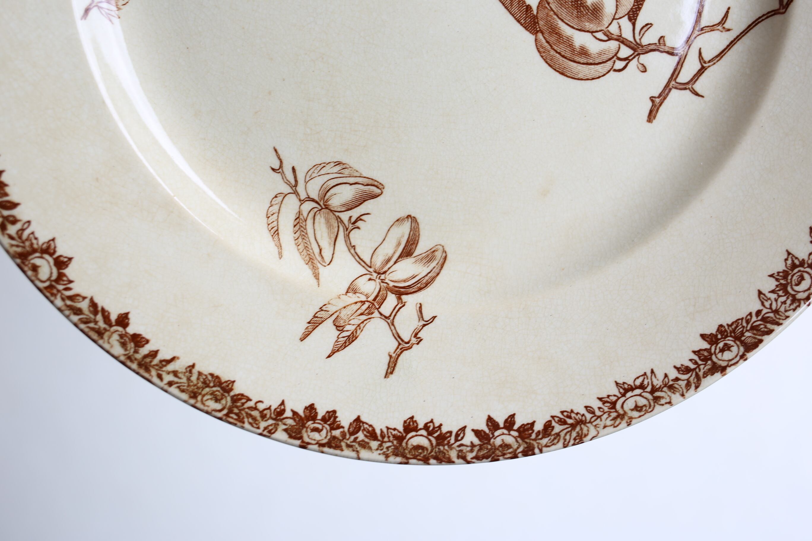 フランス アンティーク Choisy le Roi ショワジールロワ ブラウンのフルーツ柄 平皿 約22.8cm N-05582
