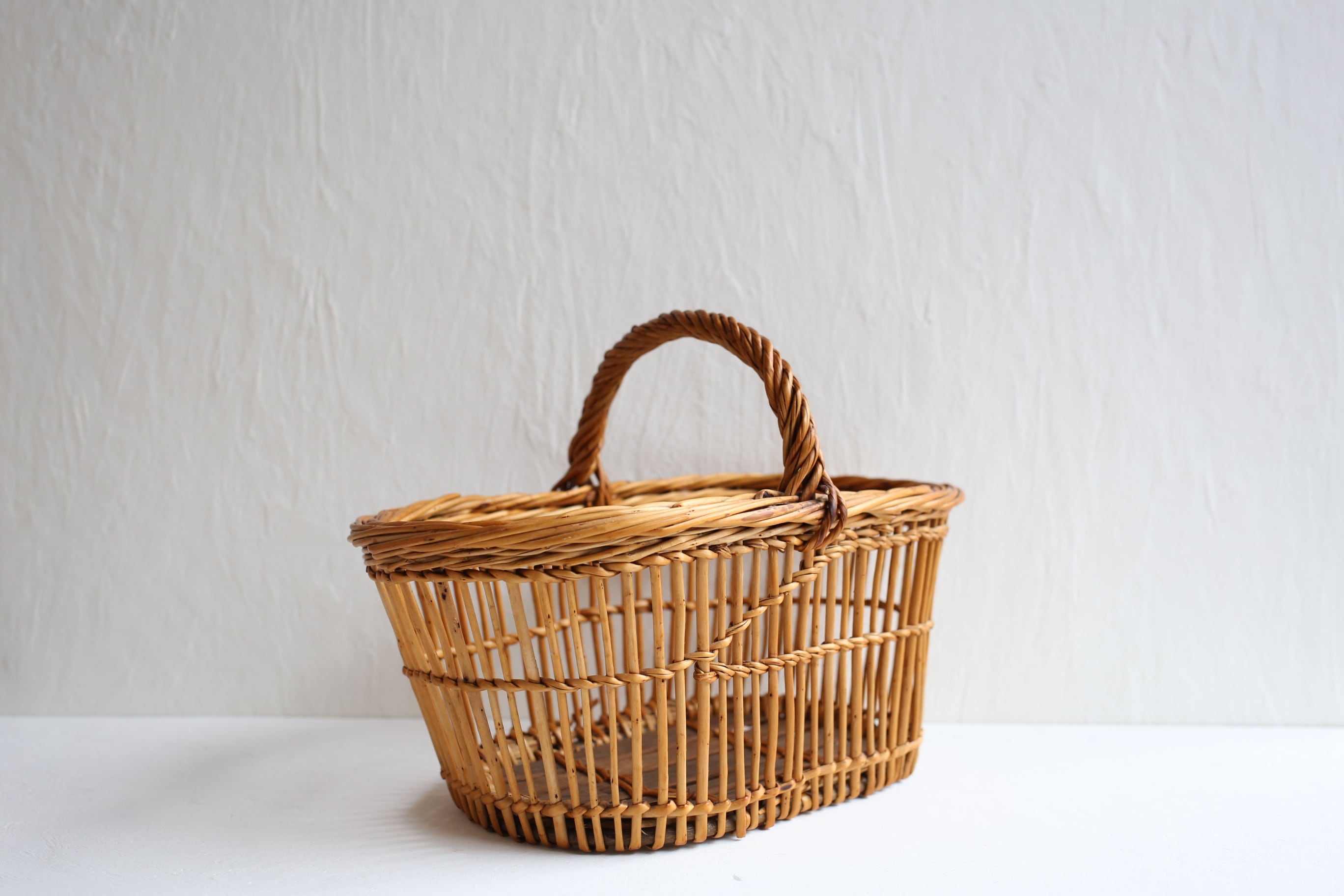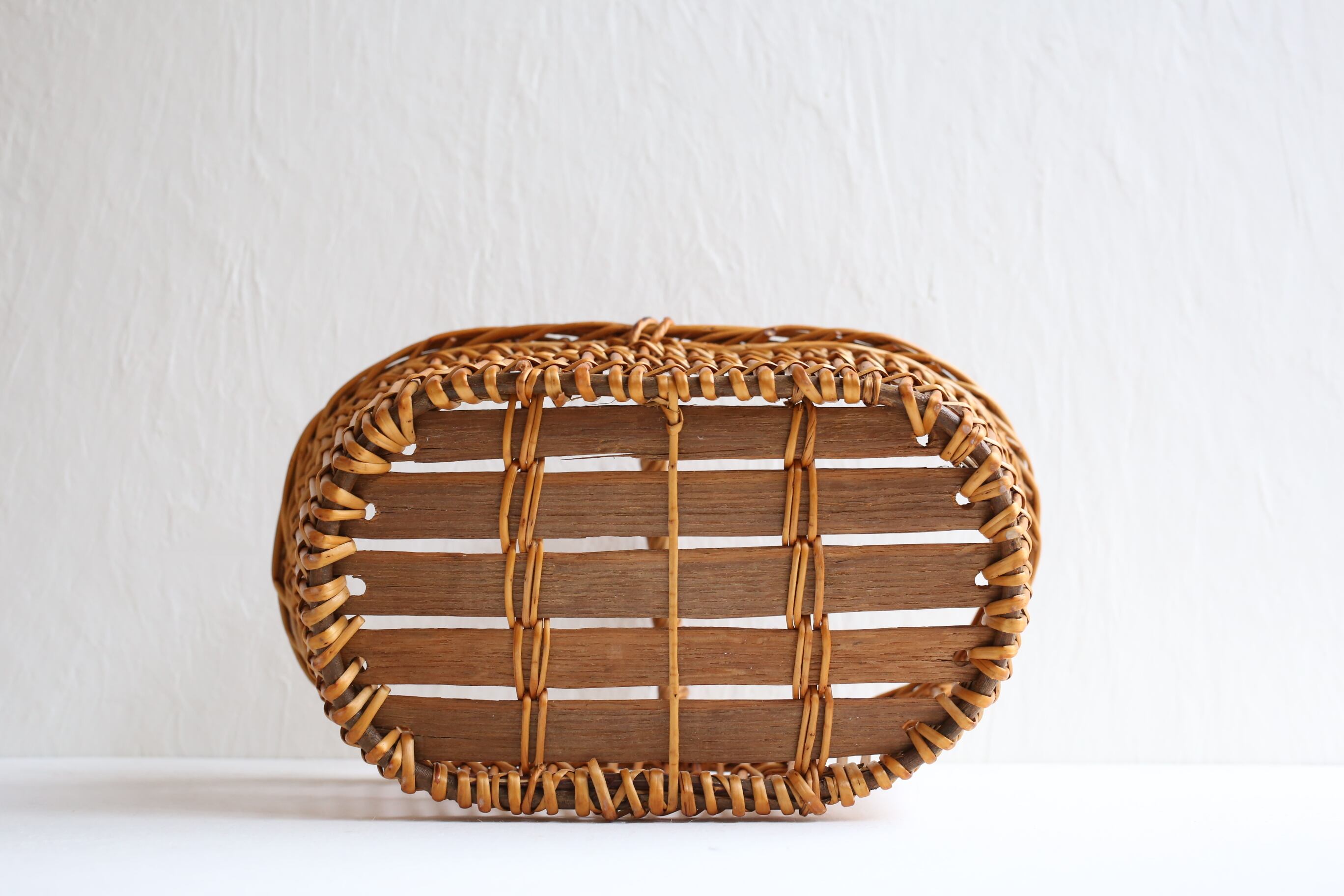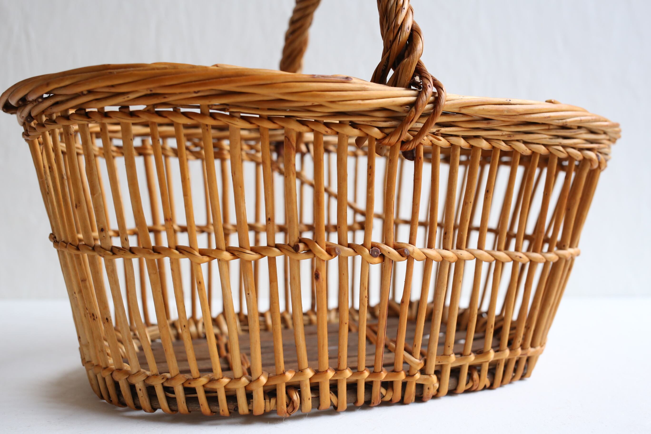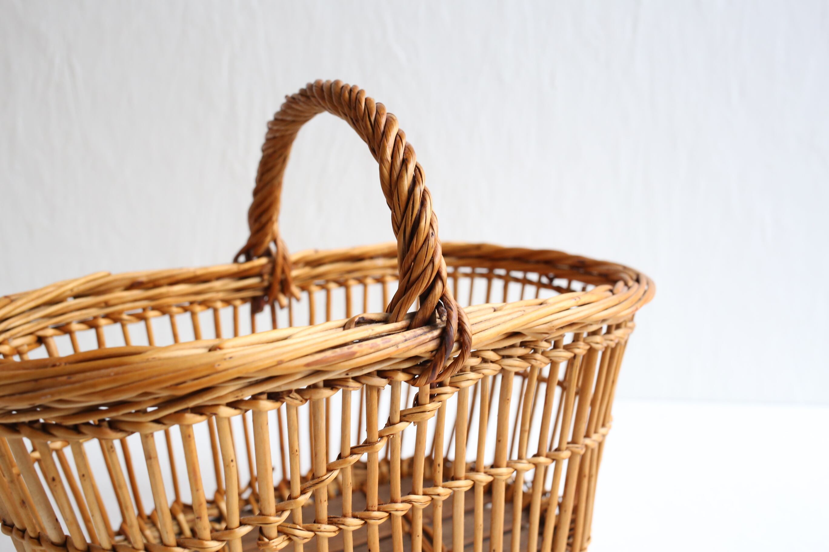 フランス アンティーク ヴィンテージ パニエ ラタン カゴ 透かし編みのオーバル型 N-05138