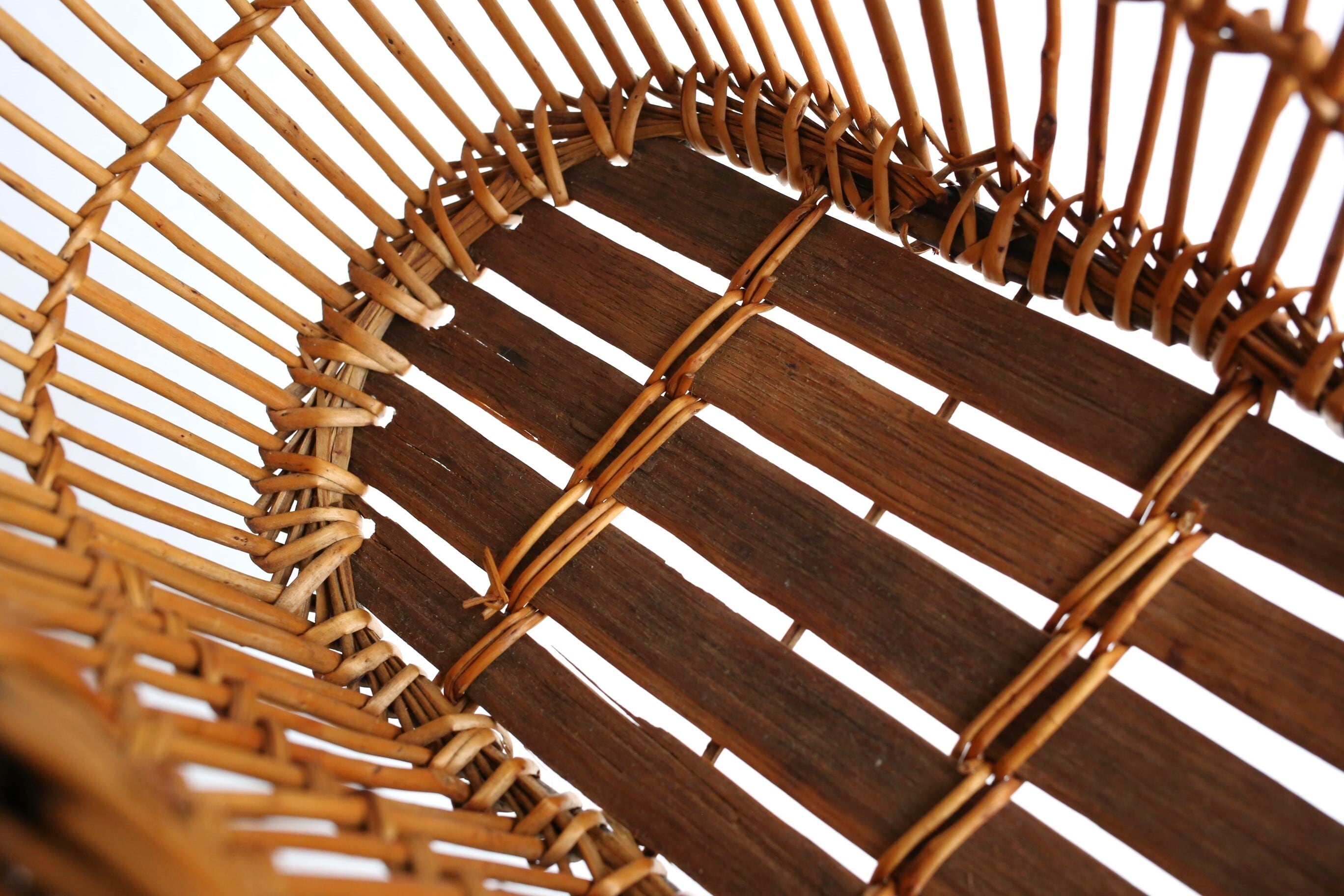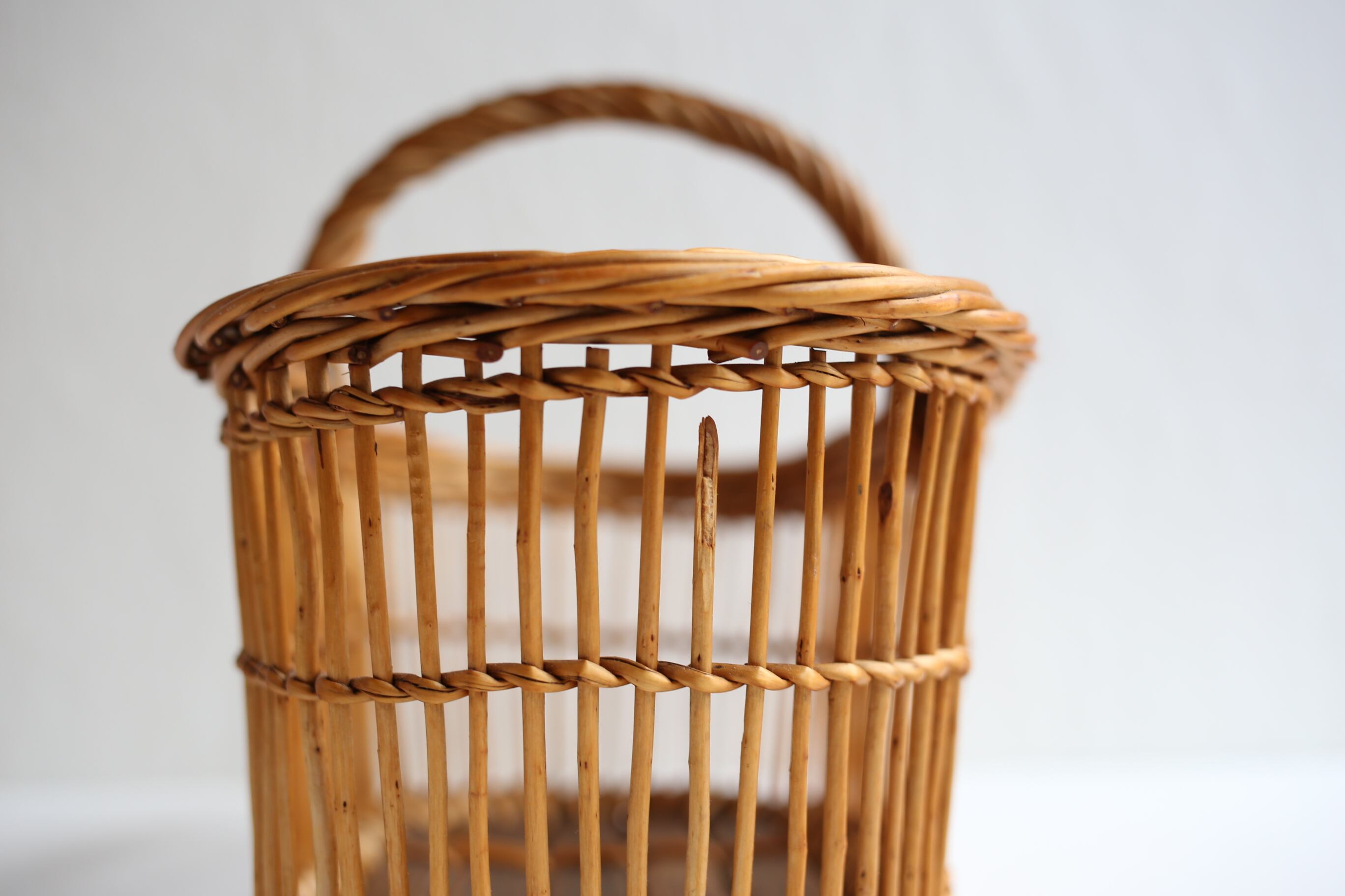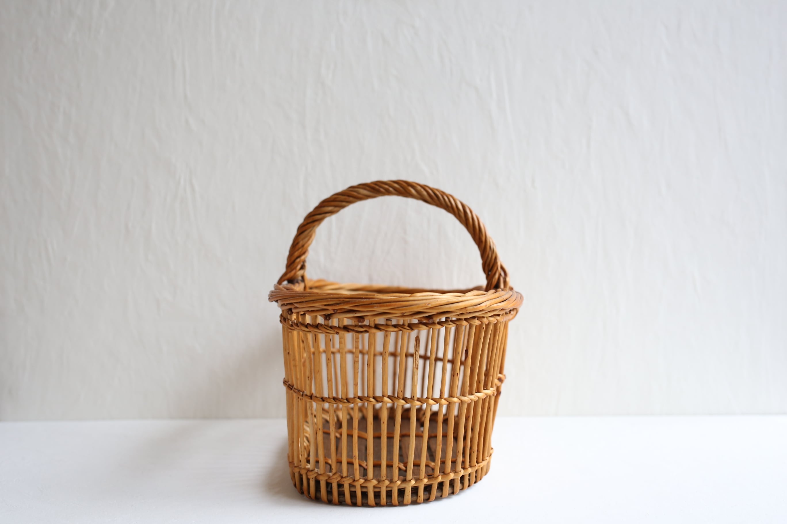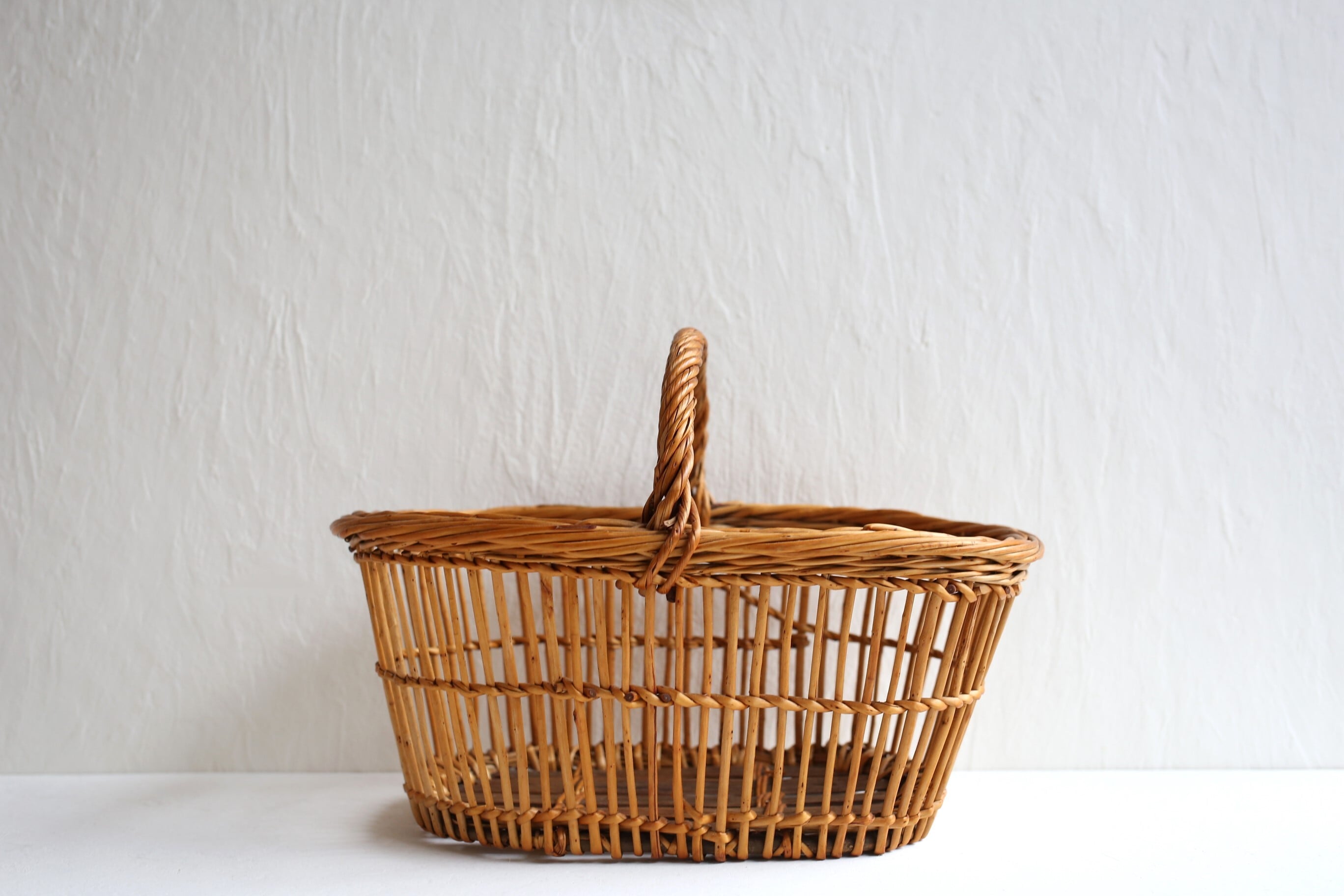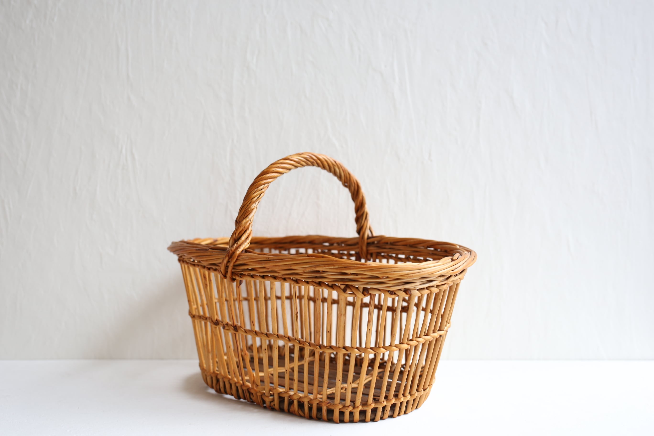 フランス アンティーク ヴィンテージ パニエ ラタン カゴ 透かし編みのオーバル型 N-05138