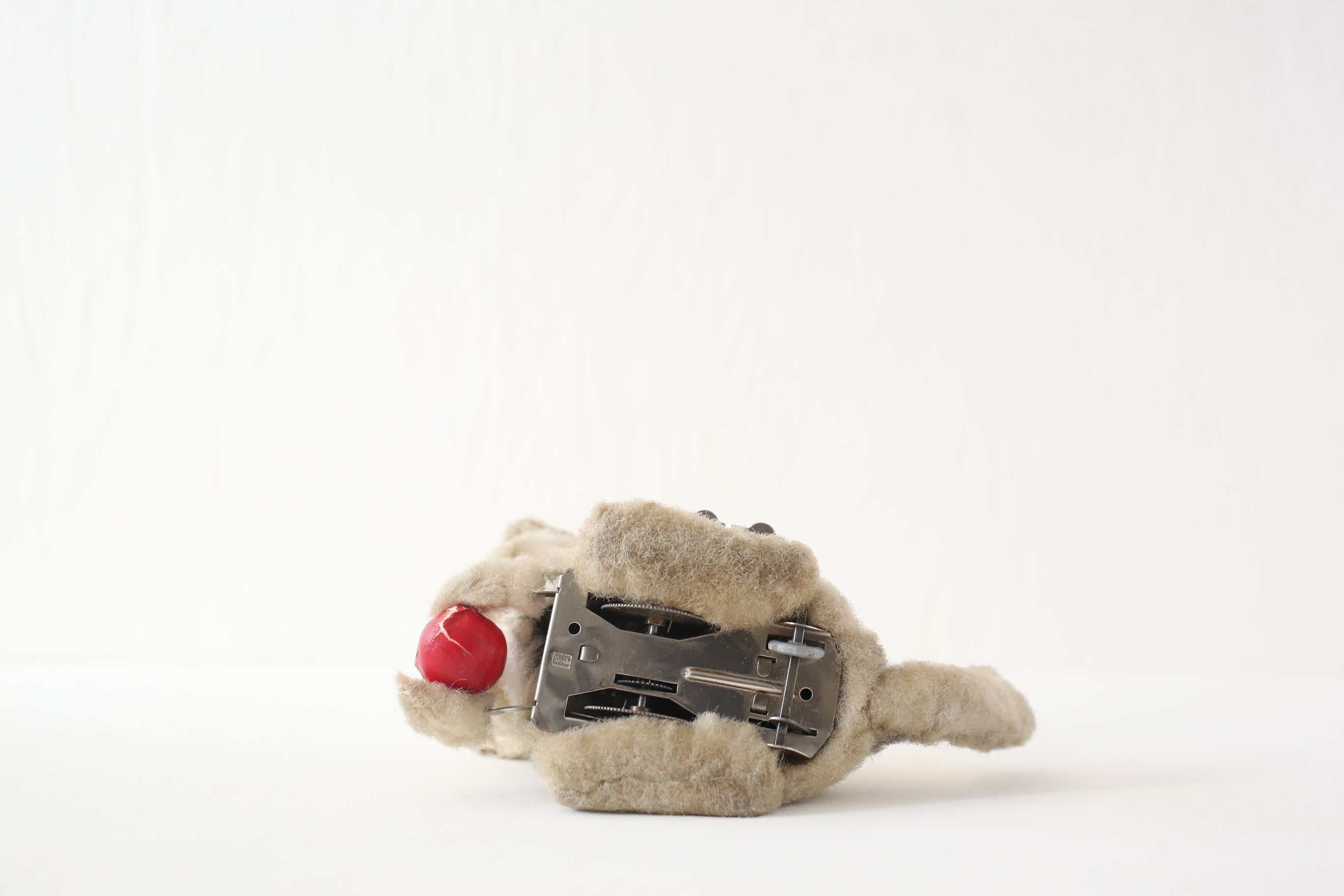 ゼンマイを巻くと前進し→ふと立ちどまって手を回しながら起き上がり→また前進をするという動きを繰り返します。(動画はインスタグラムにUPしています。)