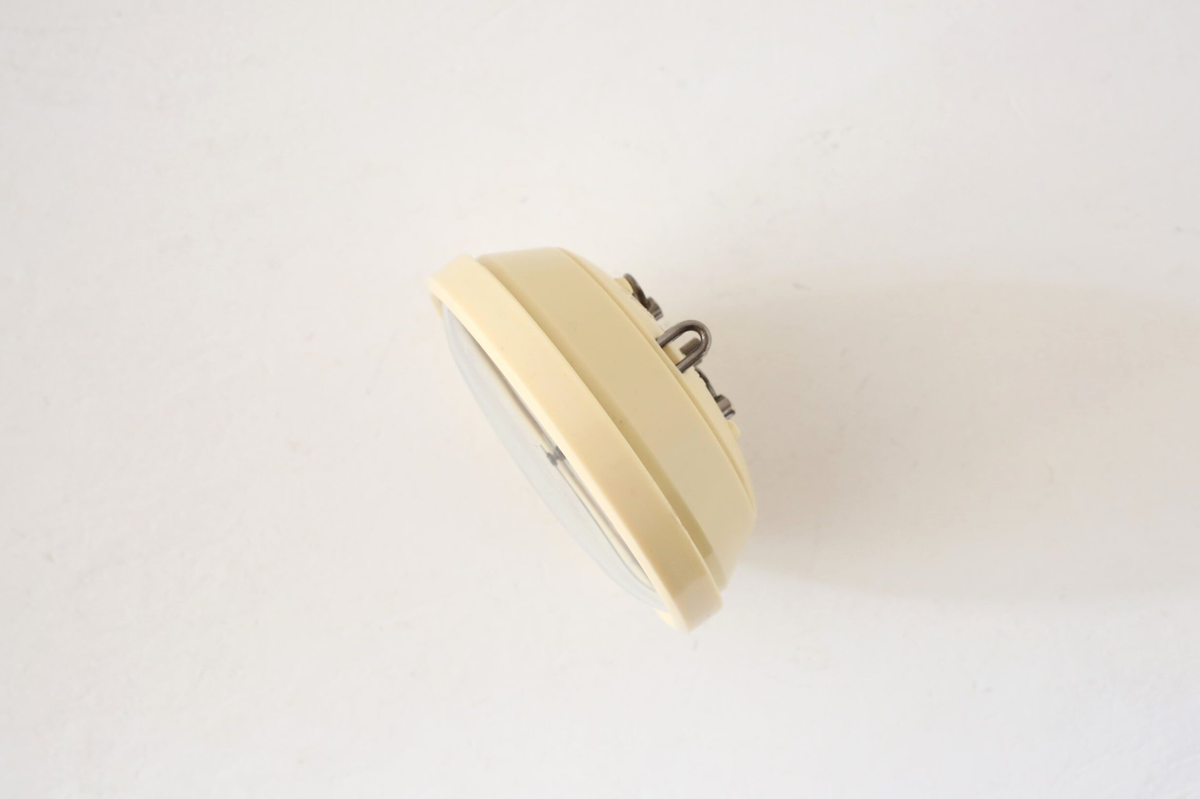 脚が低く文字盤が強調されるデザインは球面ガラスカバーの効果もあり全体的に丸い印象で可愛らしいです。