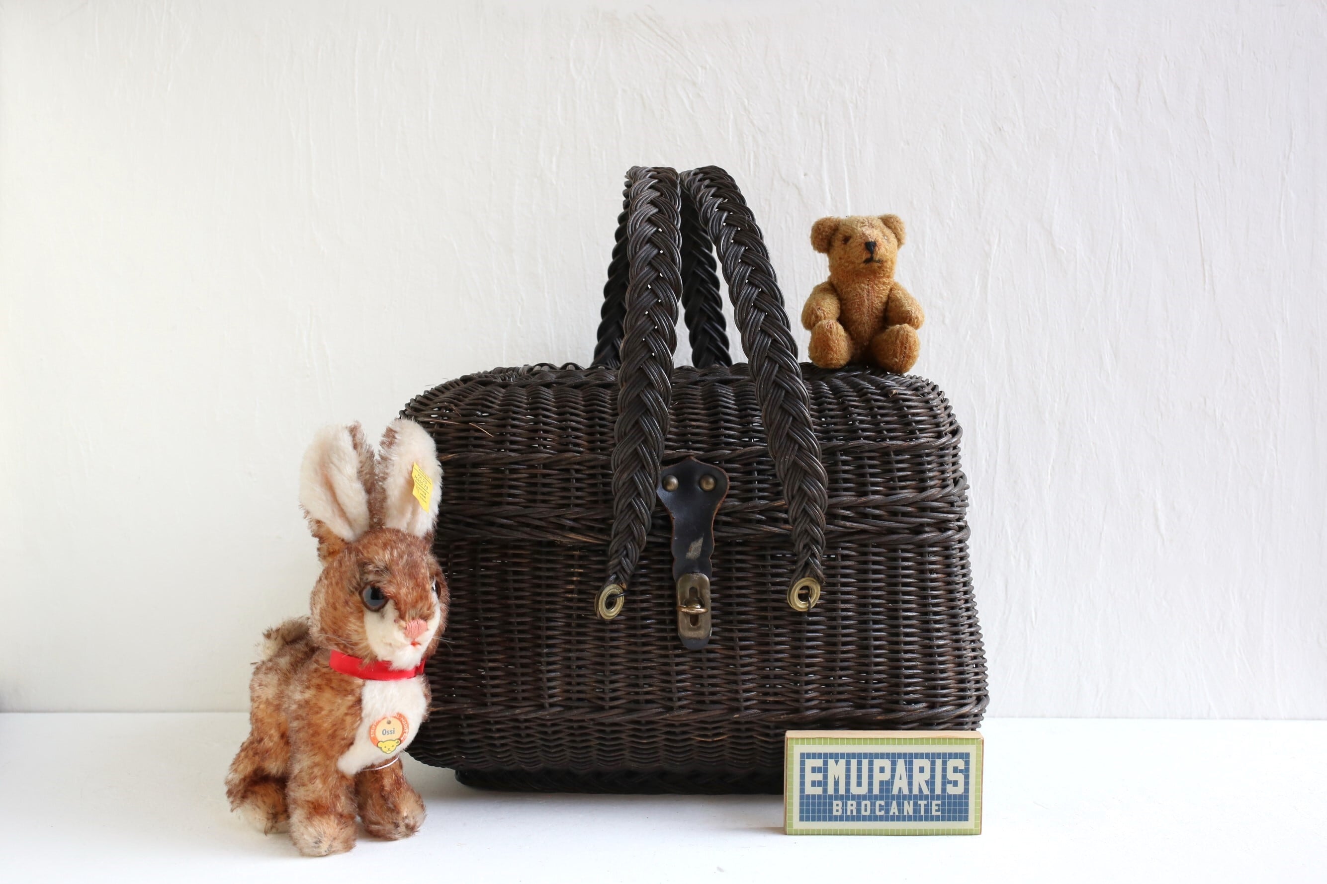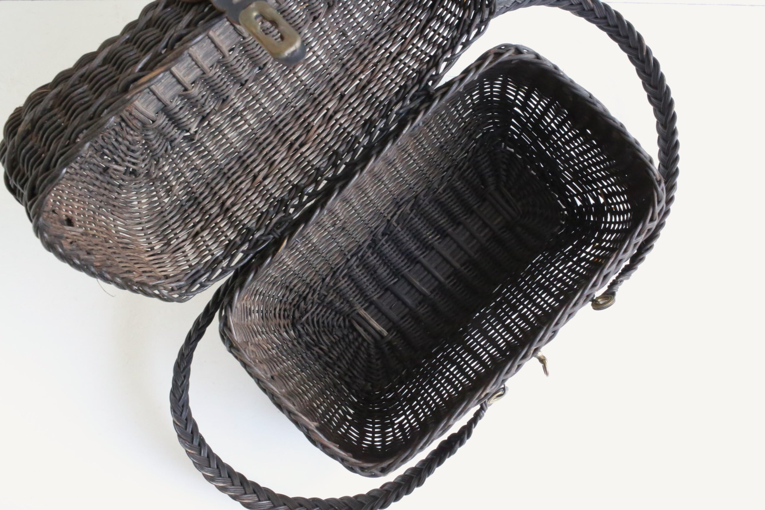 こちらは持ち手と本体の留め具が黒いワイヤーに交換されていますが、それ以外は多少のスレやキズ、ささくれ立ちなど経年の風合いはありますが、特に目立つ折れなどのダメージもなく良い状態です。