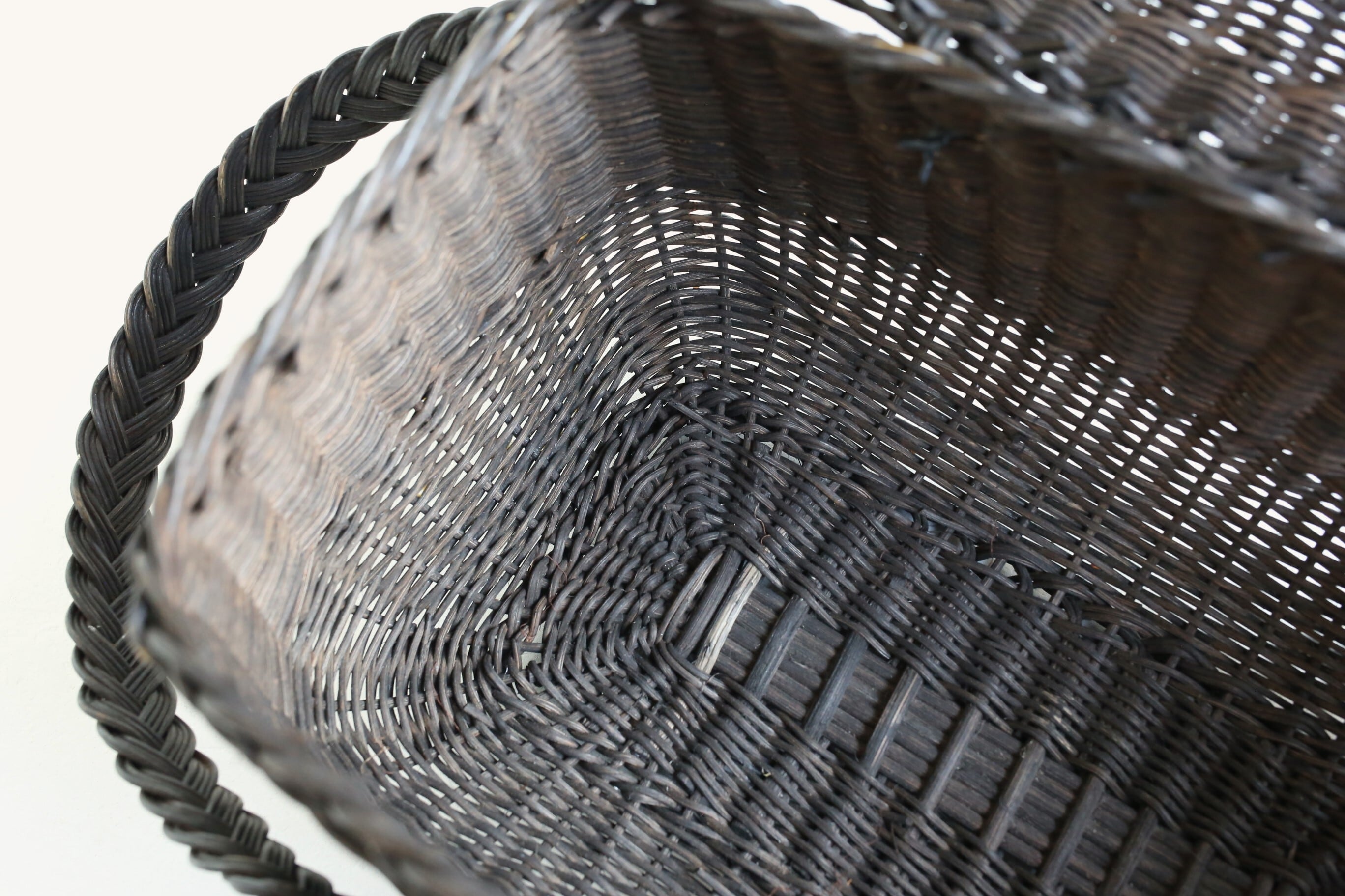 しっかりと編み込まれた丸みのあるフォルムとシックな雰囲気が人気のカゴですが、最近はなかなか状態の良いものが見つかりくくなってきました。