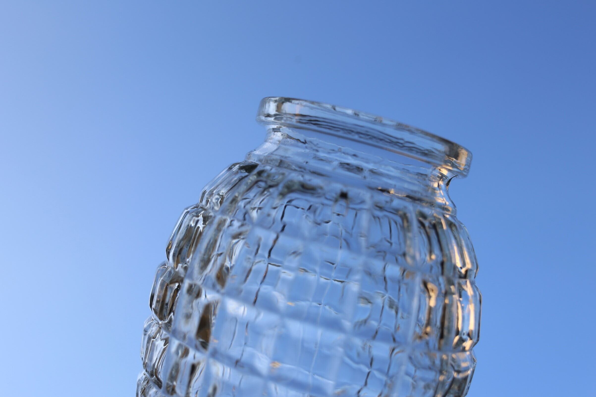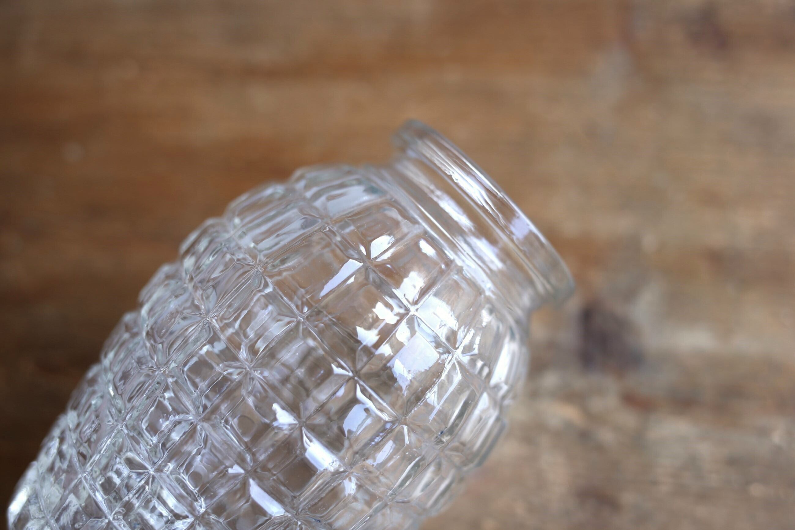 フランス アンティーク ヴィンテージ ヒヤシンスポット (大) 透明 格子柄 N-05933