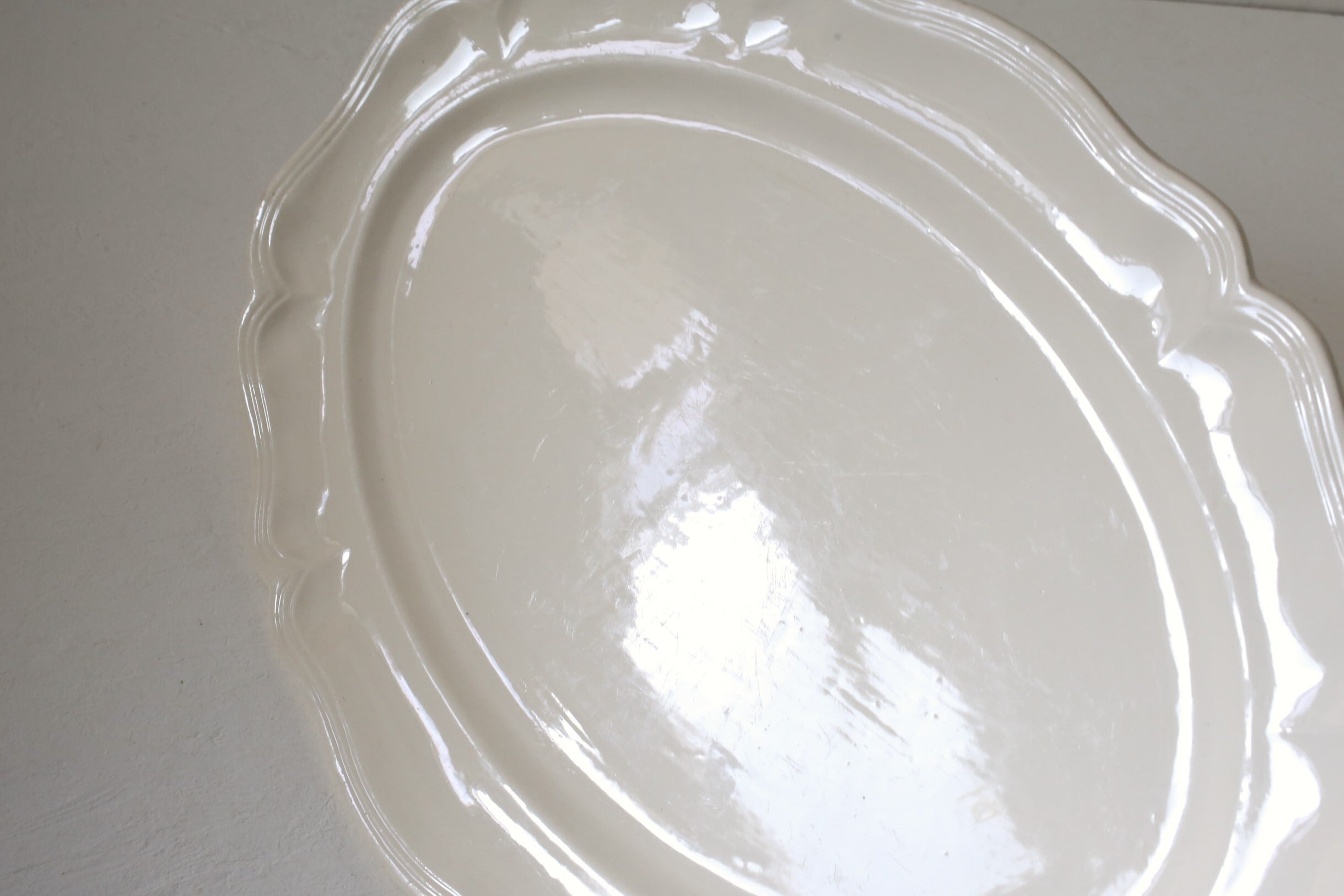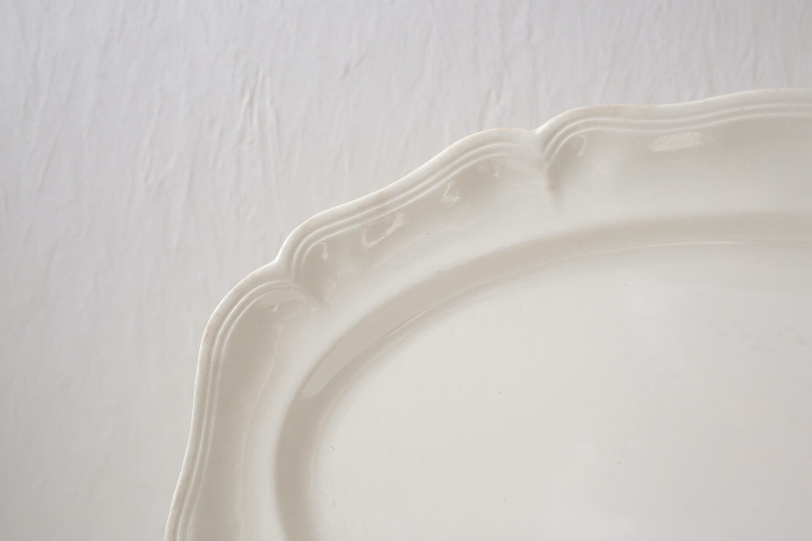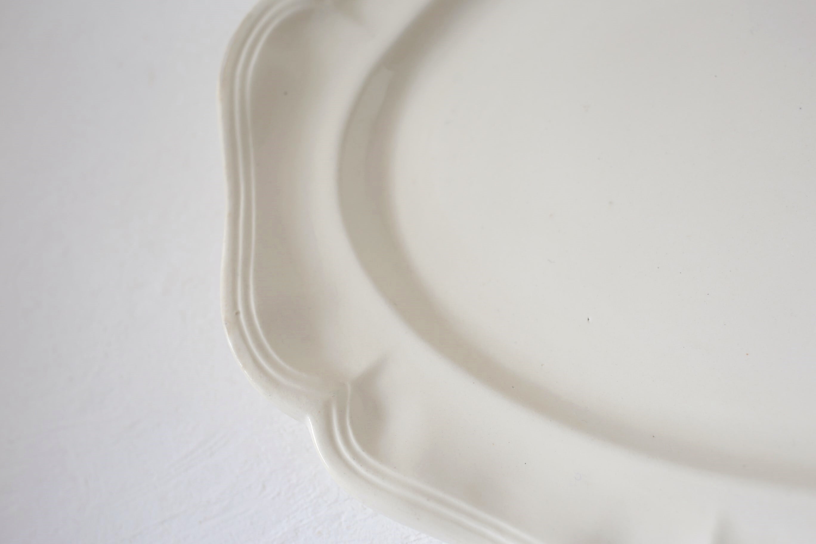 クリーム色の陶器に優しく波打ったデザインが人気のシリーズですが、オーバル皿はフリルの間隔が異なるので丸皿とはまた違う素敵な印象があります。