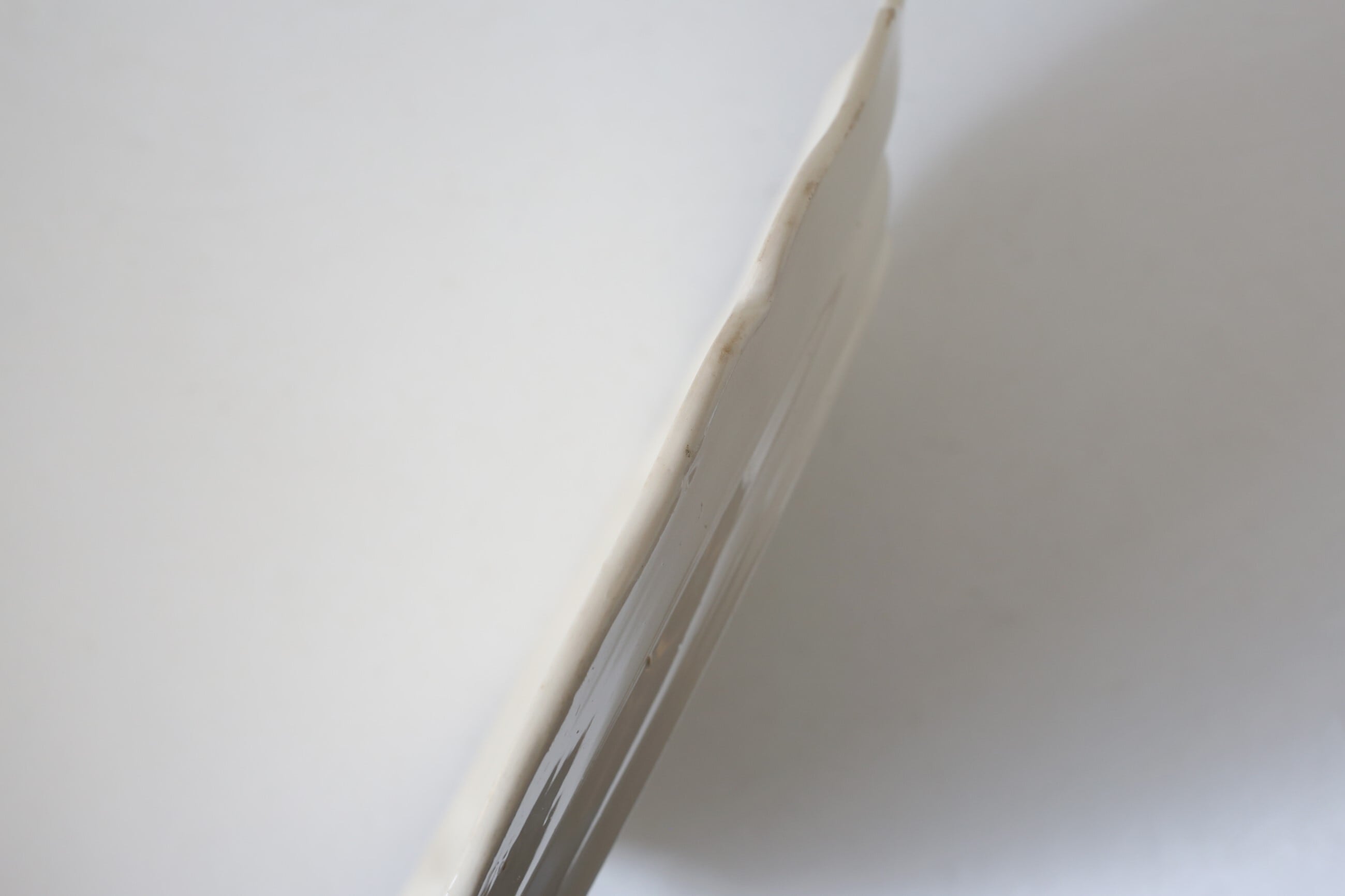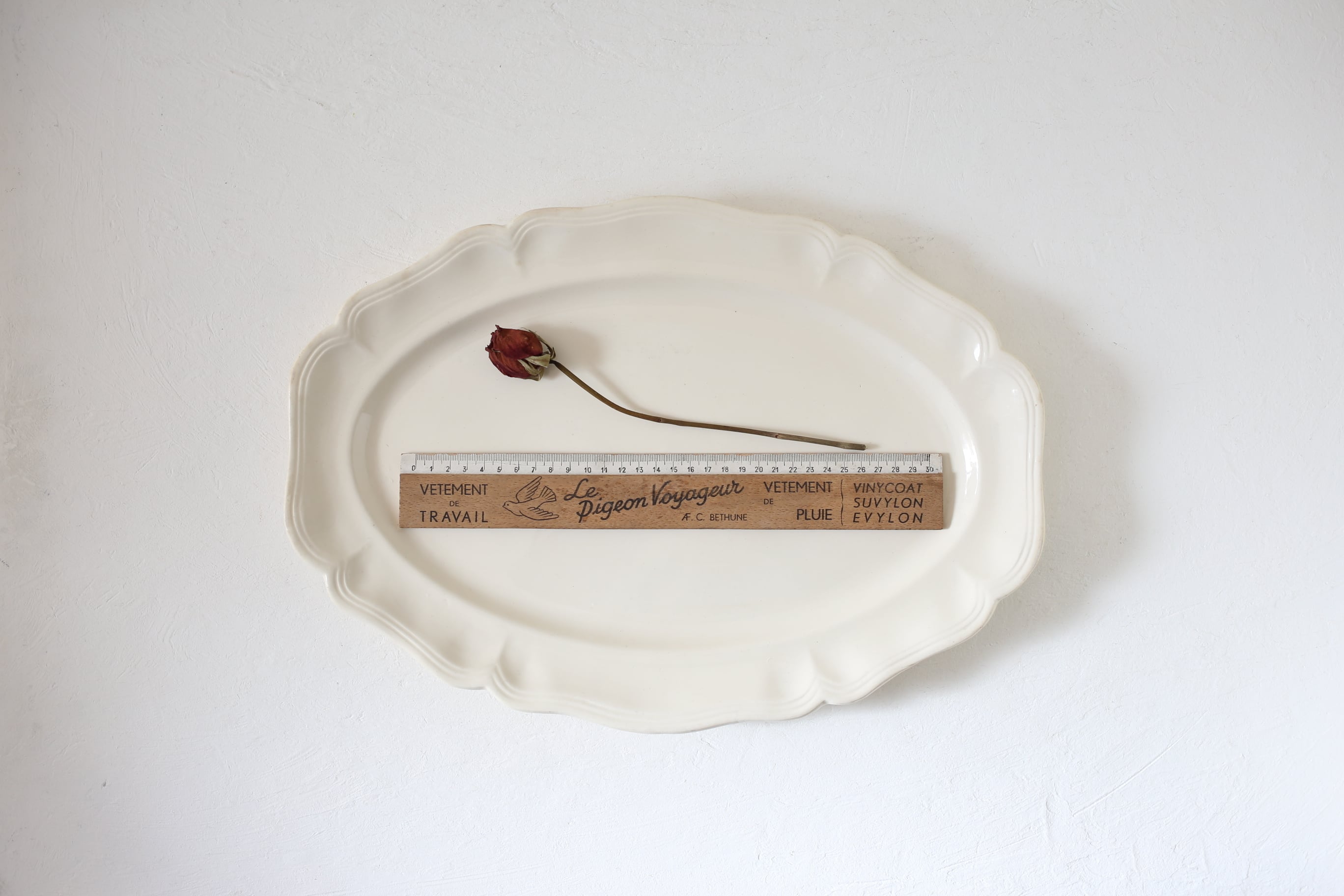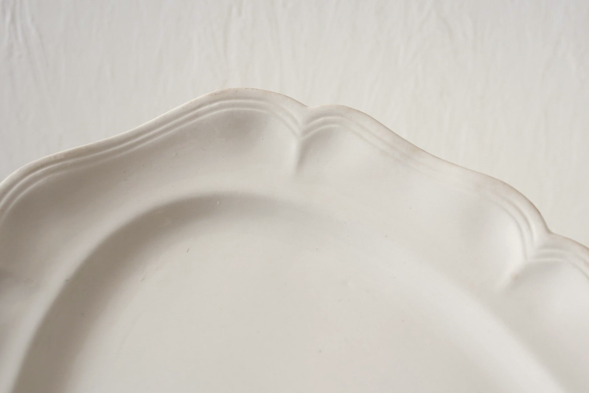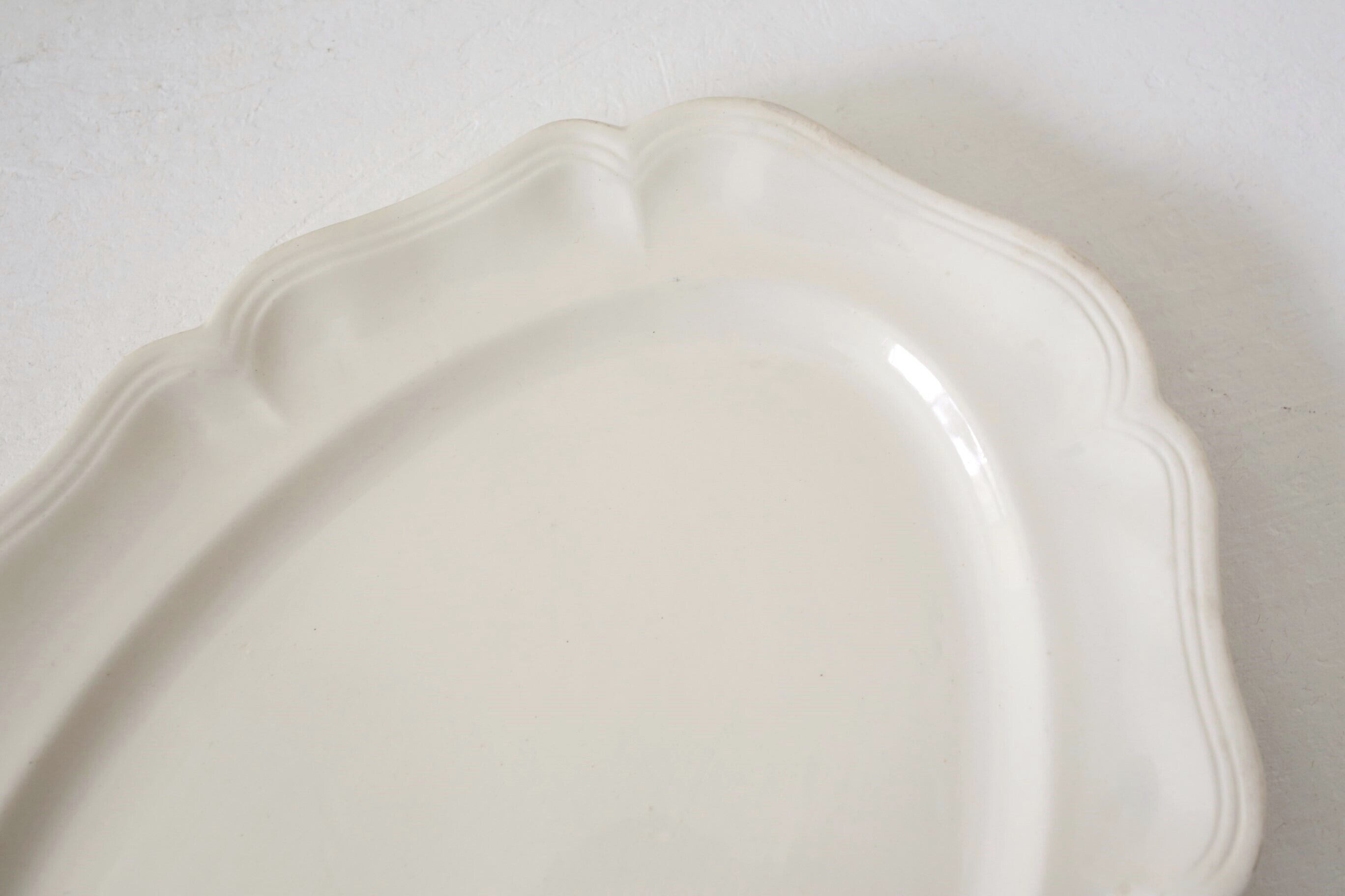 クリーム色の陶器に優しく波打ったデザインが人気のシリーズですが、オーバル皿はフリルの間隔が異なるので丸皿とはまた違う素敵な印象があります。