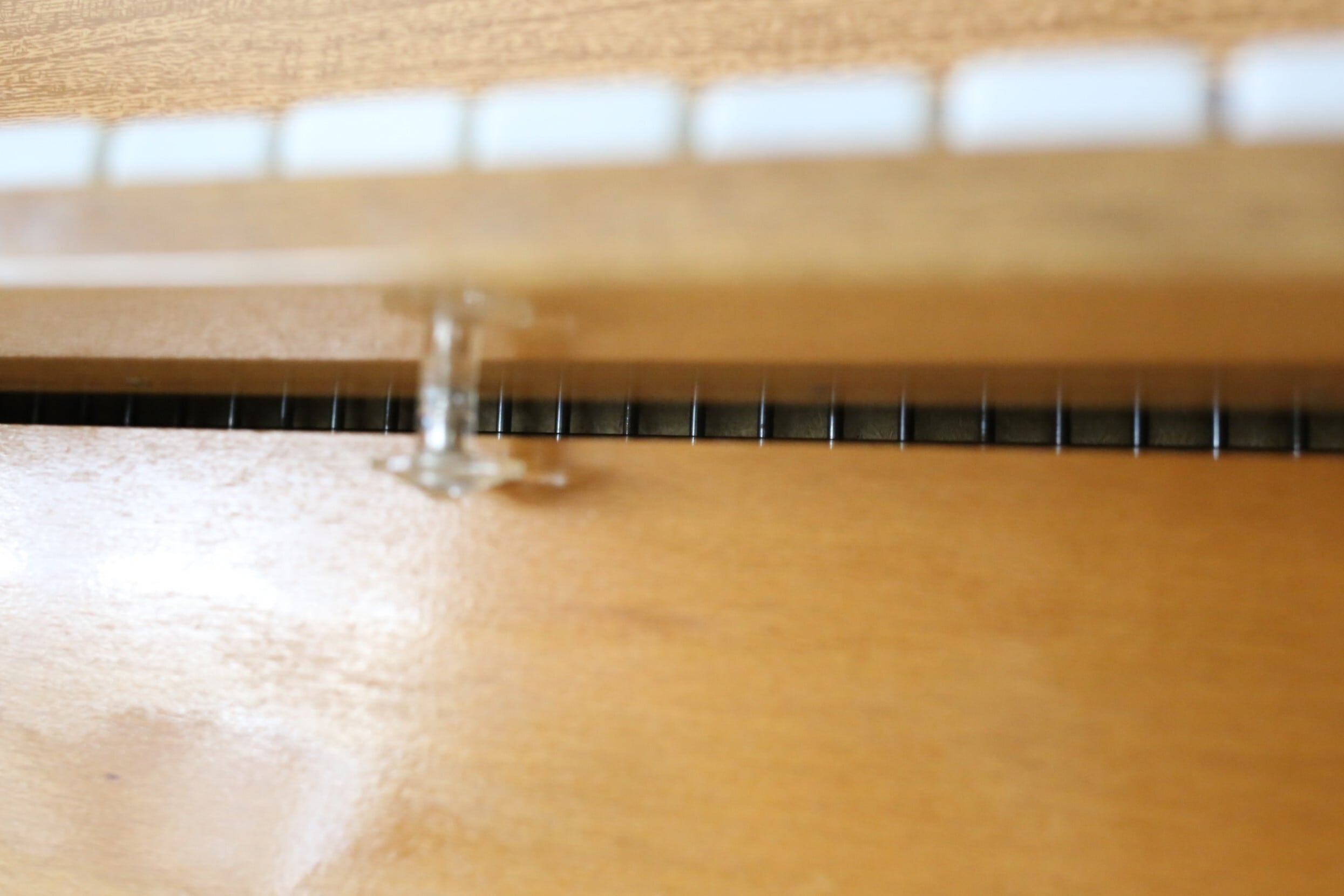 鍵盤を叩くとハンマーが内部の金属棒を叩く鉄琴のような仕組みですが、木は硬く乾燥したブナ材が使用されていて、美しく特徴的な音色が長く響きます。